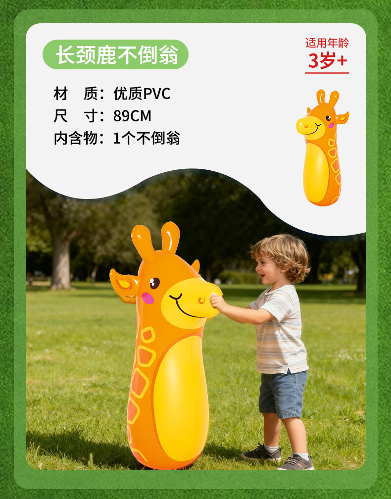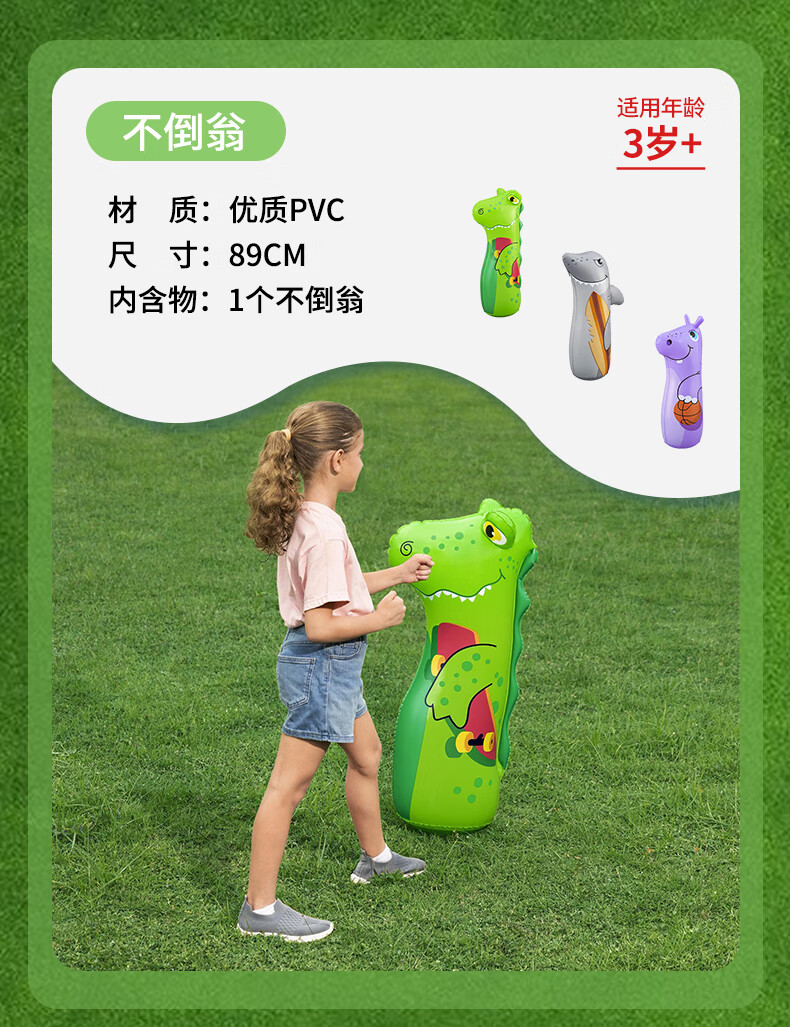 Bestway绿色大耳朵不倒翁玩具早教玩具塑料充气造型玩具51cmx34cmx98cm