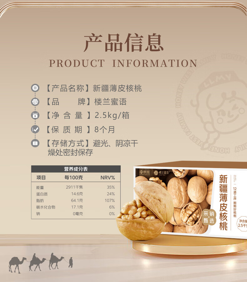 楼兰蜜语京觅甄选新疆薄皮25年新核桃2.5kg原味纸皮节日礼盒坚果特产零食