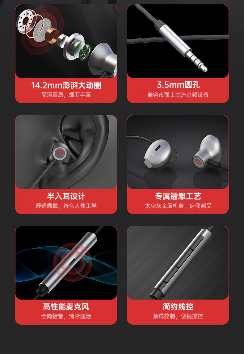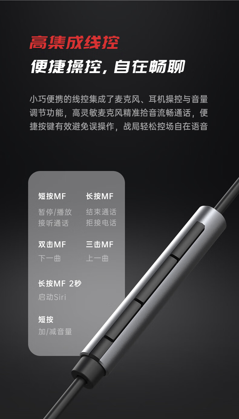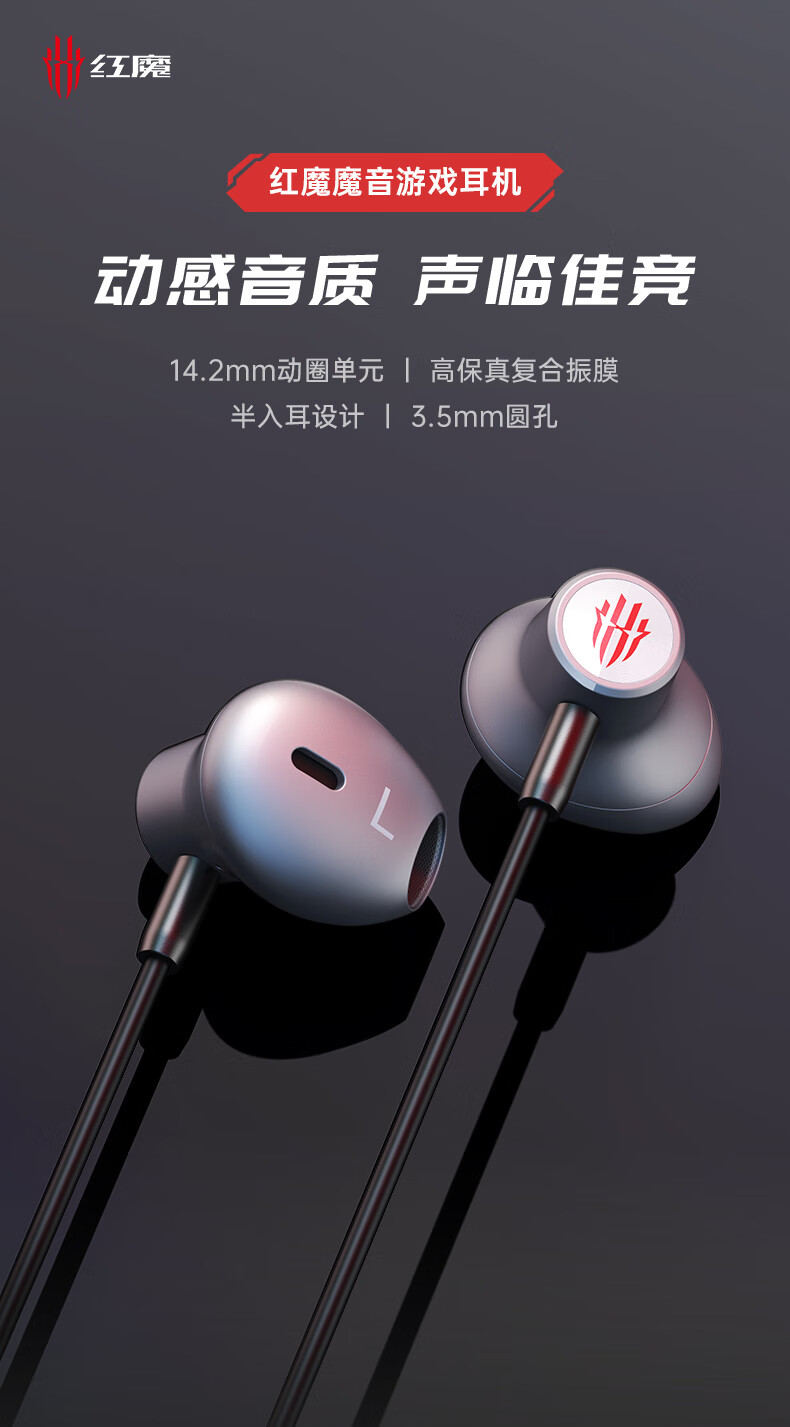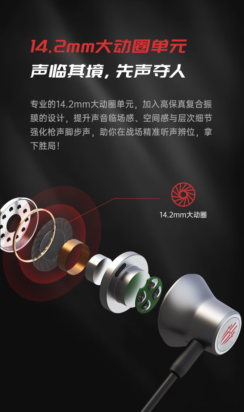努比亚红魔电竞游戏魔音耳机入耳式 听声辩位吃鸡 手机笔记本台式电脑cf和平精英手游有线3.5mm