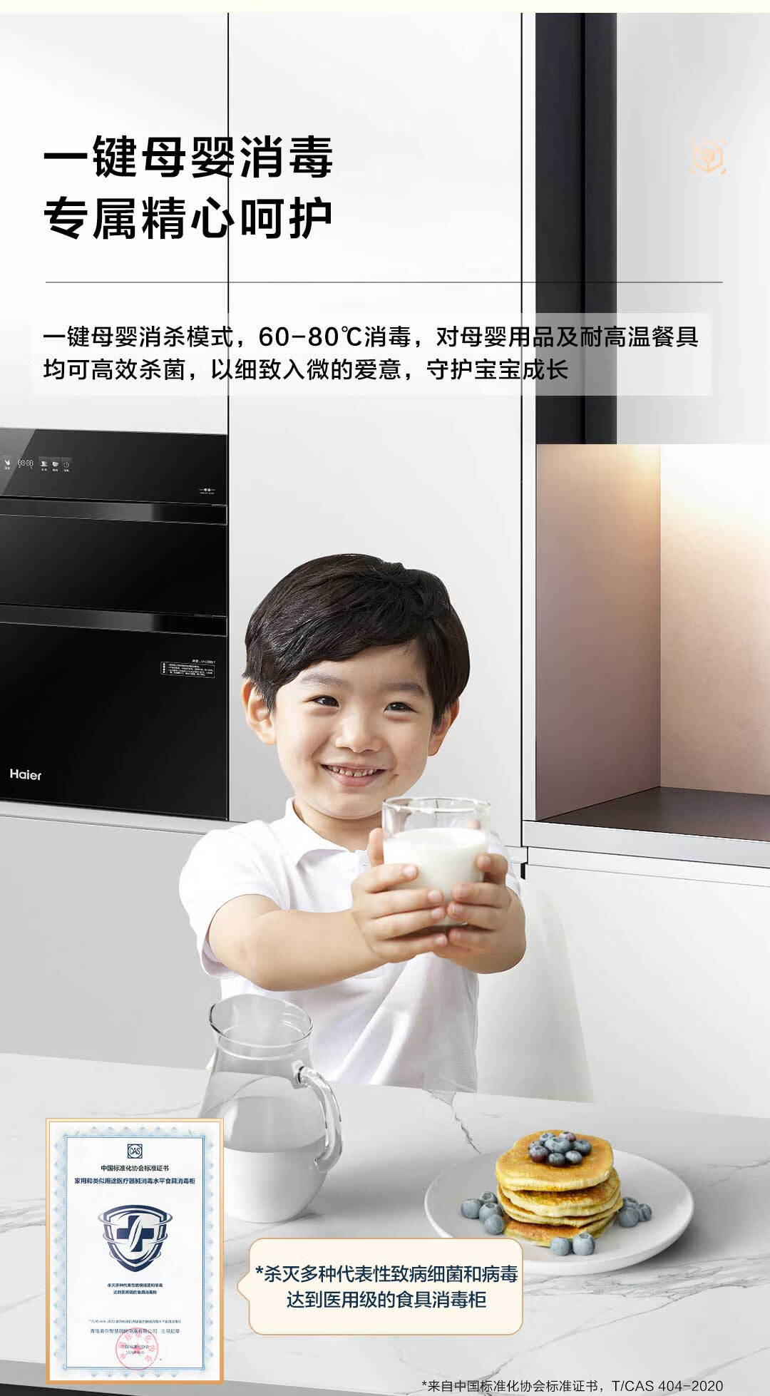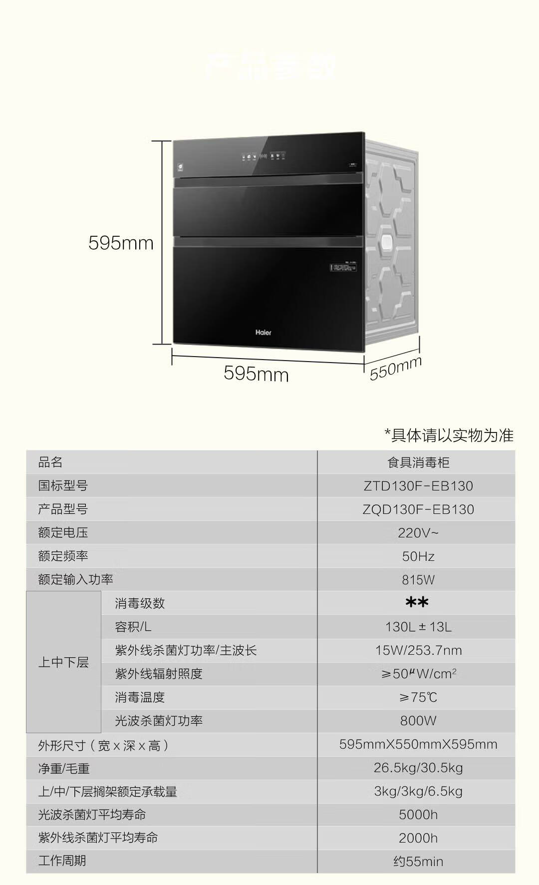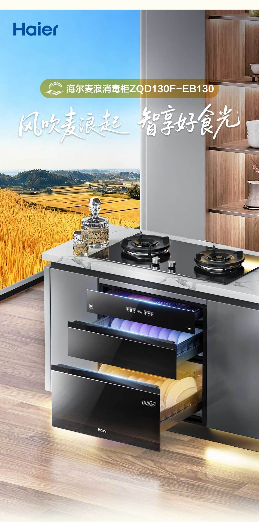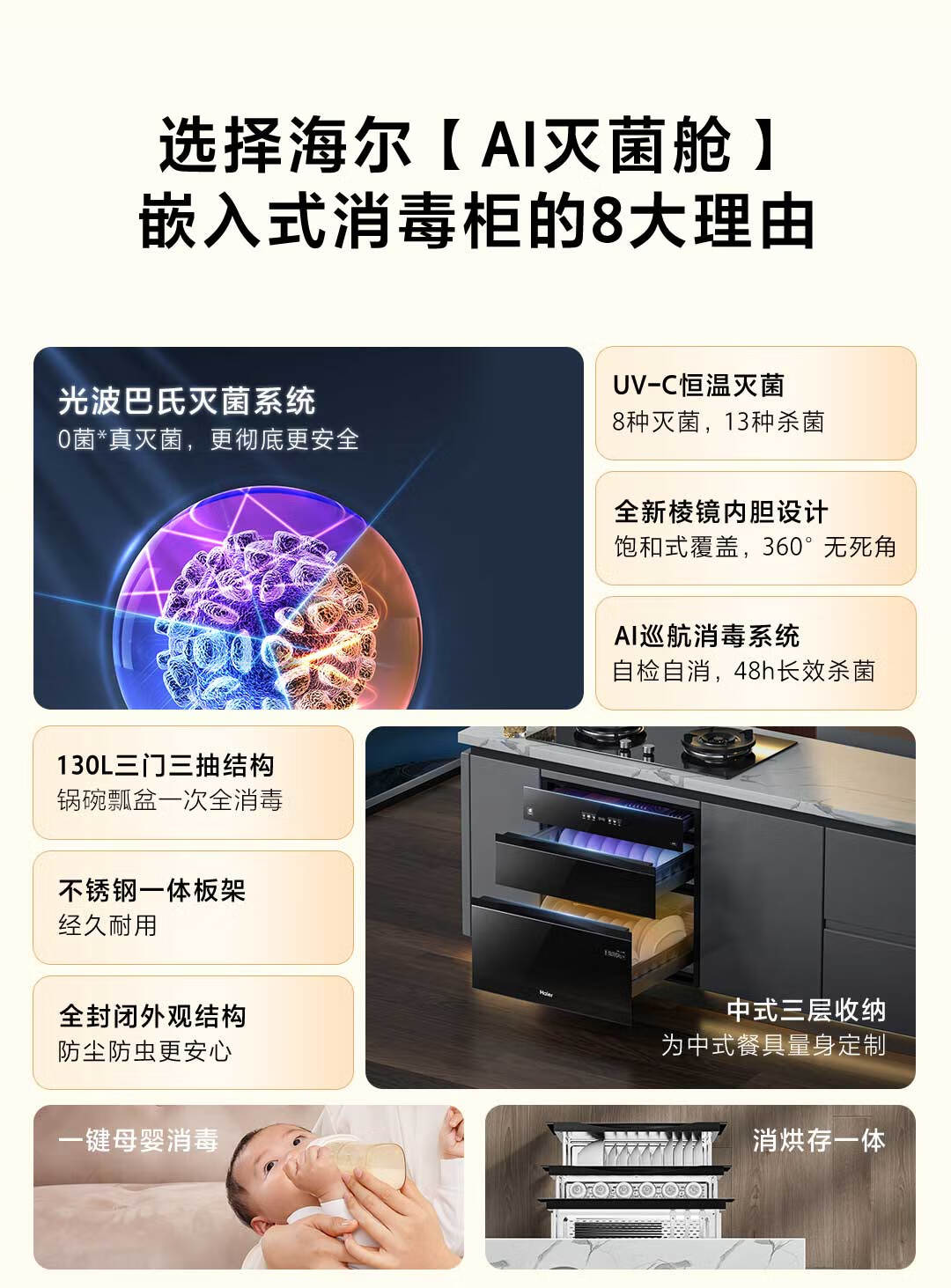 海尔(Haier)【麦浪套系】消毒柜嵌入式 灭菌舱系列130L三门三抽大容量消毒柜家用母婴消毒柜光波巴氏消毒EB130