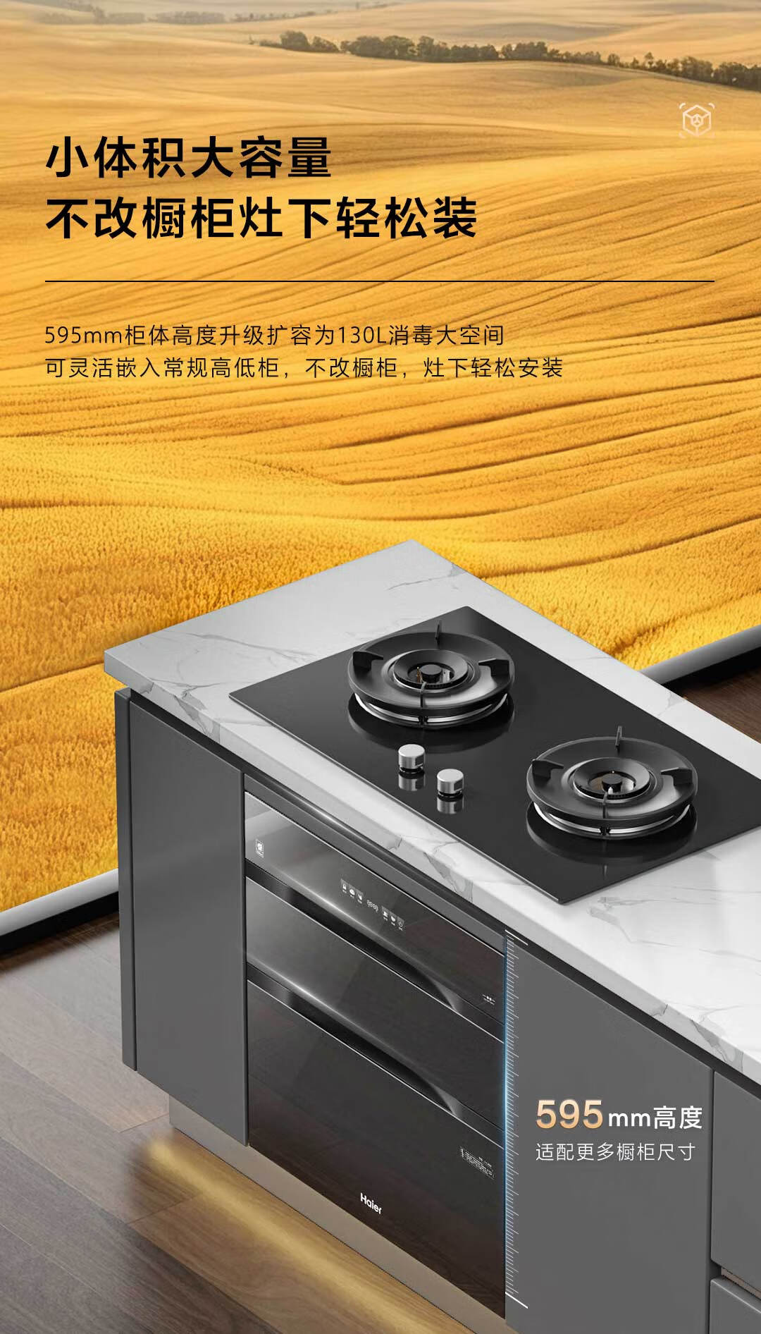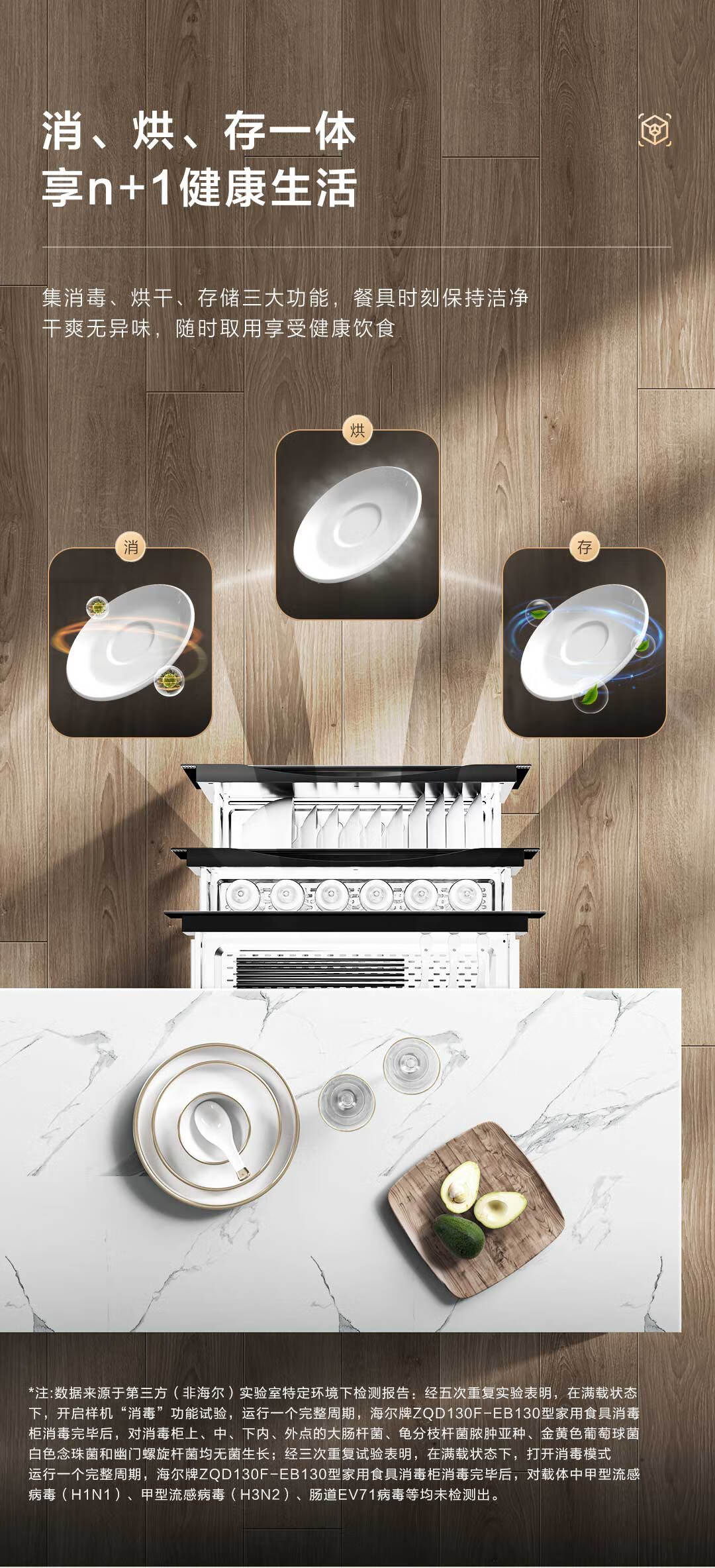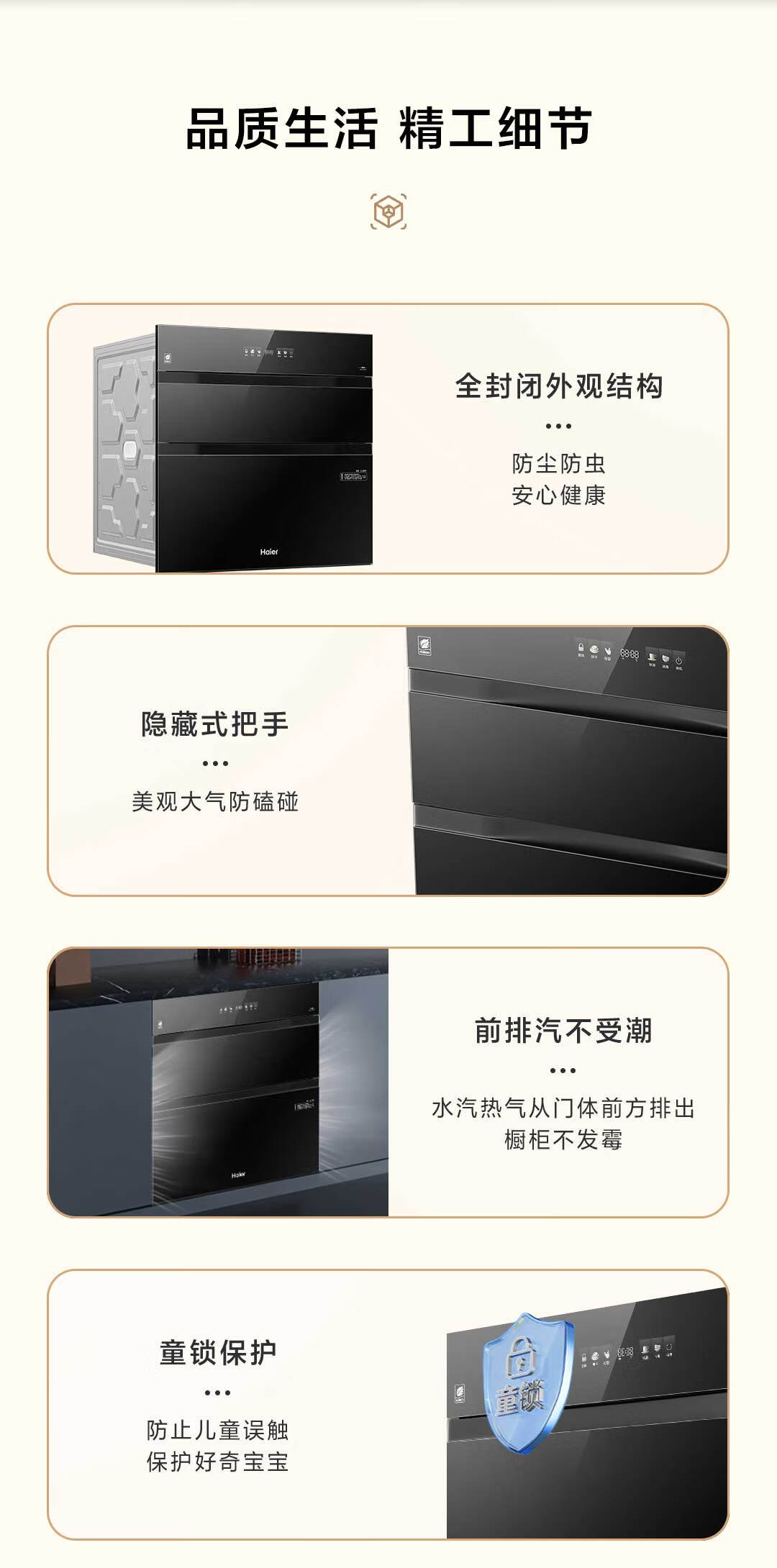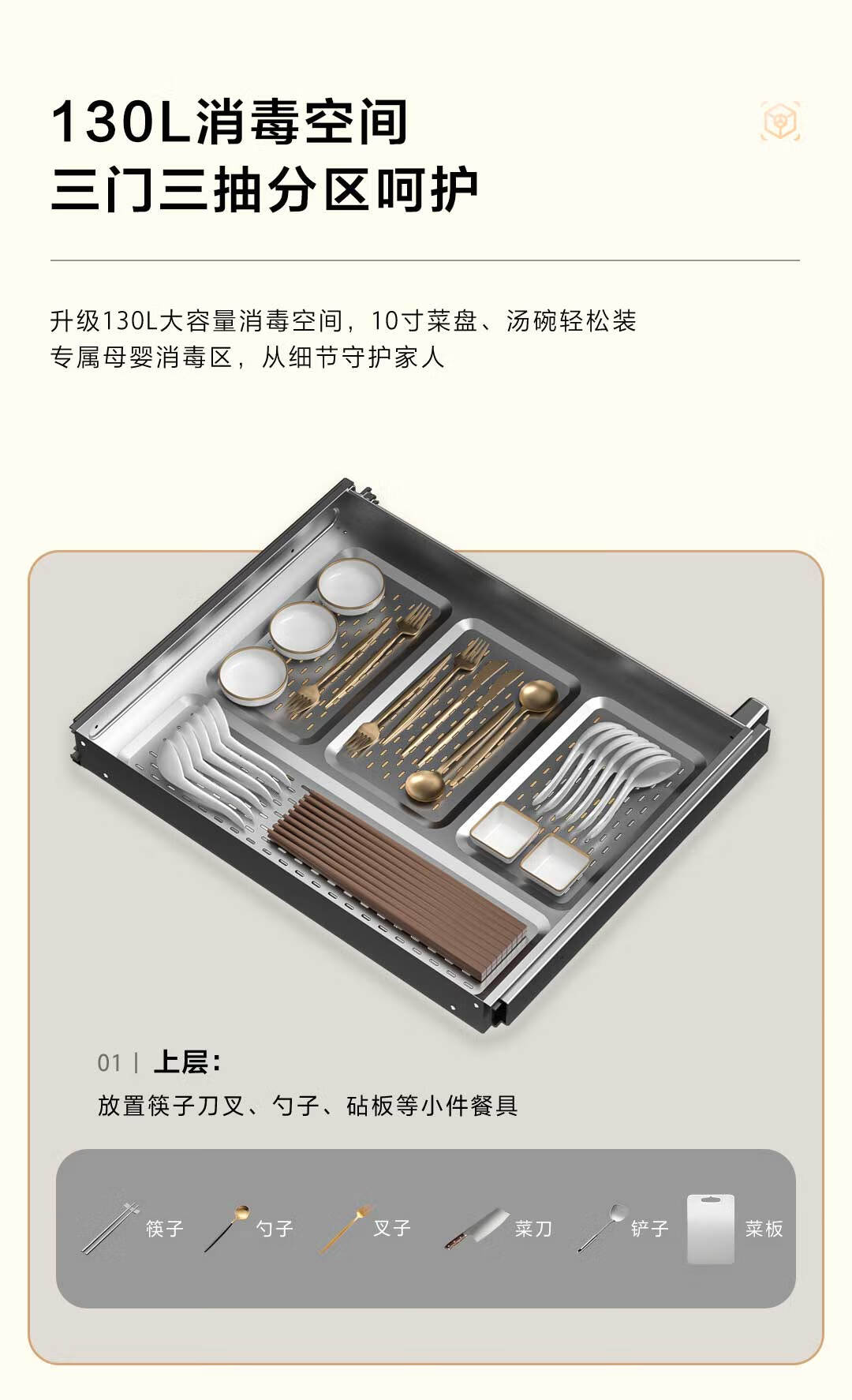 海尔(Haier)【麦浪套系】消毒柜嵌入式 灭菌舱系列130L三门三抽大容量消毒柜家用母婴消毒柜光波巴氏消毒EB130