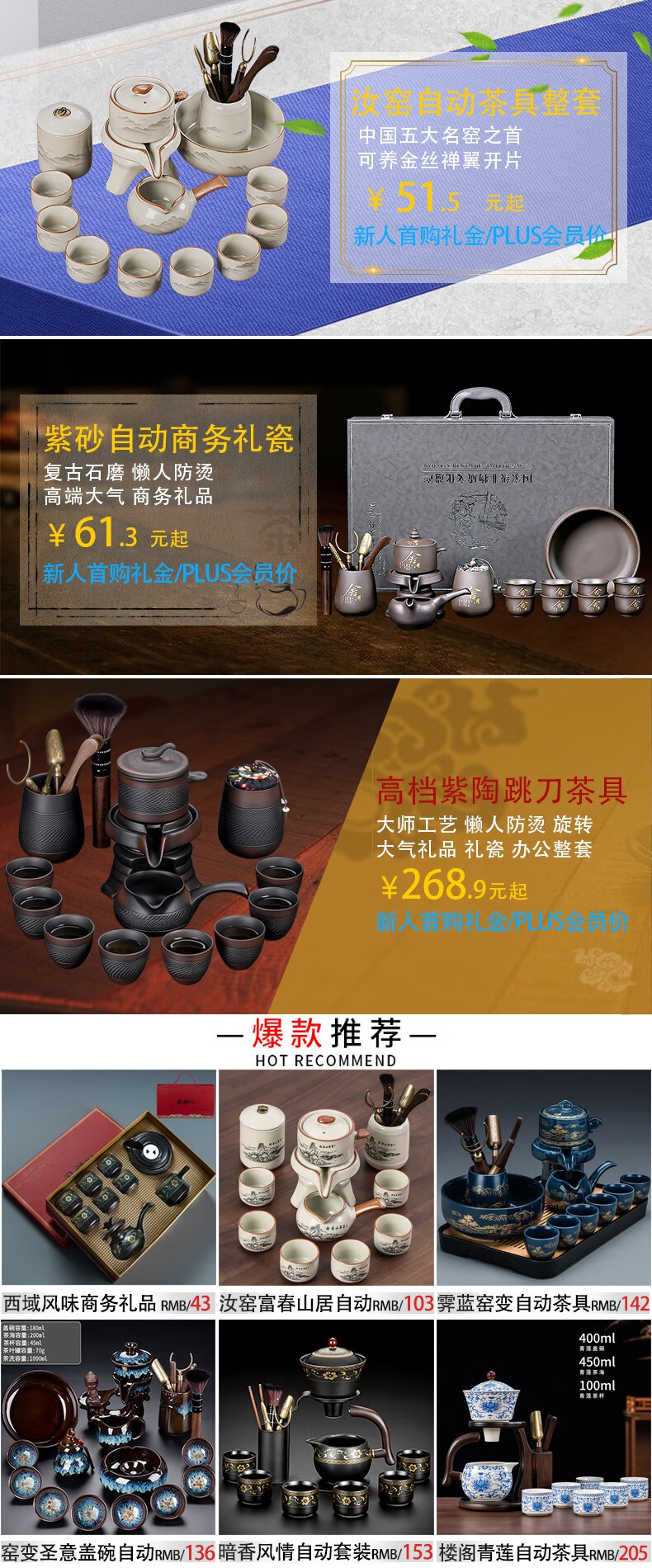 正扬紫砂石磨自动茶具套装家用功夫茶杯懒人泡茶器旋转出水贴花整套 紫砂自动(舍得)六杯+茶道