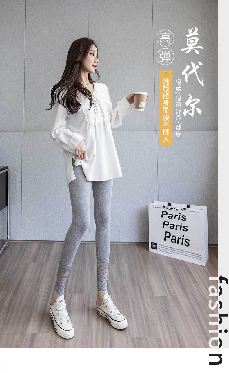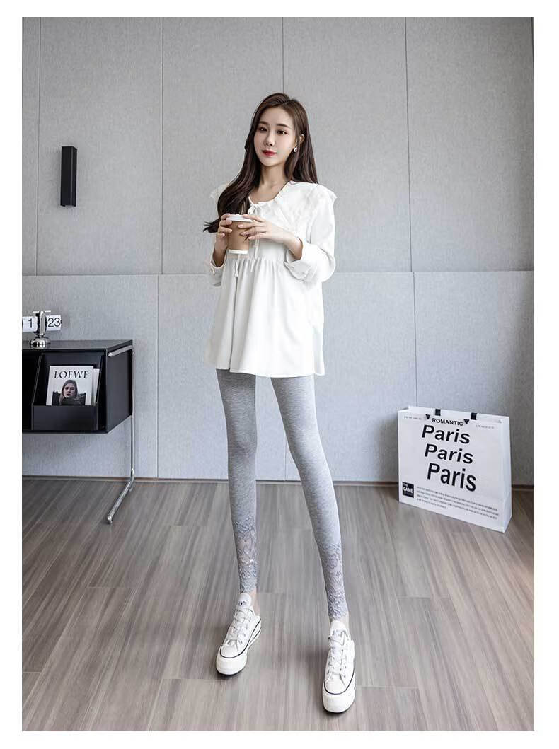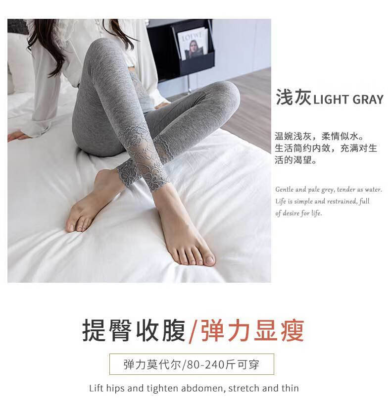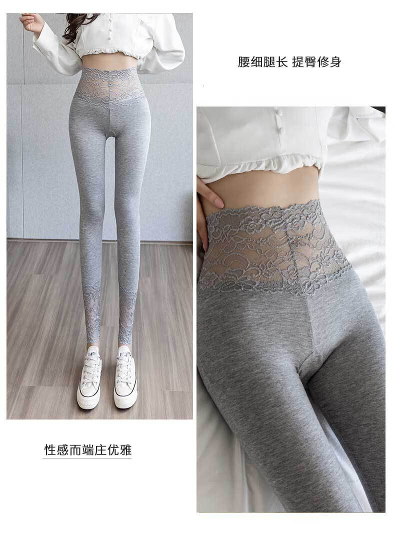 朵莱秀打底裤女外穿春季冬保暖高腰收腹无痕修身小脚裤 浅灰+浅灰 XL (建议125-150斤