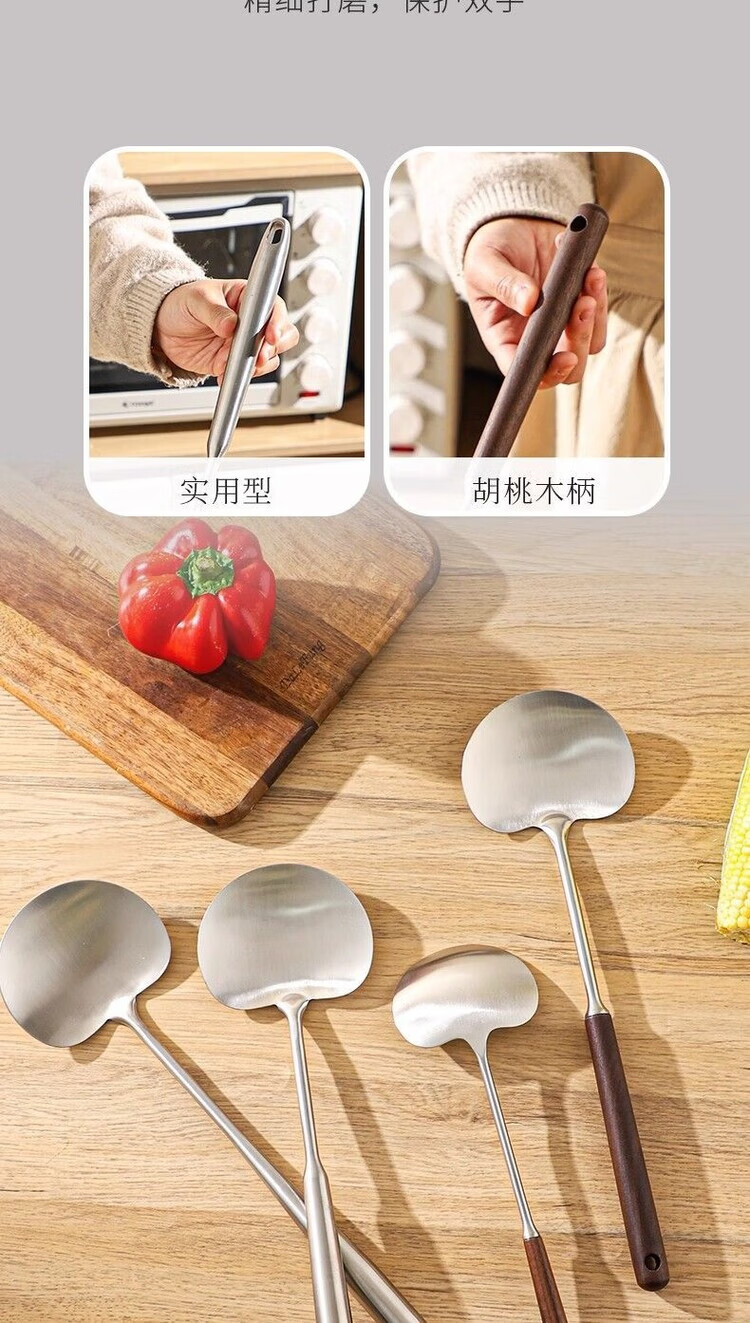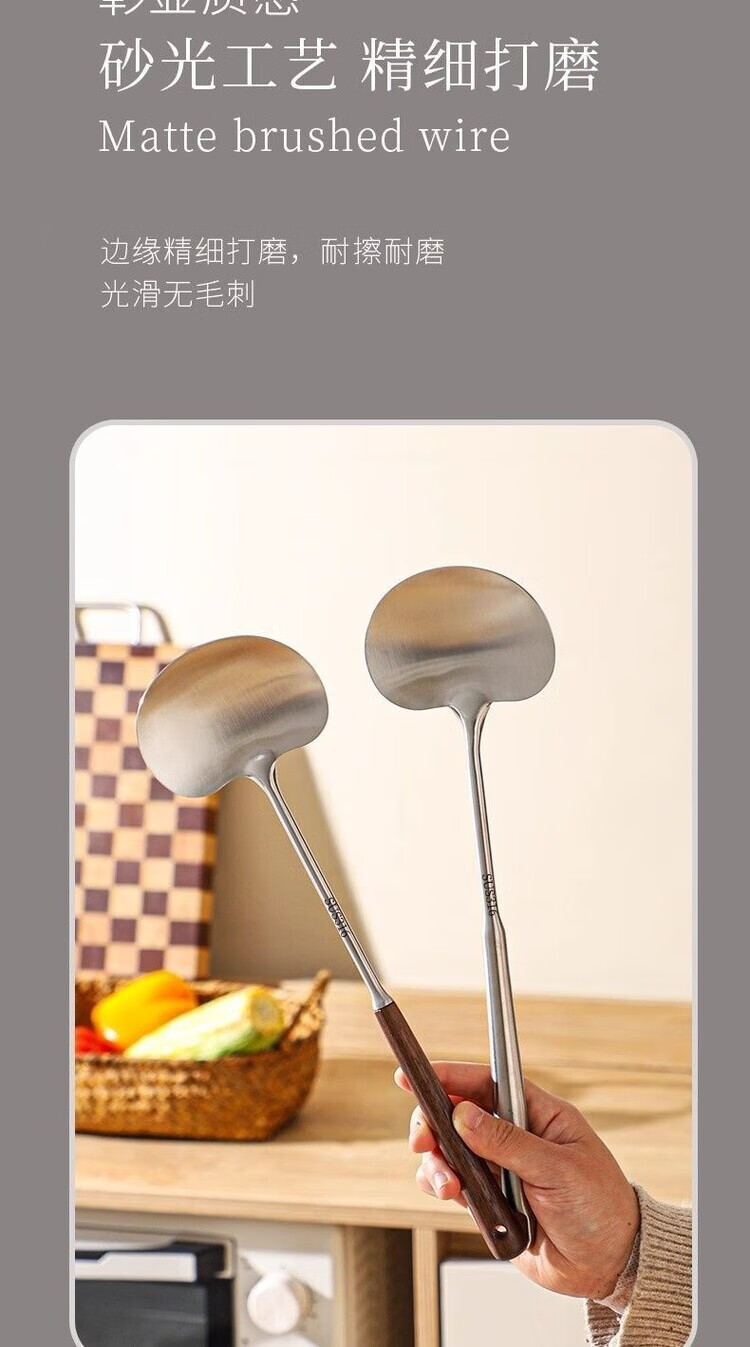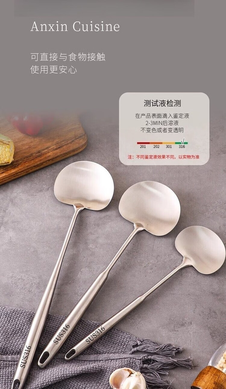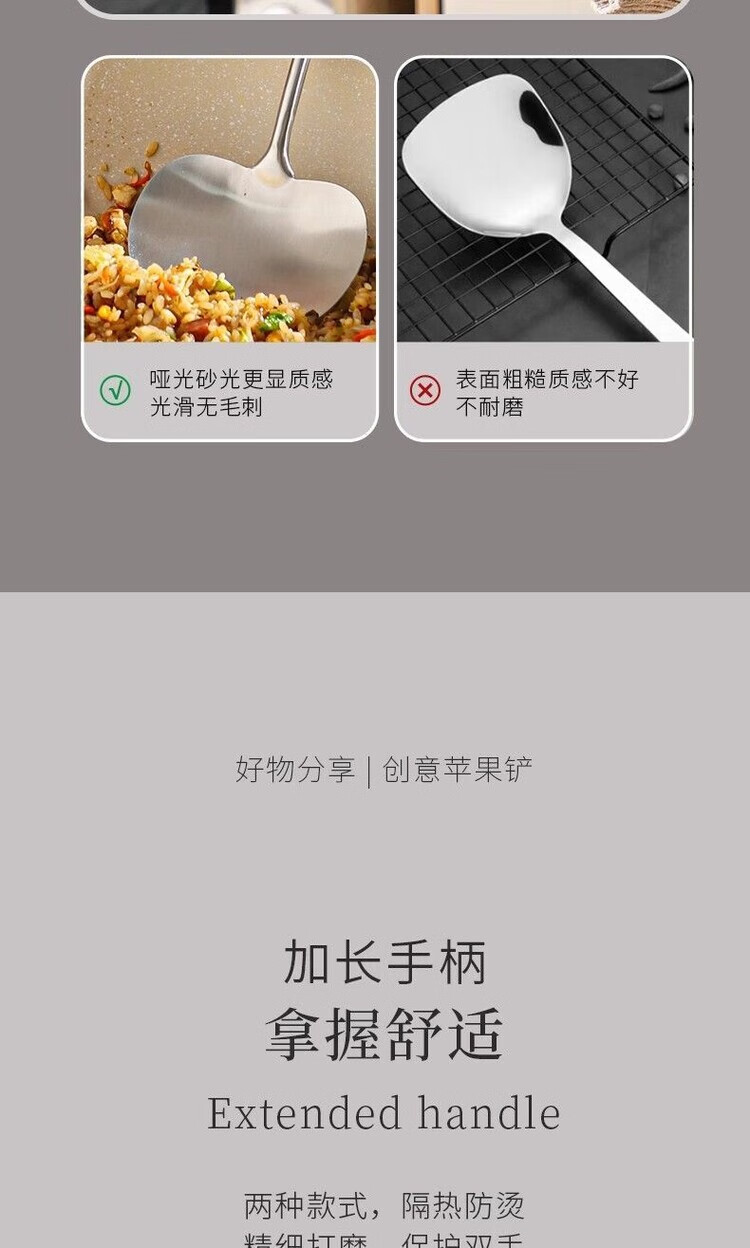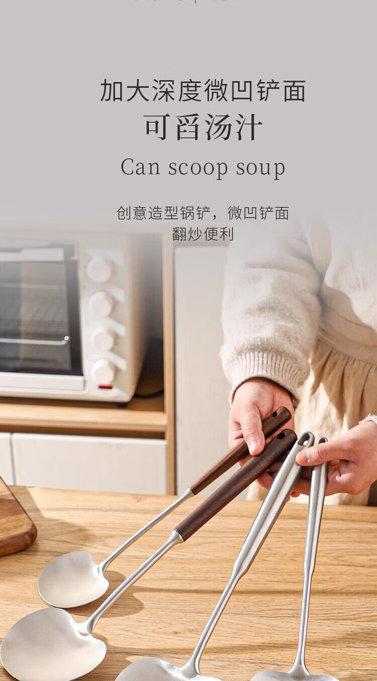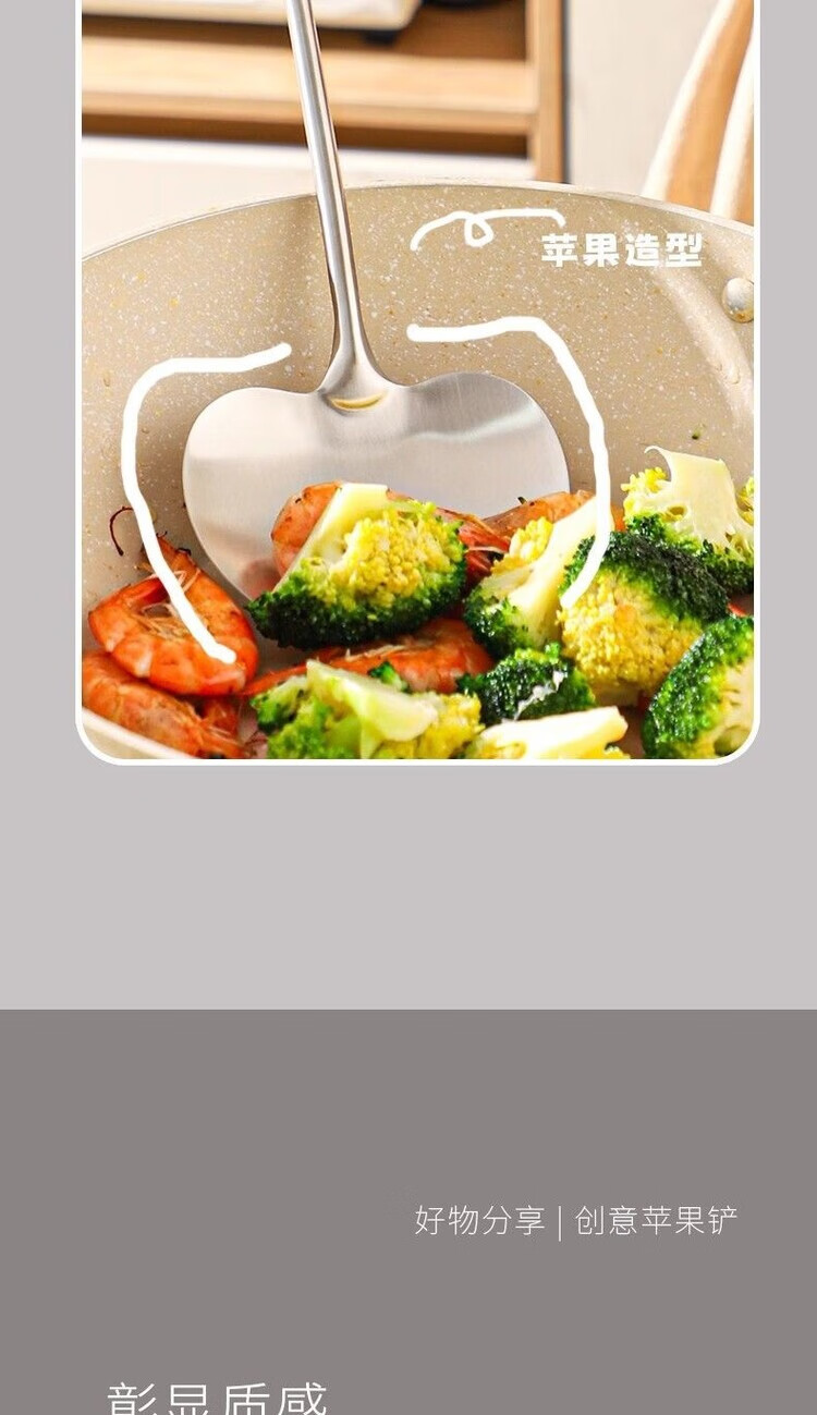 GIOIO316加厚加长一体锅铲不锈钢蘑菇铲食品级炒菜铲子全钢炒菜勺锅铲 大号(适合大肚锅) 整体全钢款(超光滑且不藏污)