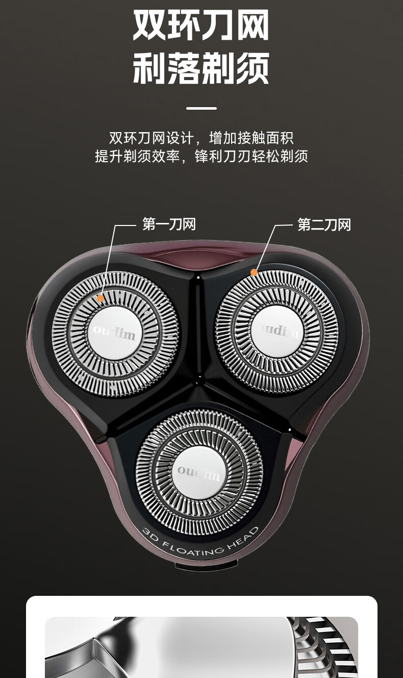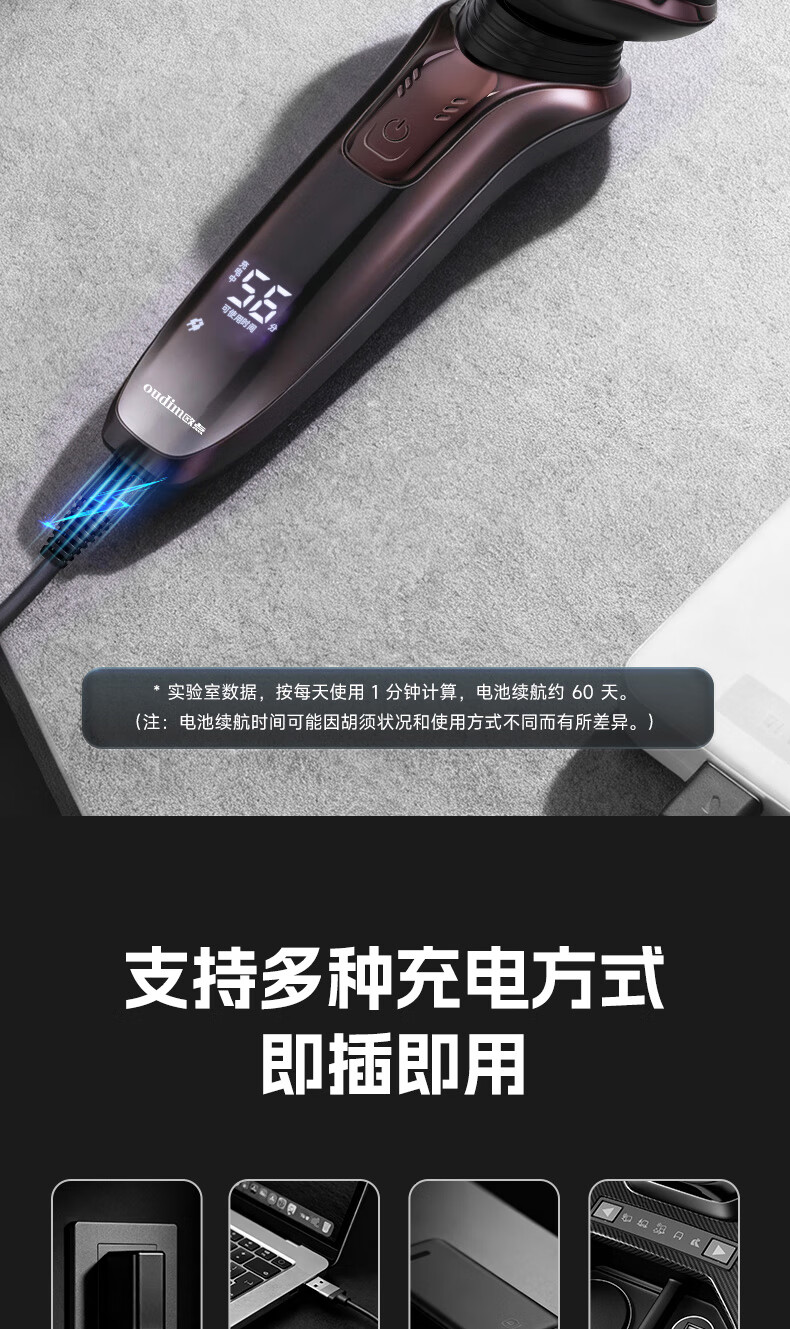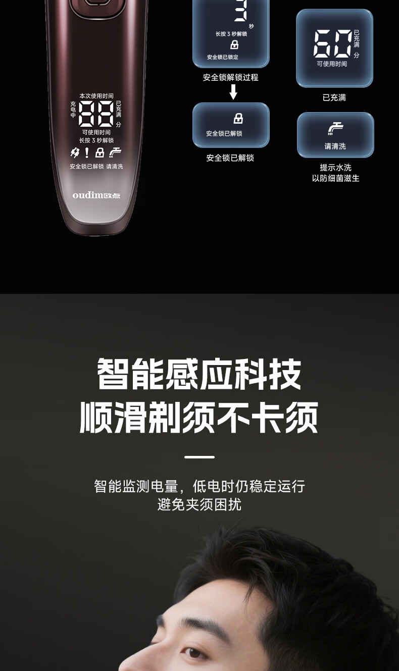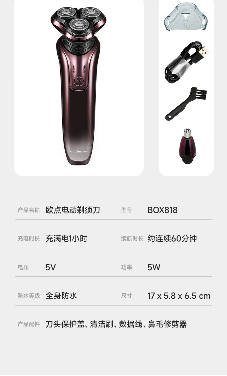 欧点电动剃须刀男士剃胡刀 全身水洗胡须刀 鬓角修剪刀 快充胡子刀 LED显示 生日礼物送男朋友送老公 【快充|干湿两剃|鼻毛修剪】BOX818