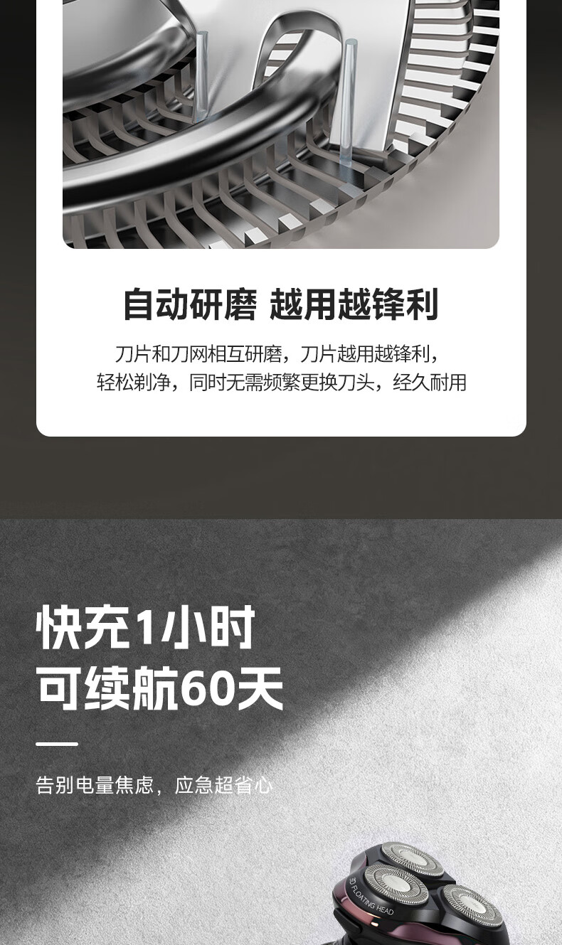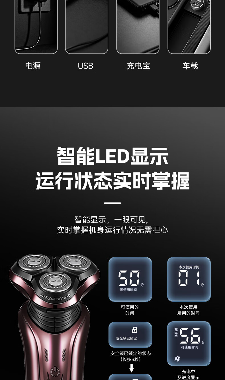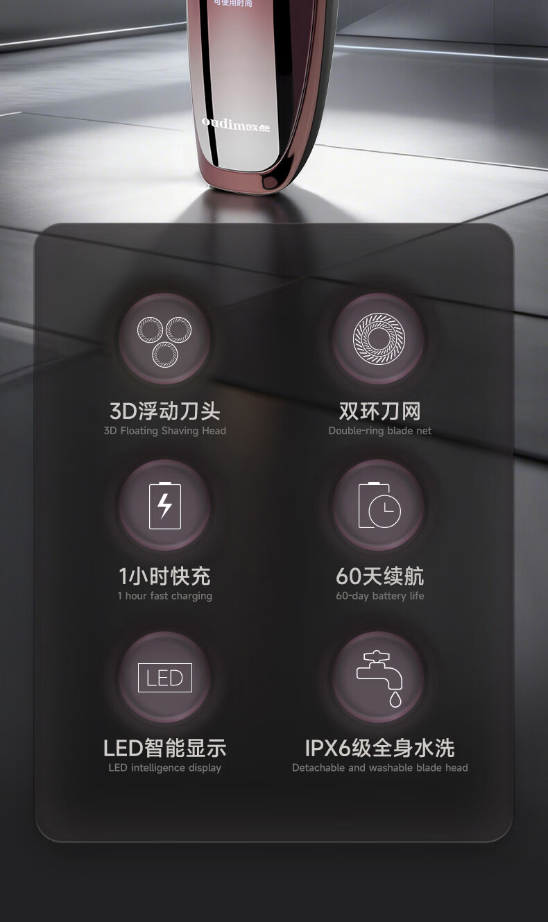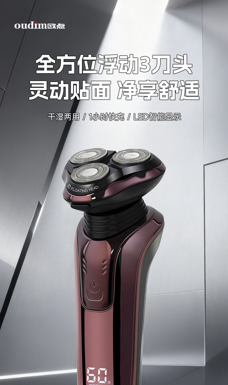 欧点电动剃须刀男士剃胡刀 全身水洗胡须刀 鬓角修剪刀 快充胡子刀 LED显示 生日礼物送男朋友送老公 【快充|干湿两剃|鼻毛修剪】BOX818