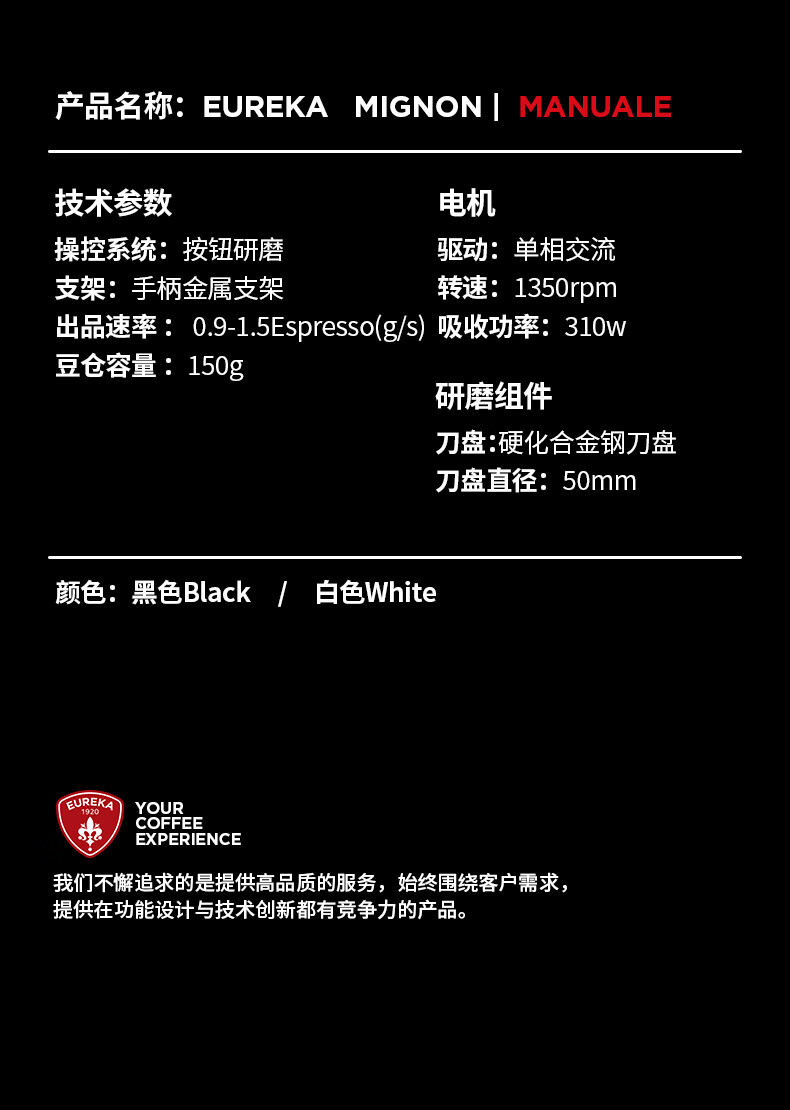 EUREKA意式磨豆机 MANUALE M50 尤里卡MMG电控直出平刀咖啡粉研磨机电动咖啡豆粉碎机MIGNON桌面家用 MANUALE-白色