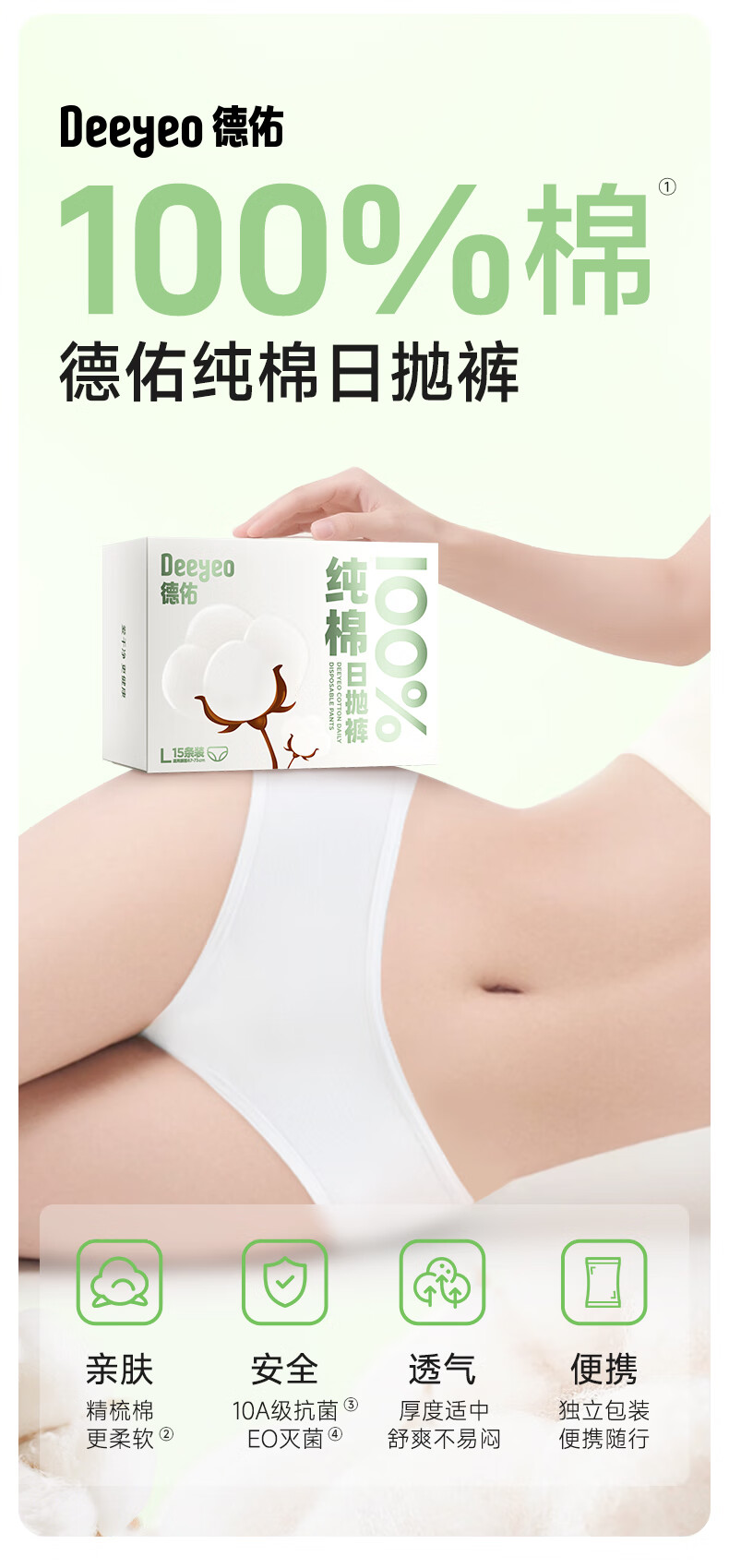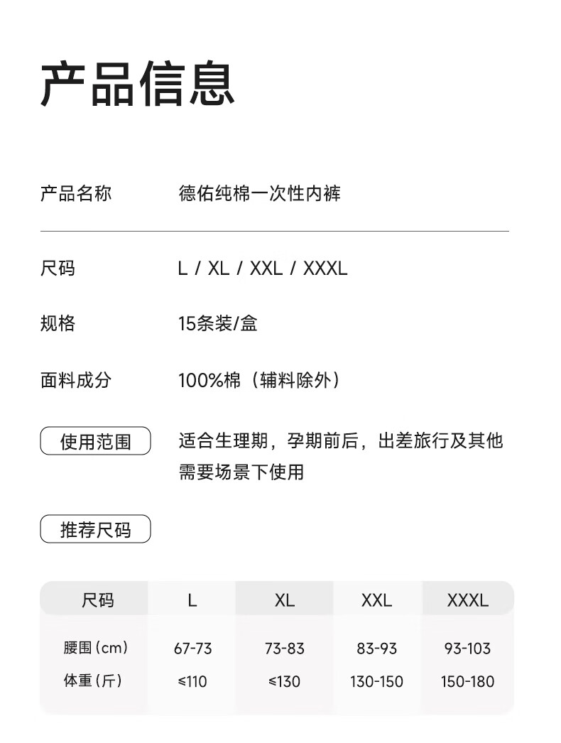 德佑一次性内裤女孕产妇出差生理期纯棉内裤10A抑菌XL码15条