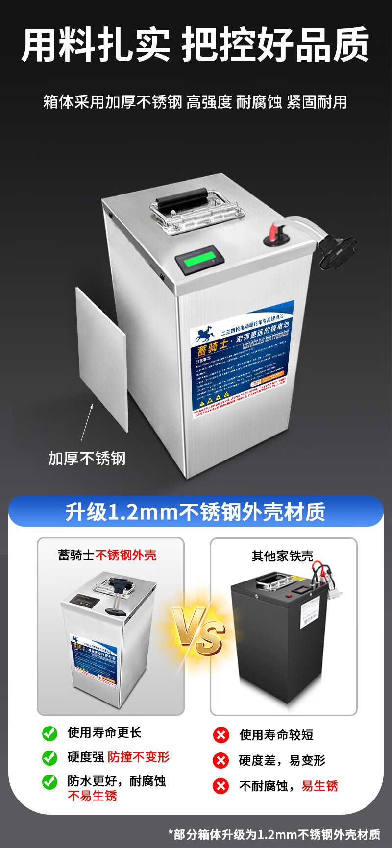 蓄骑士电动车锂电池外卖锂电池60v电瓶三轮三元锂磷酸铁锂电摩托车专用 铝壳60v50ah【约90-130KM】配充