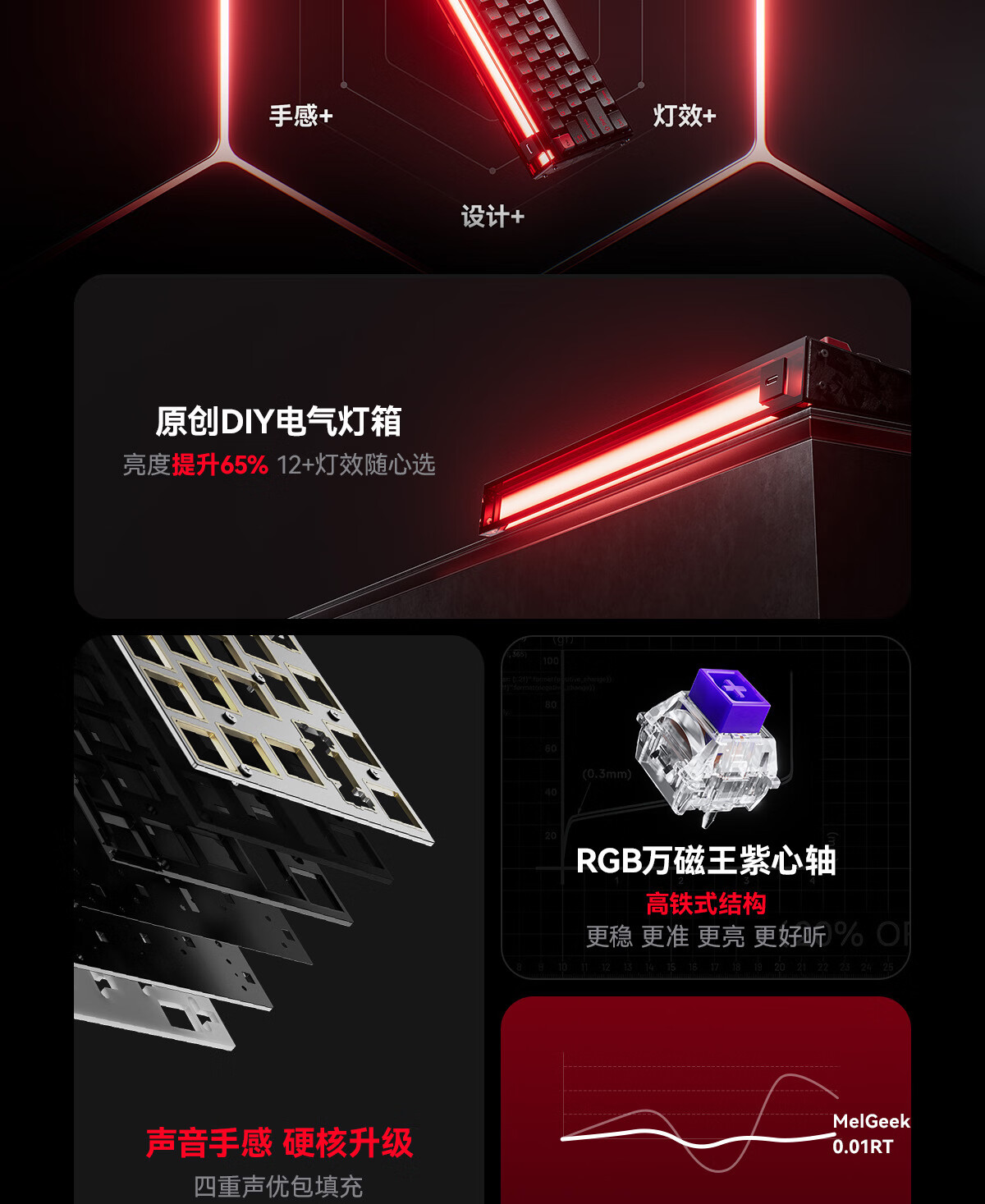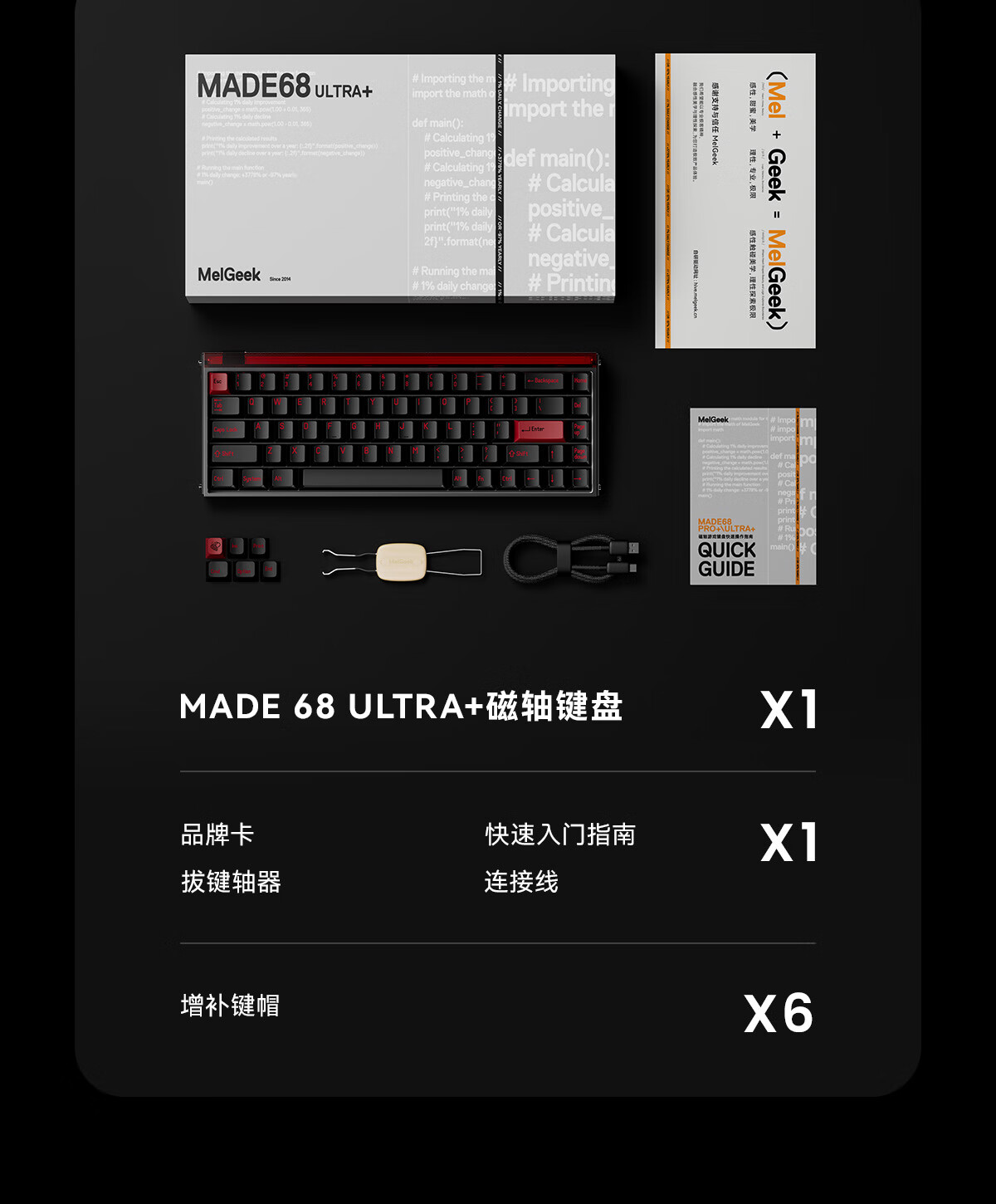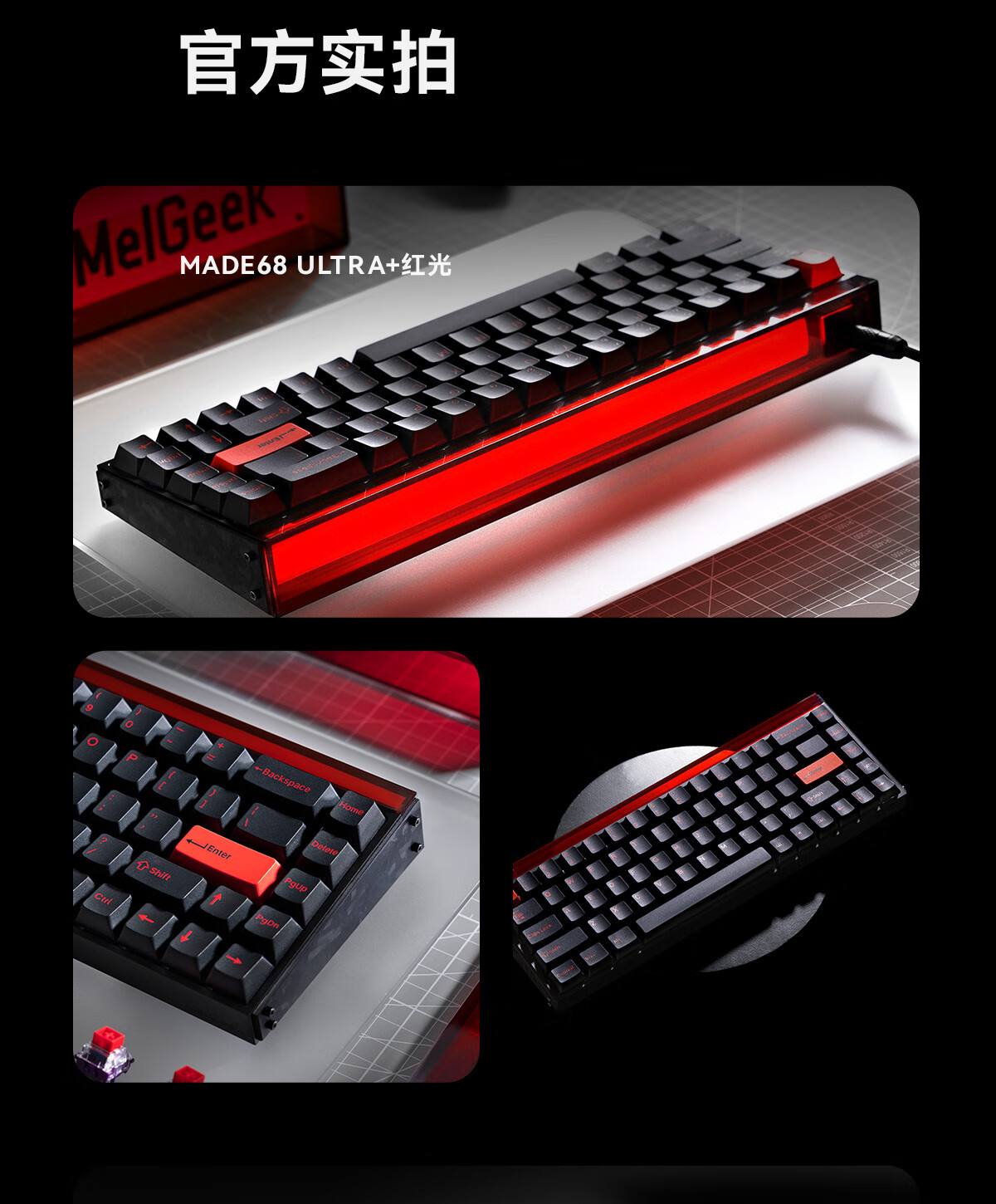 MelGeek蜜氪 made68ultra+全铝磁轴键盘RT0.01电竞游戏客制化机械PRO小蜜蜂无畏契约TTC万磁王紫心轴 MADE68 Ultra+黑光【紫心轴】