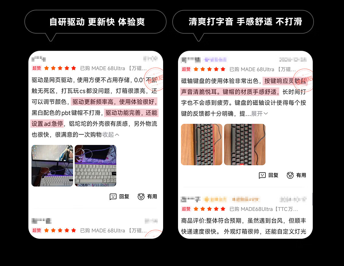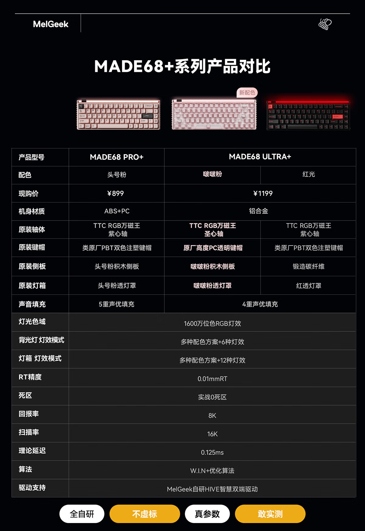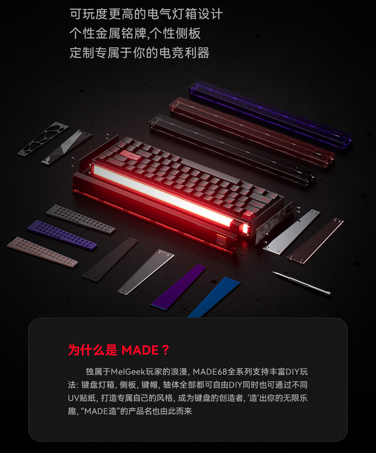 MelGeek蜜氪 made68ultra+全铝磁轴键盘RT0.01电竞游戏客制化机械PRO小蜜蜂无畏契约TTC万磁王紫心轴 MADE68 Ultra+黑光【紫心轴】