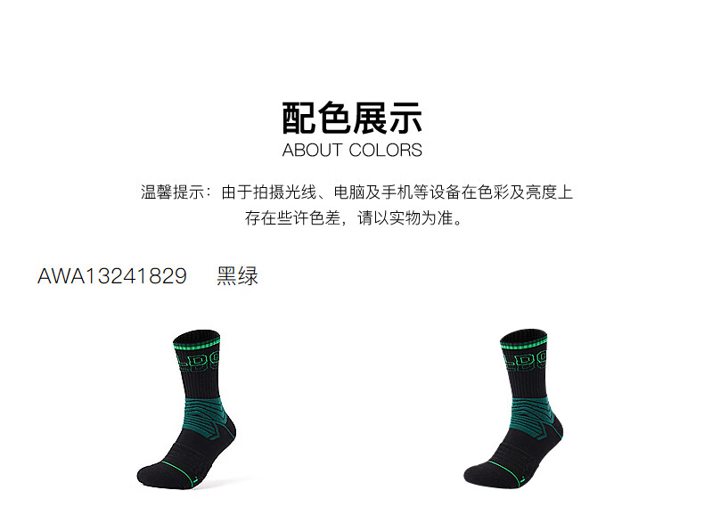 乔丹QIAODAN袜子男袜篮球袜休闲长袜男 黑绿 均码