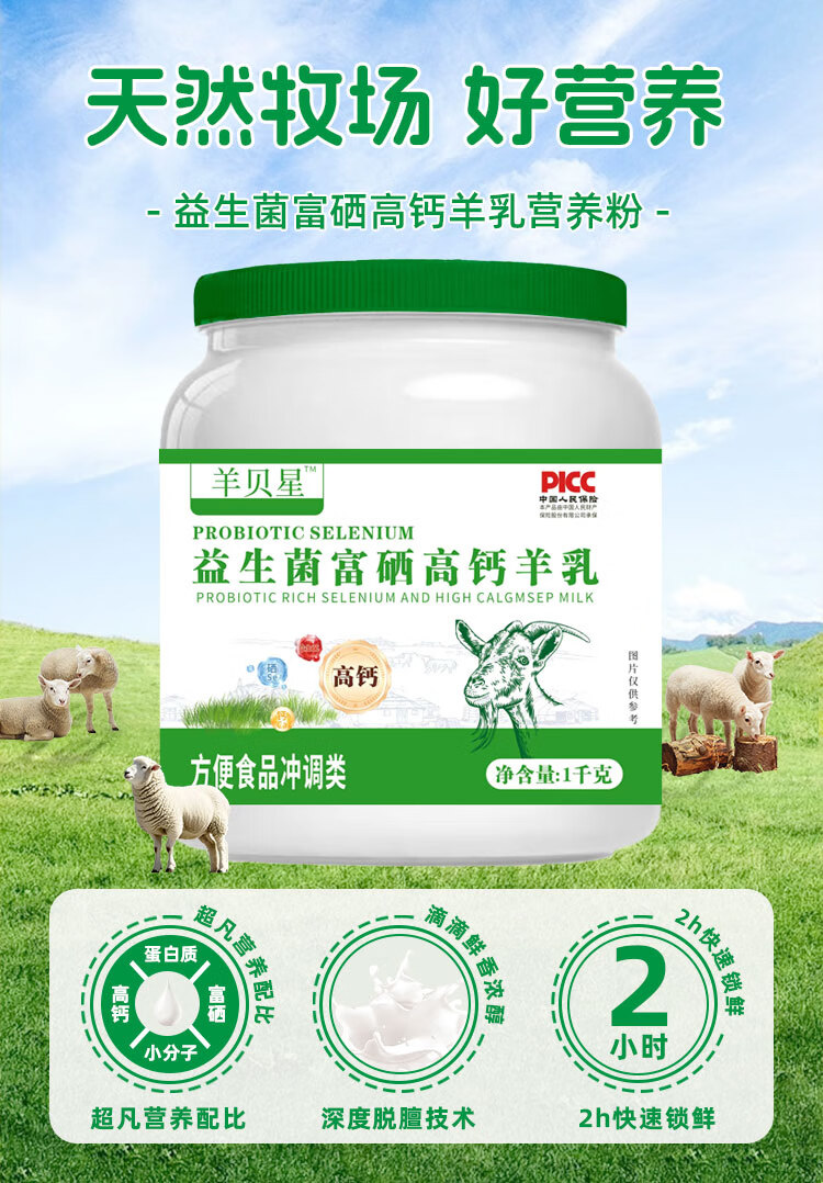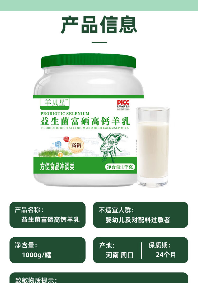 羊贝星高钙羊奶粉中老年成人富硒益生菌高钙羊乳粉全家营养羊乳营养粉 益生菌富硒高钙羊乳粉 *2罐 每罐2斤
