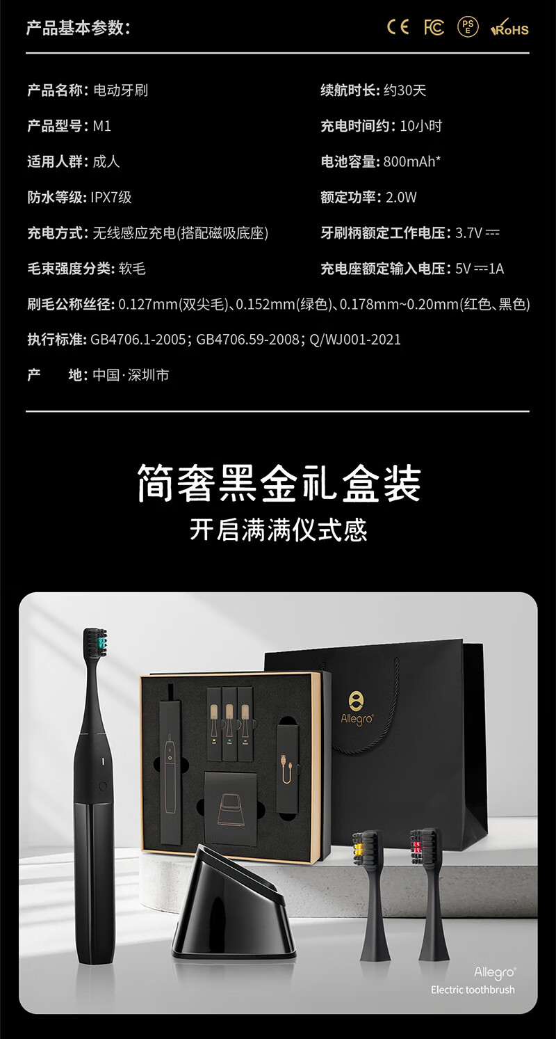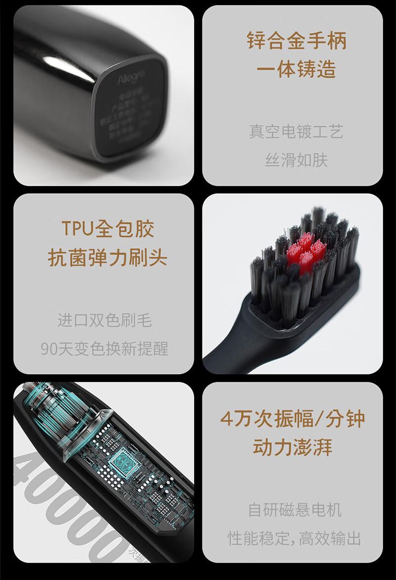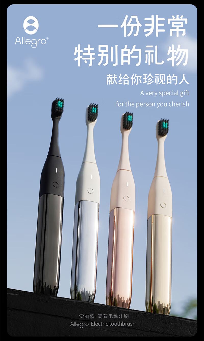 ALLEGRO爱丽歌高端简奢电动牙刷成人情侣款软毛全自动送男友女友父母长辈老师生日礼物定制贺卡礼盒送人 深空灰礼盒包装