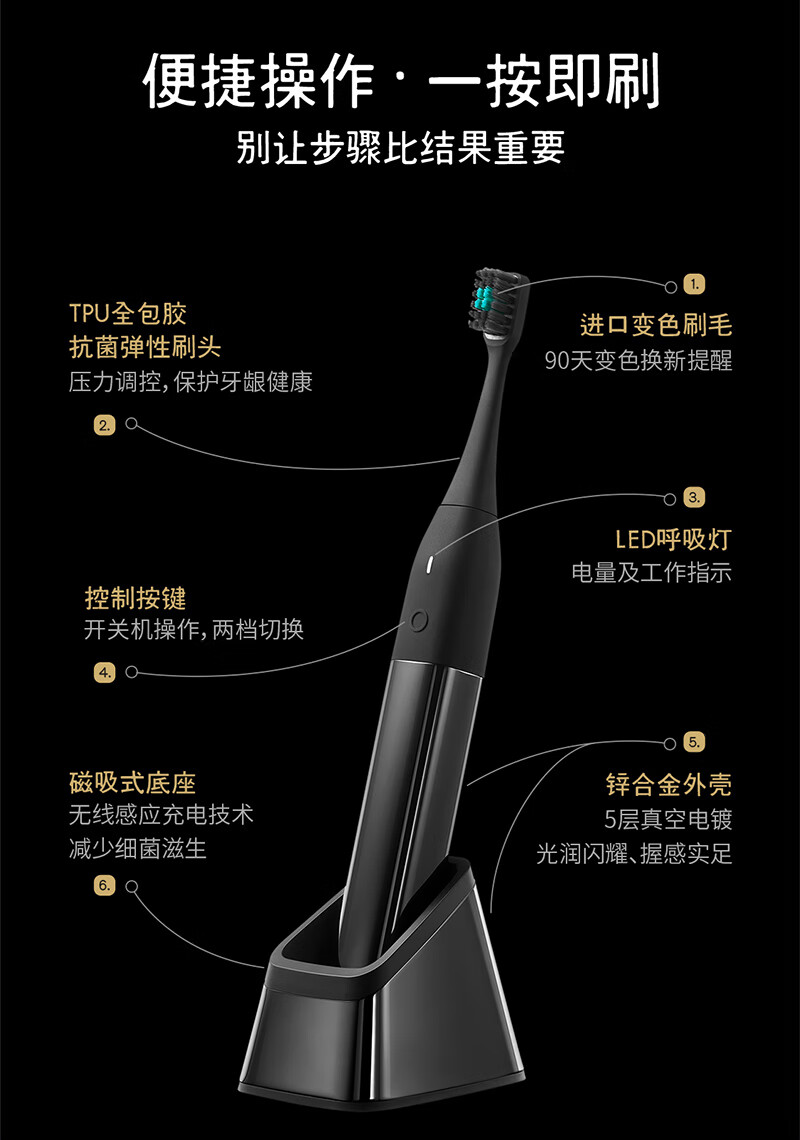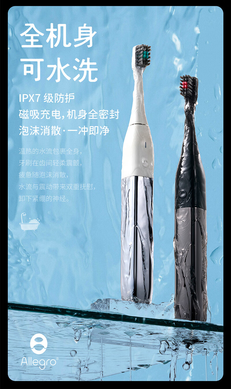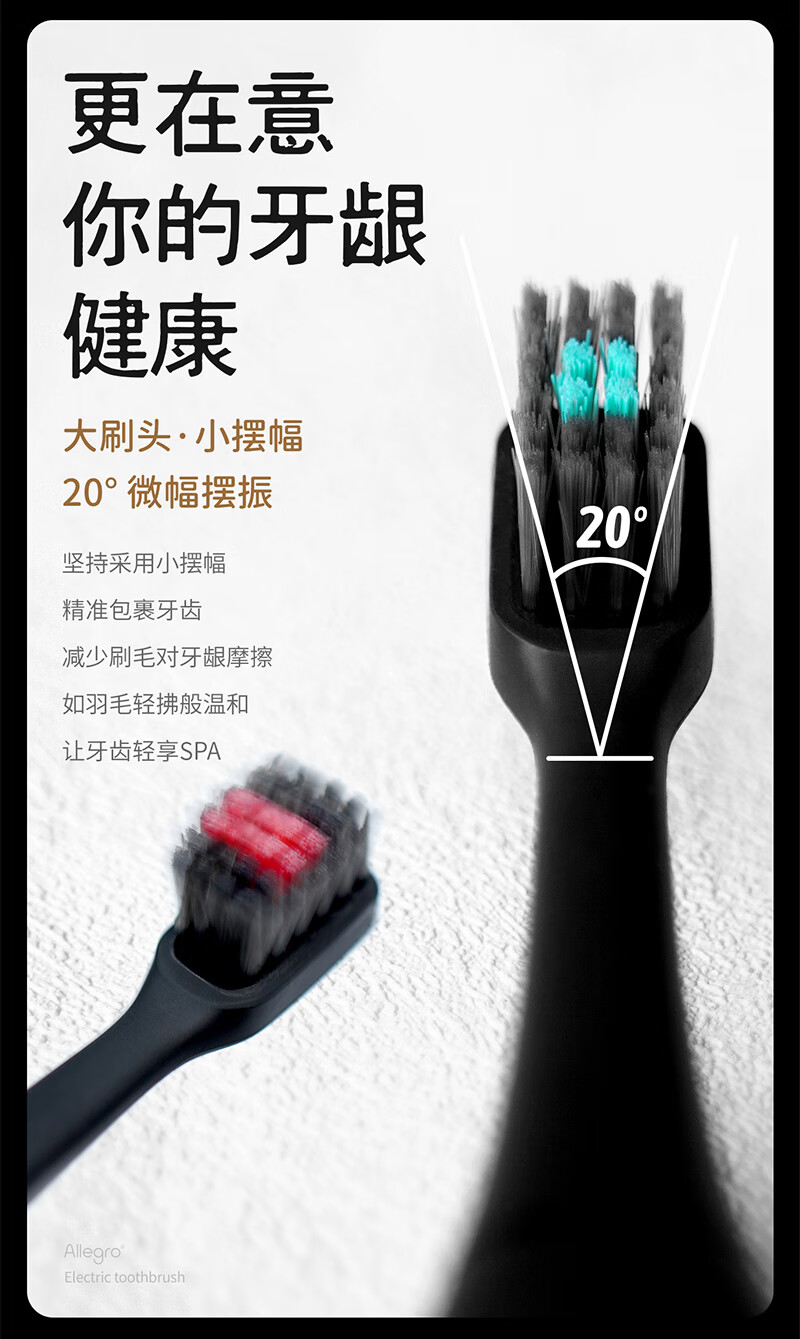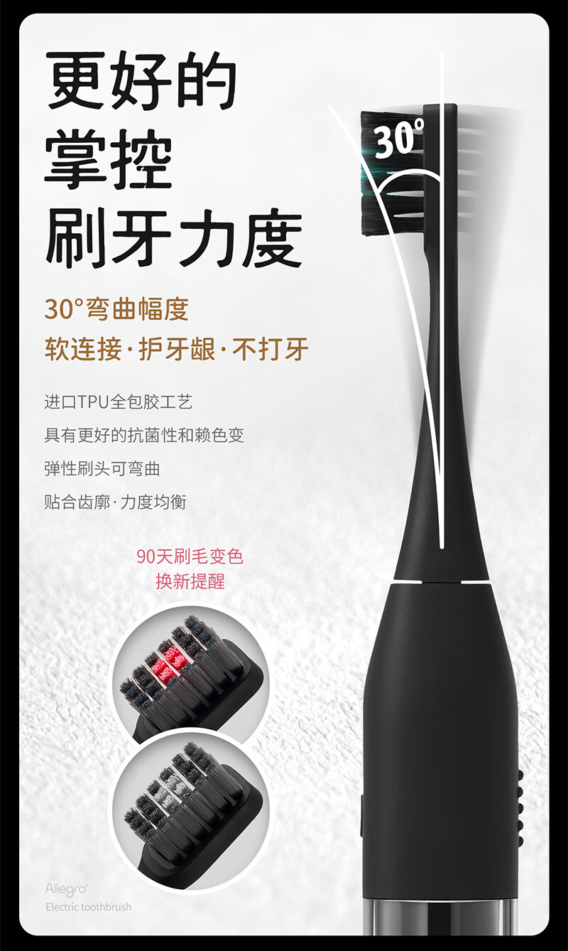 ALLEGRO爱丽歌高端简奢电动牙刷成人情侣款软毛全自动送男友女友父母长辈老师生日礼物定制贺卡礼盒送人 深空灰礼盒包装