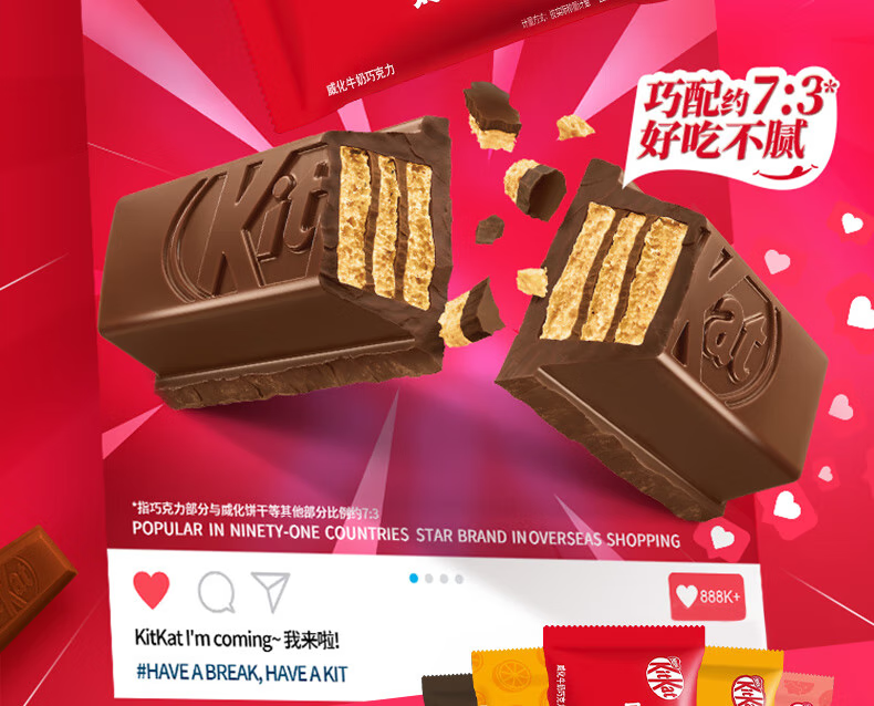 徐福记KitKat奇巧威化黑巧牛奶巧克力多口味独立小包袋零食休闲零食 雀巢奇巧威化巧克力508g约40枚