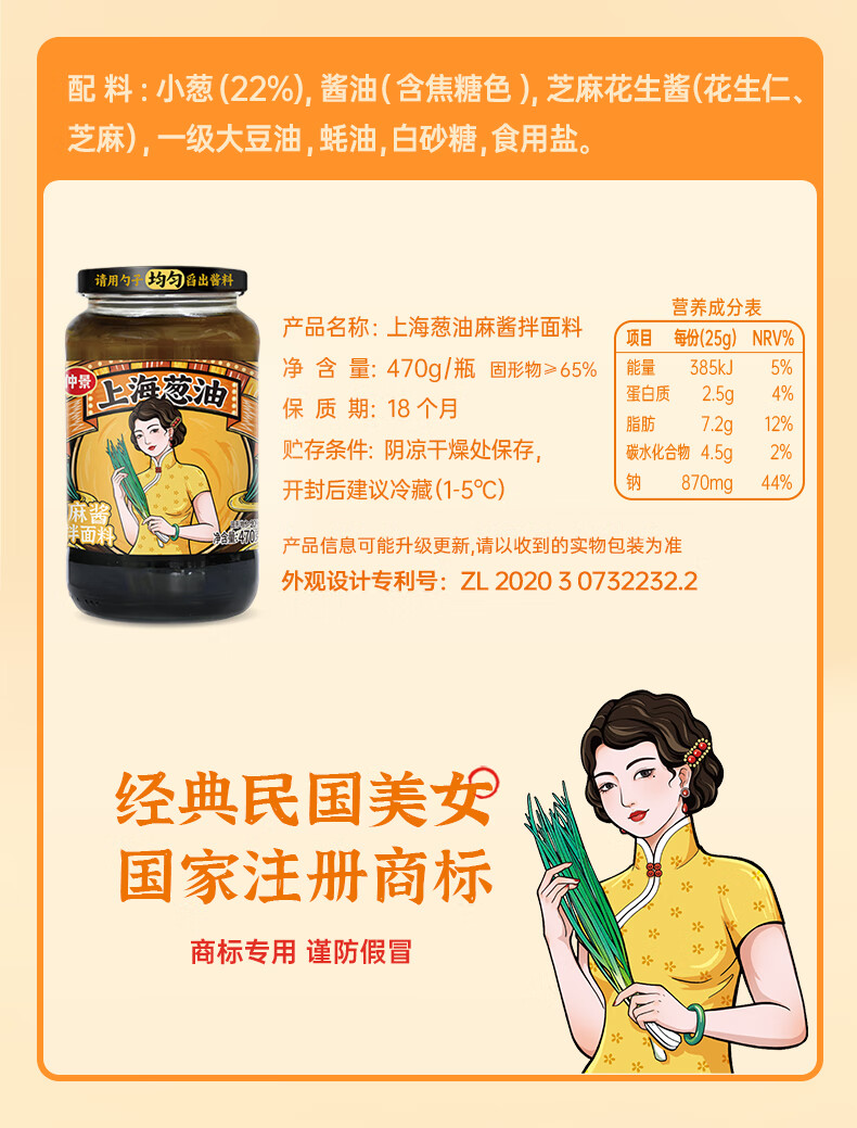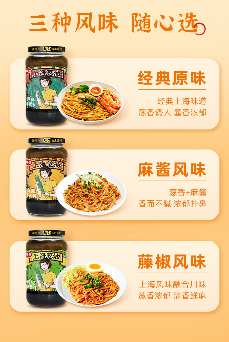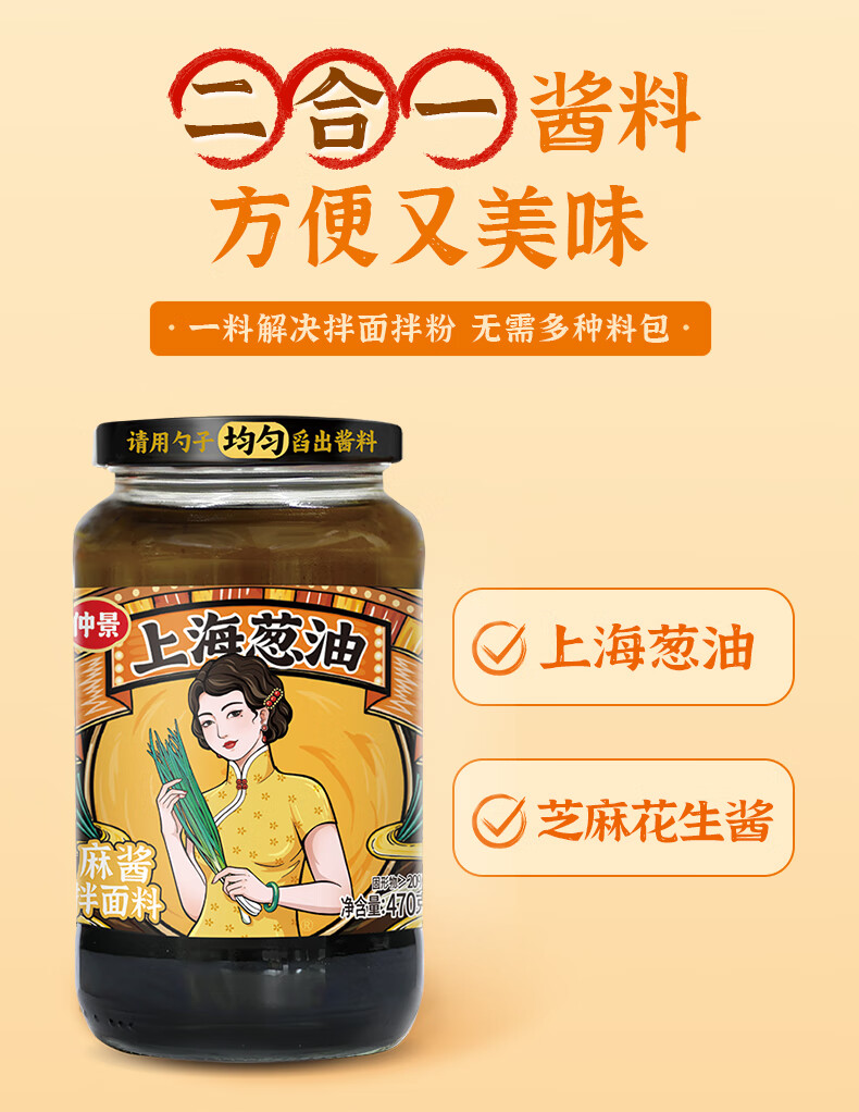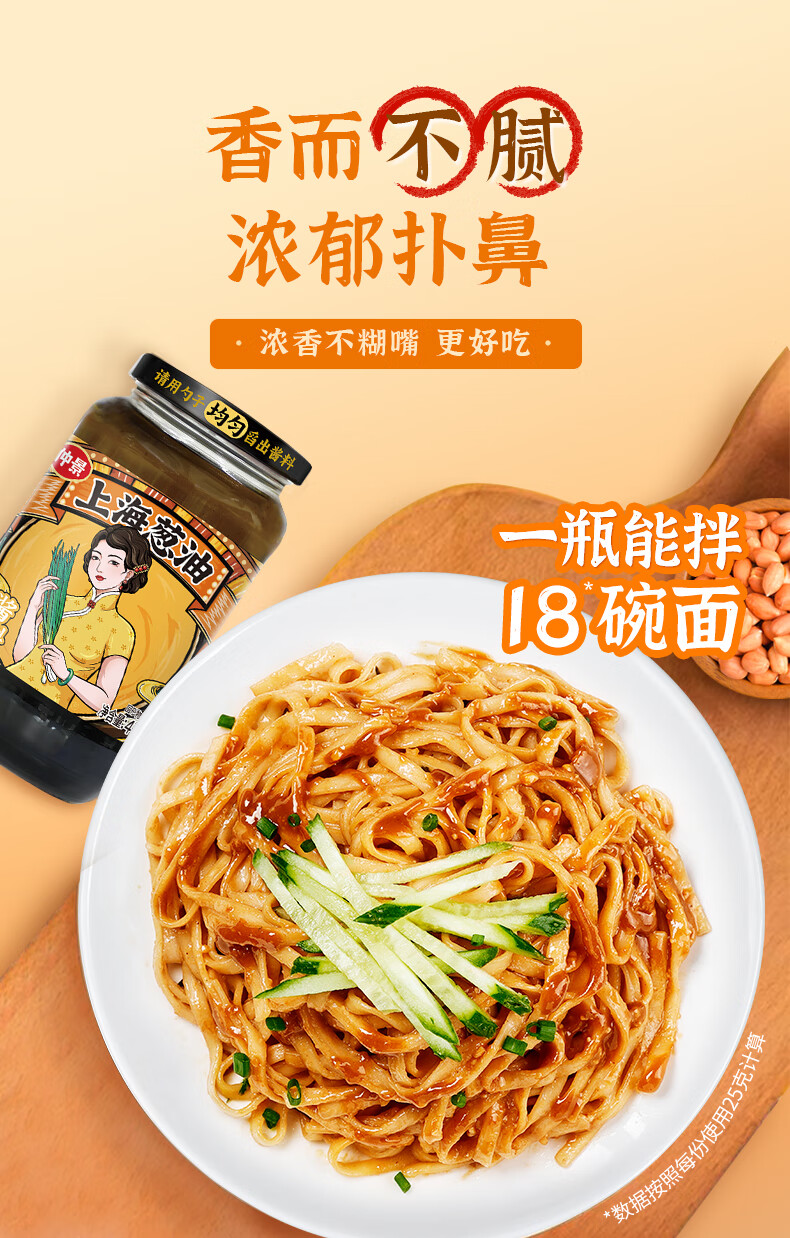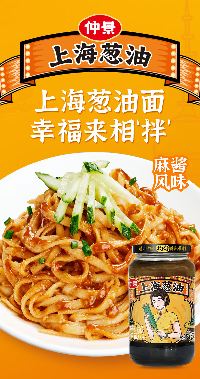 仲景 上海葱油拌面酱料汁麻酱味 老上海拌粉炸酱面条酱料【配料干净】 经典味 上海葱油210gx2瓶