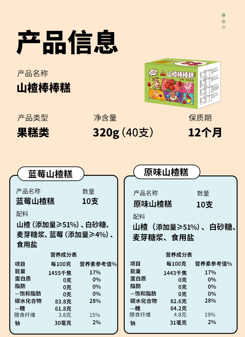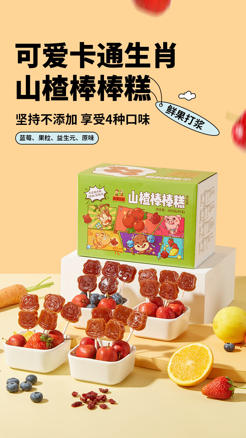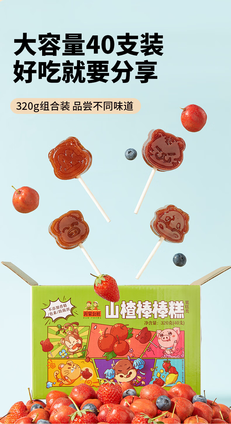 沂蒙公社山楂棒棒糕蓝莓原味益生元果粒四种口味共40支独立小包装