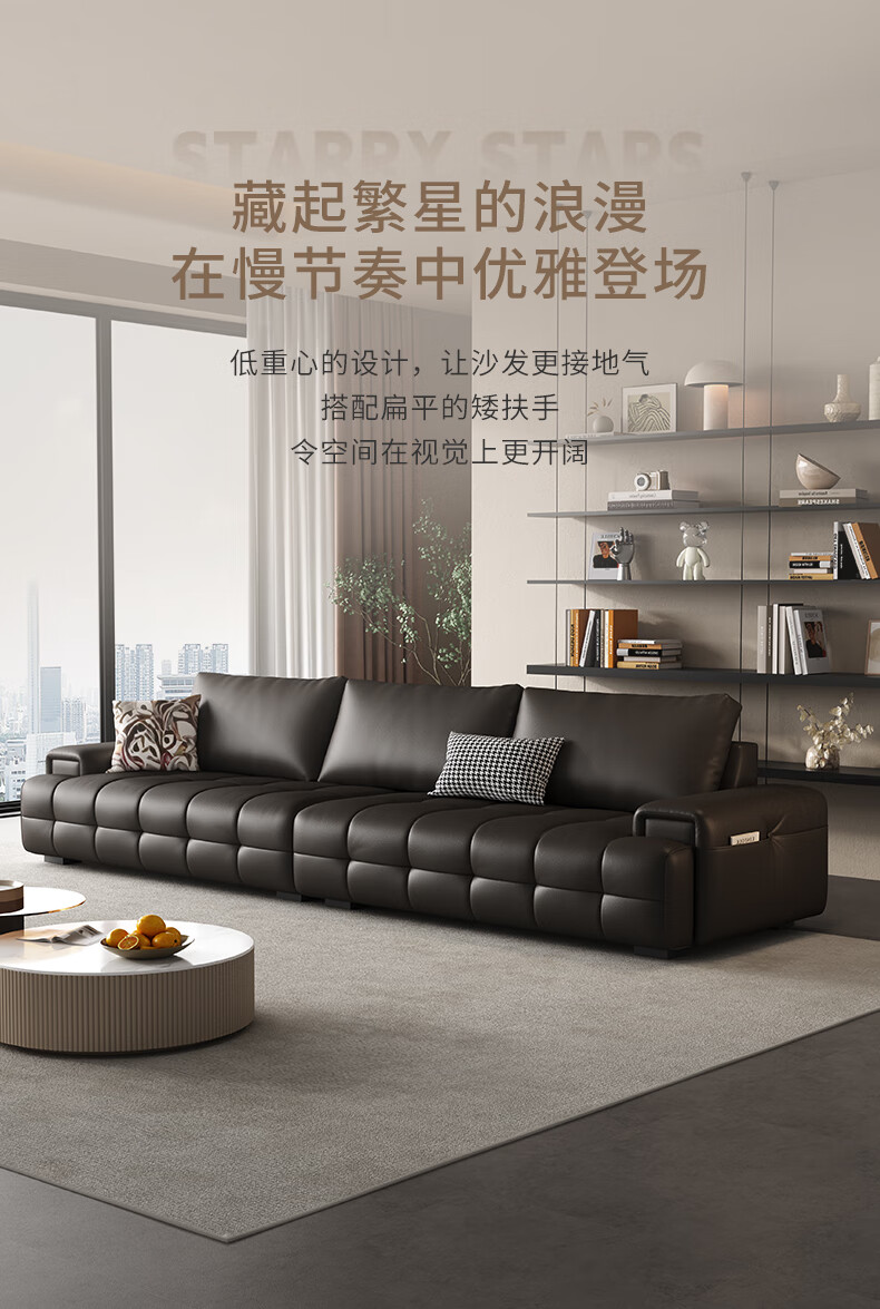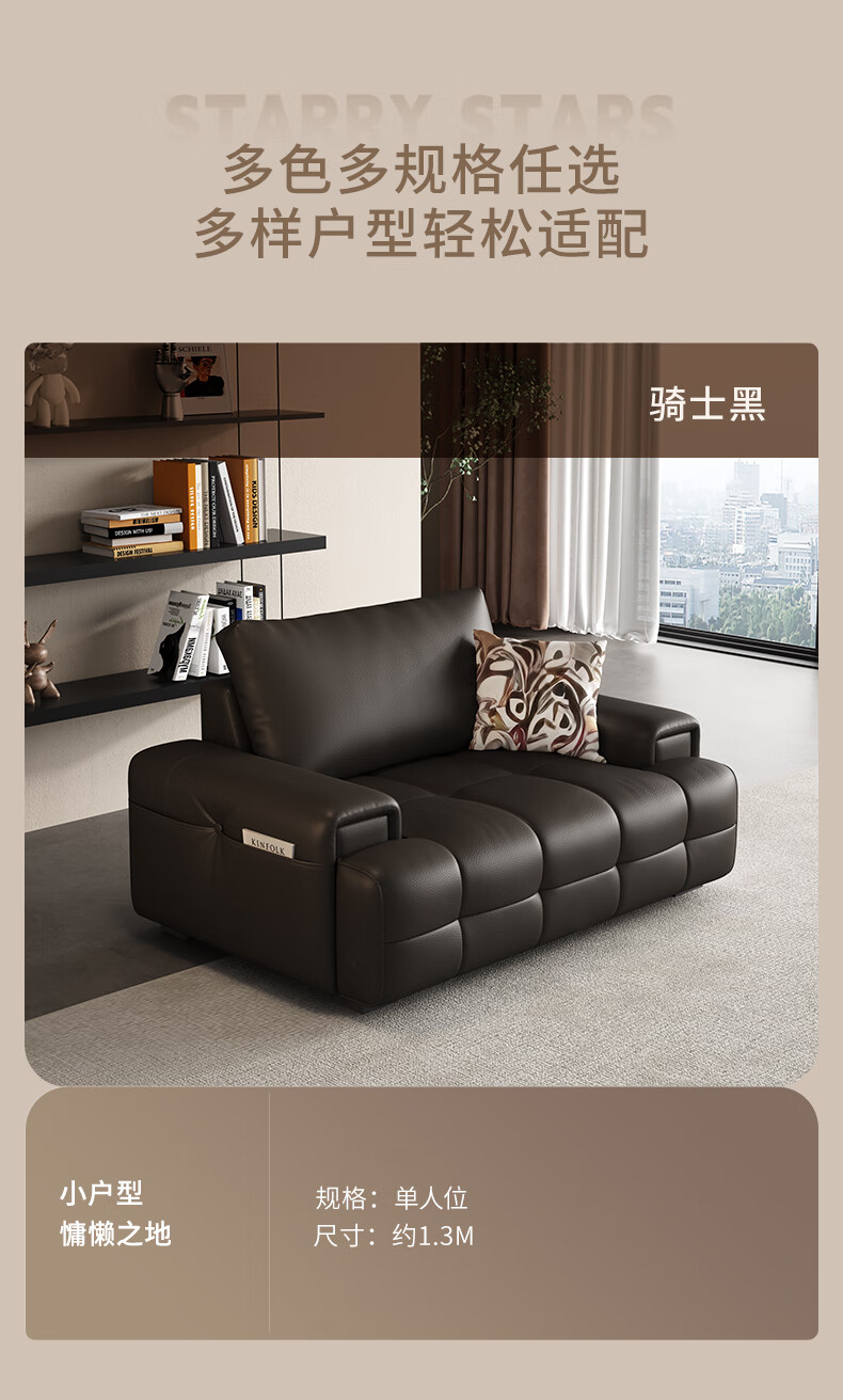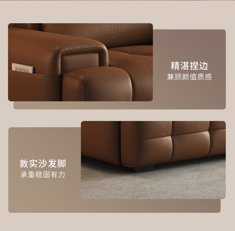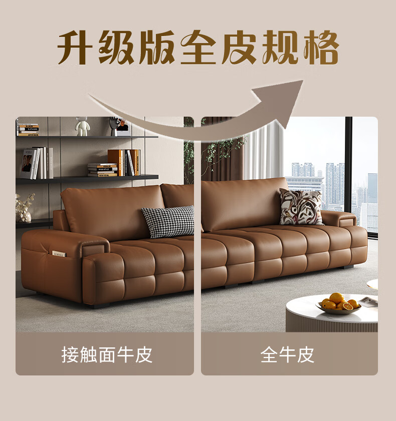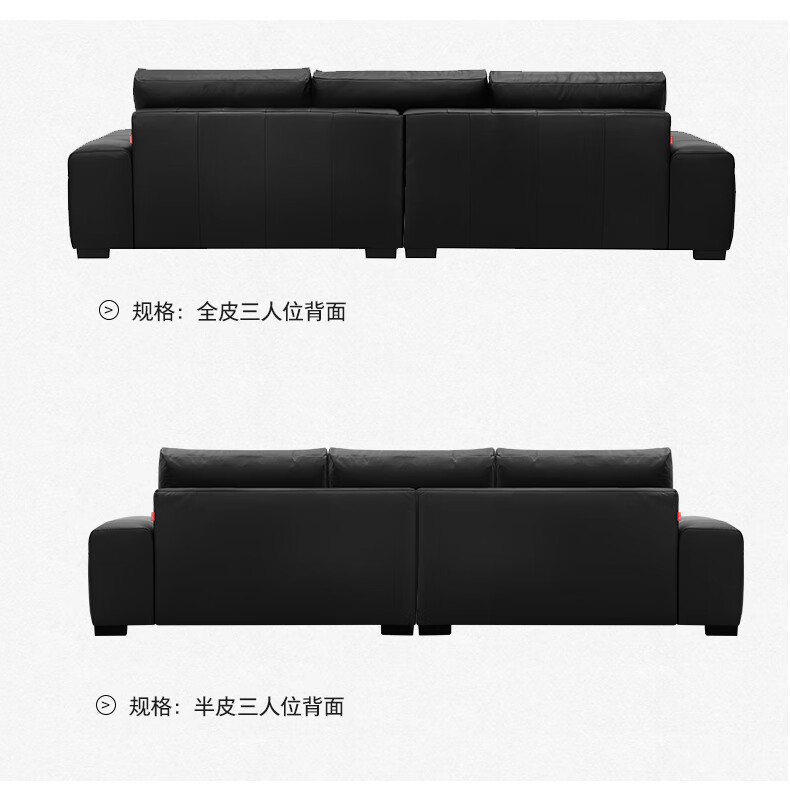 顾家家居(KUKA)劳伦斯沙发头层牛皮1383【奢华版】云柔亲肤皮骑士黑3.4m四人位
