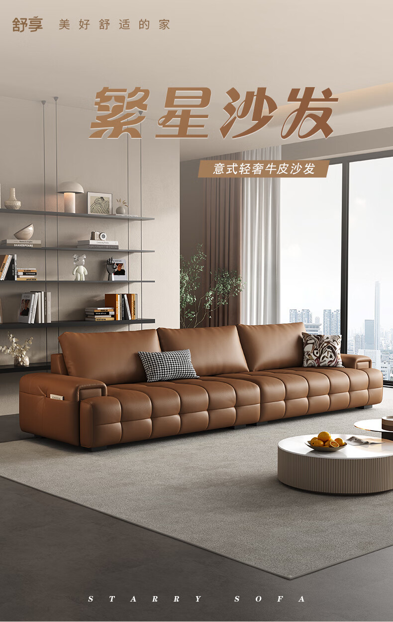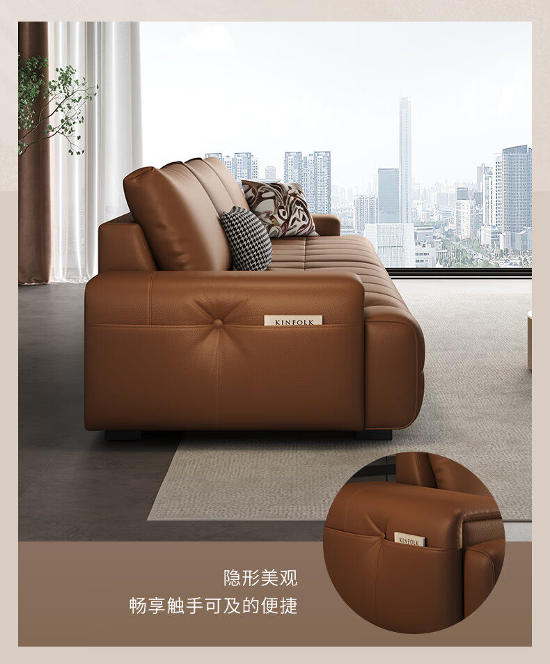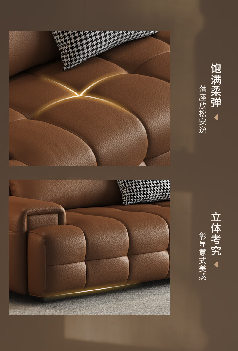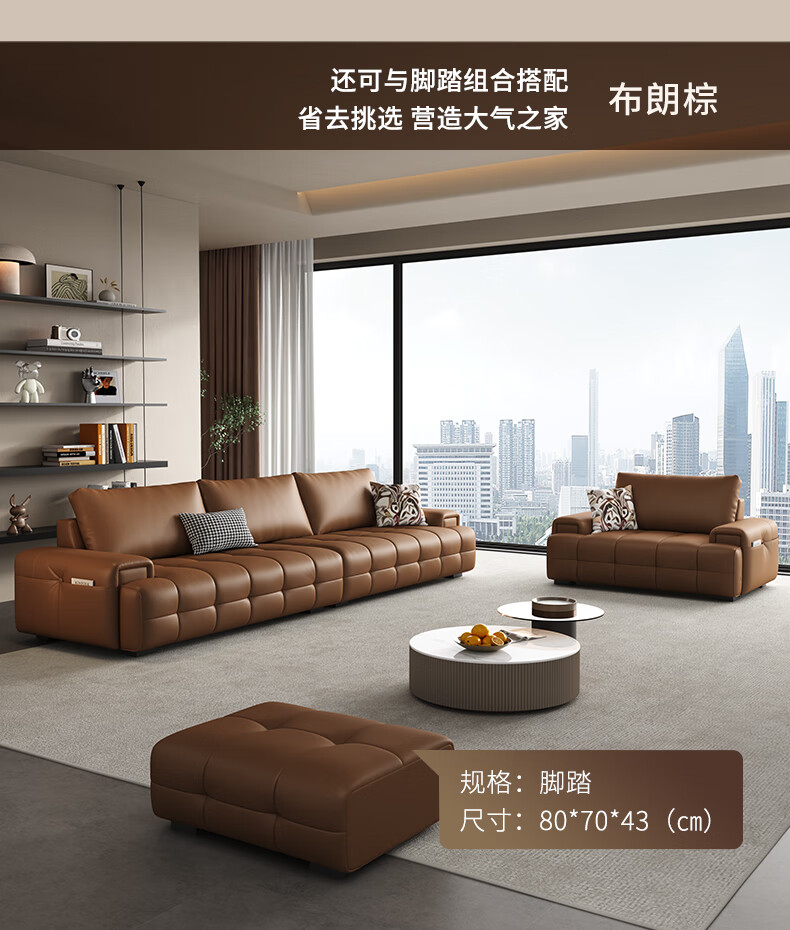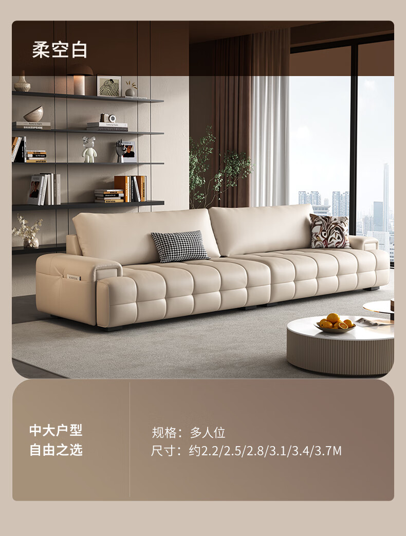 顾家家居(KUKA)劳伦斯沙发头层牛皮1383【奢华版】云柔亲肤皮骑士黑3.4m四人位
