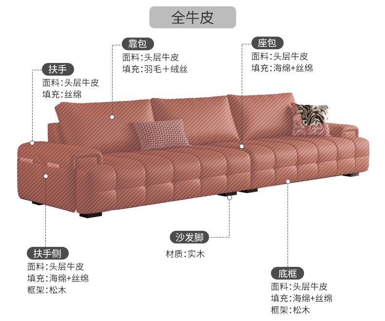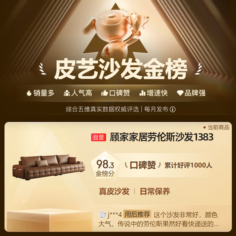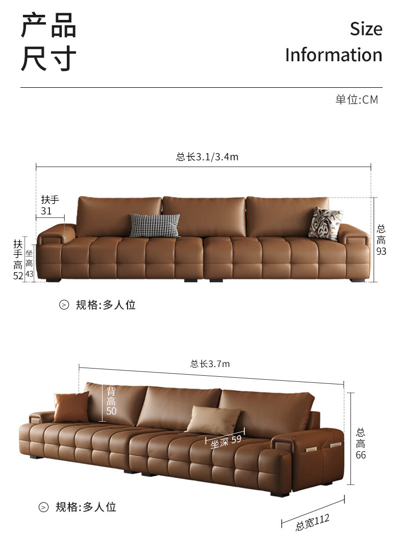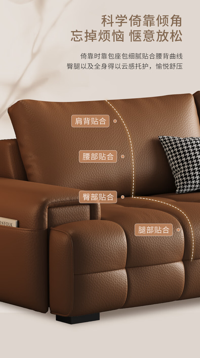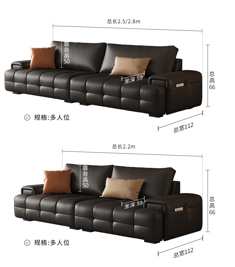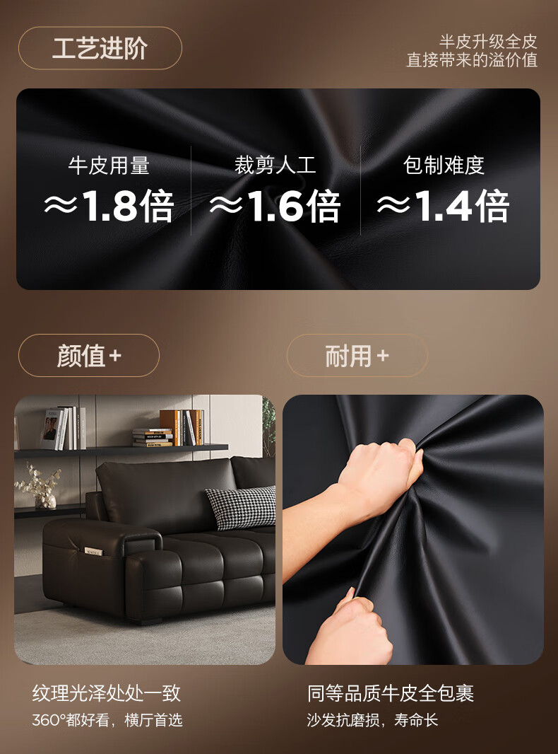 顾家家居(KUKA)劳伦斯沙发头层牛皮1383【奢华版】云柔亲肤皮骑士黑3.4m四人位