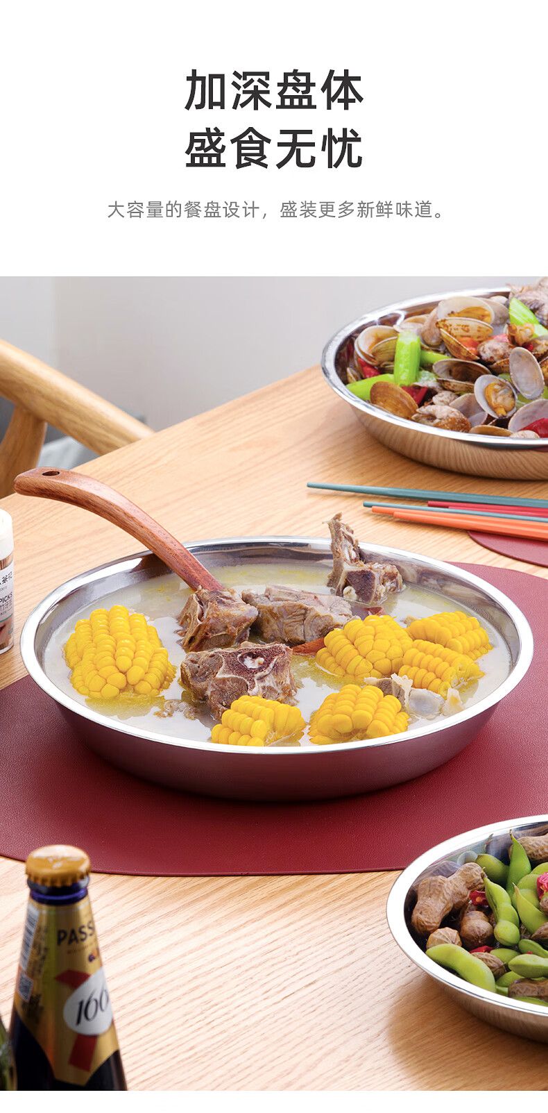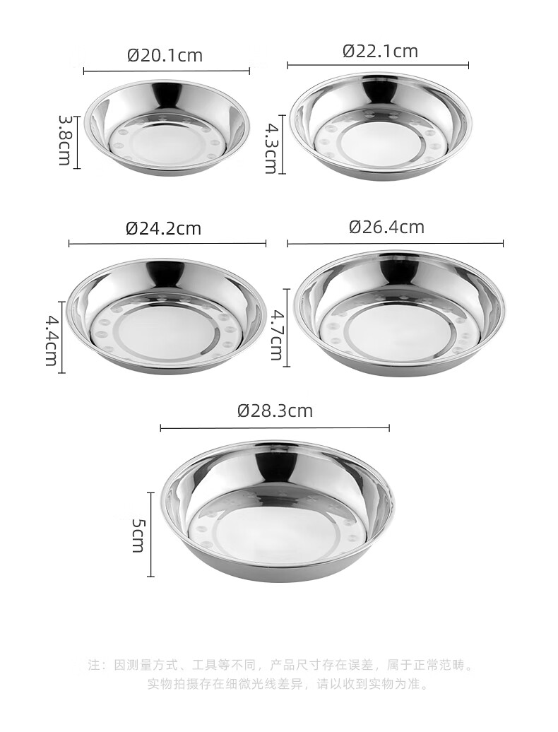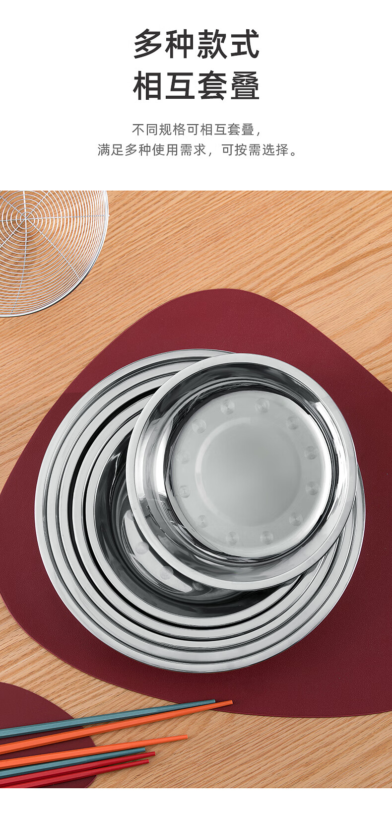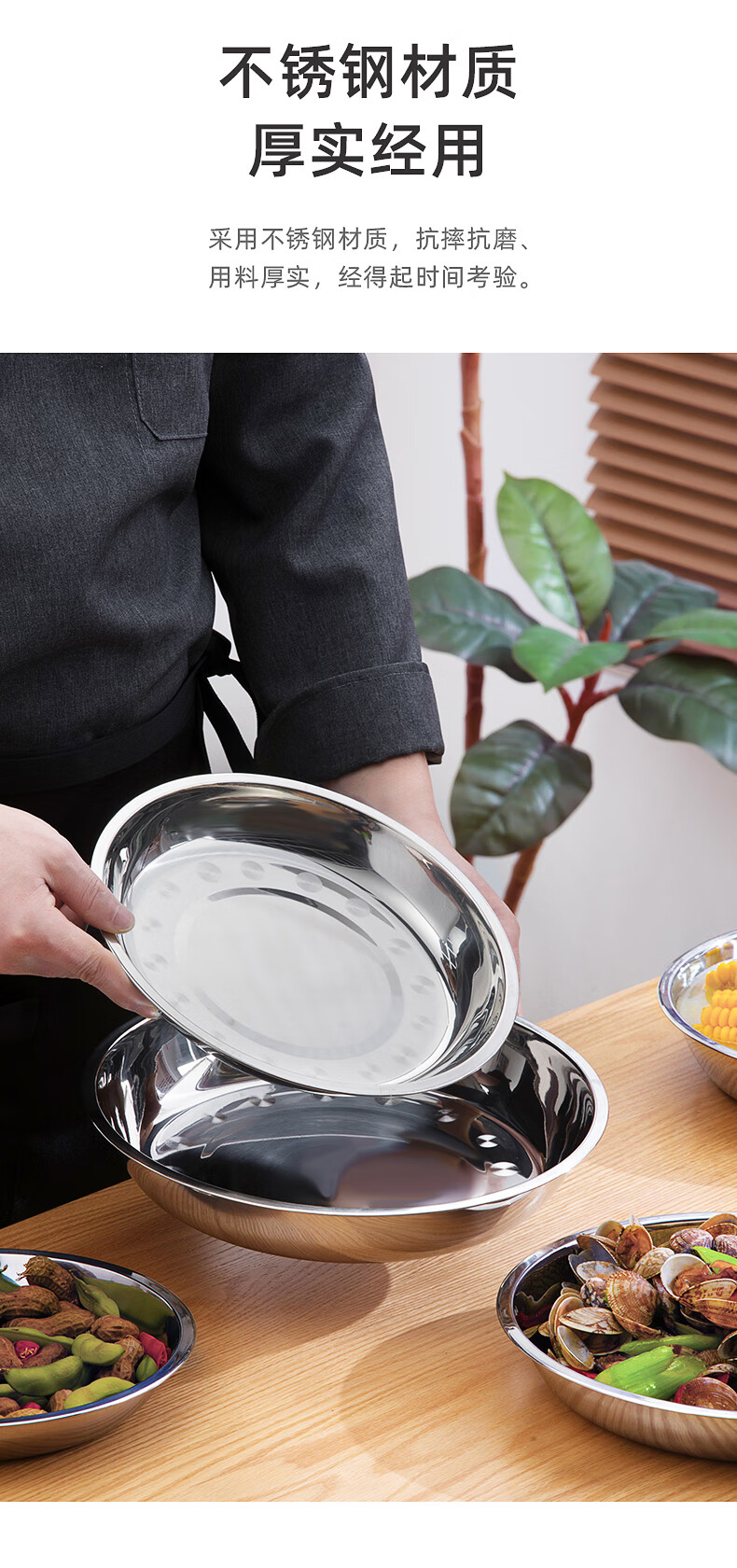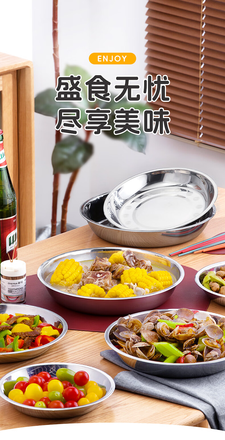 茶花不锈钢盘大圆盘子家用圆形托盘浅盘蒸盘铁菜盘碟子型装菜汤盘 【奥氏体不锈钢餐盘18】实际直径20cm