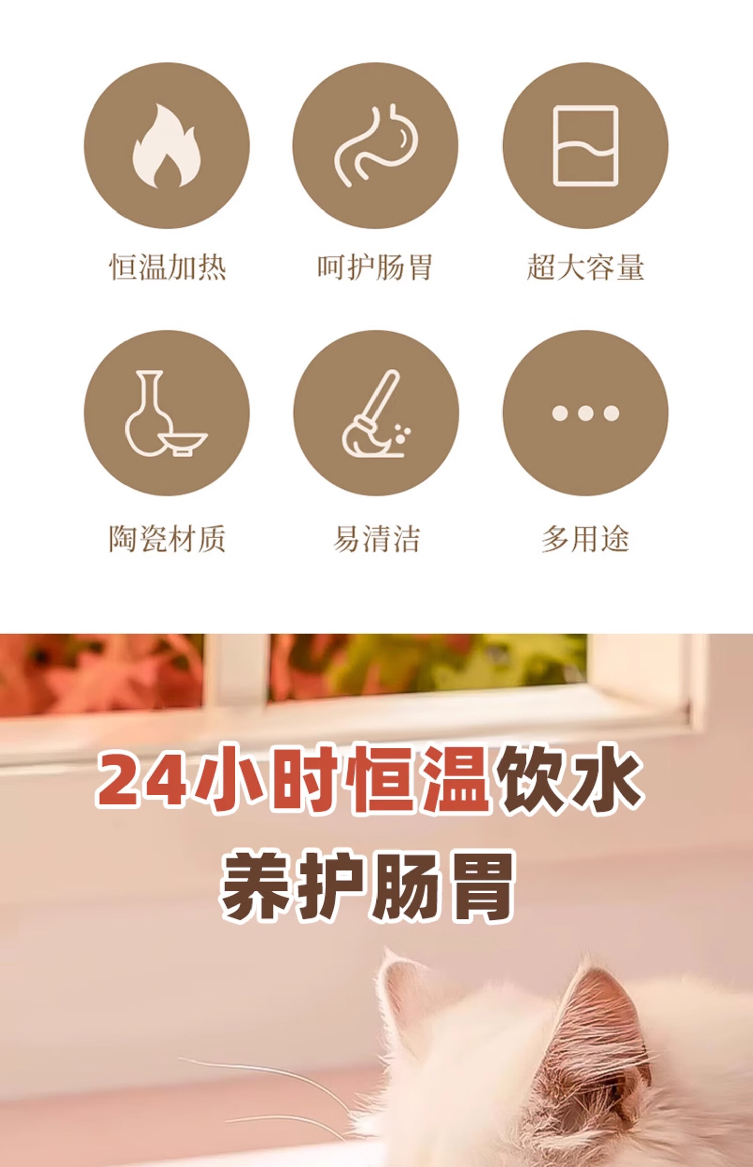 宠街坊猫咪恒温水碗陶瓷碗饮水机酸奶机宠物加热保温猫盆狗碗喂水器