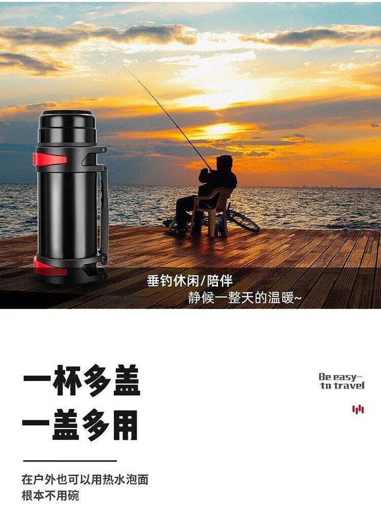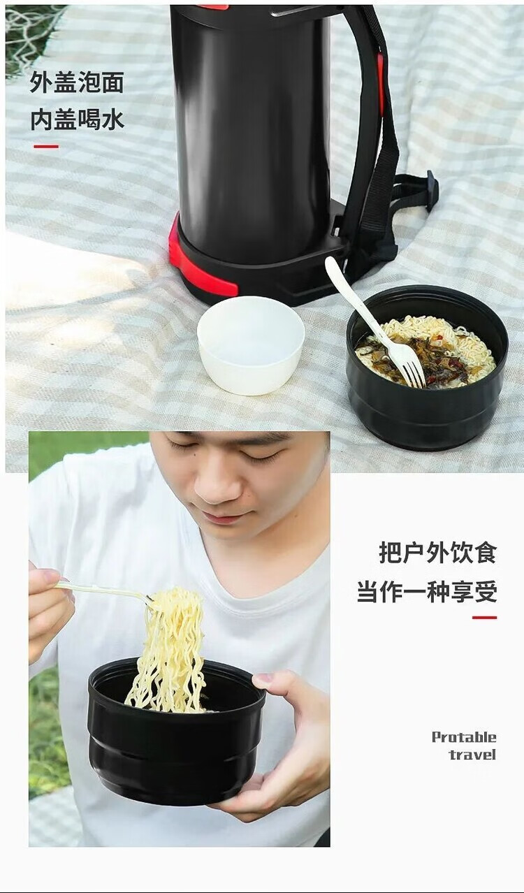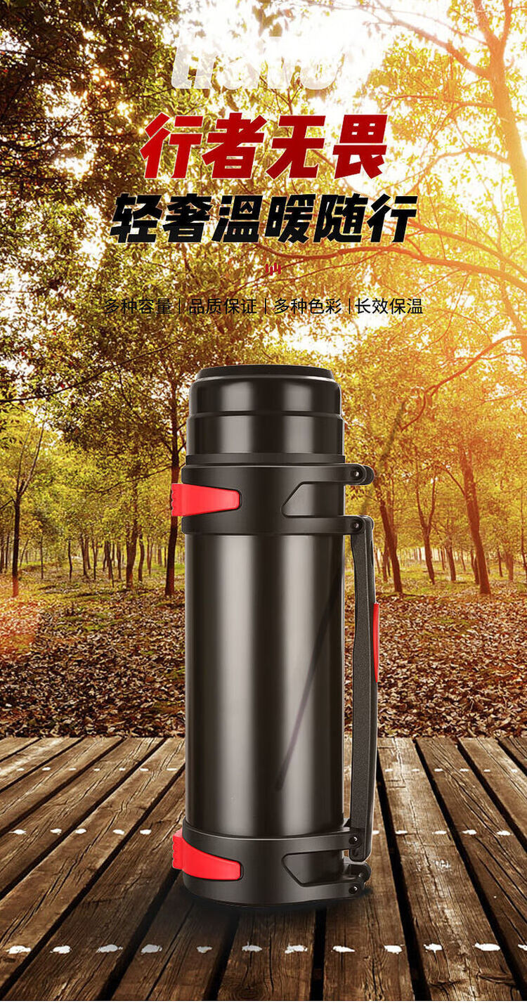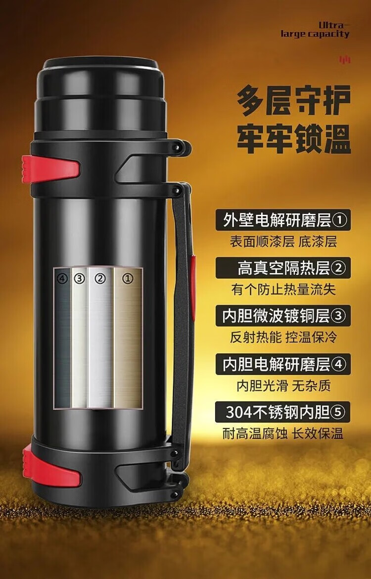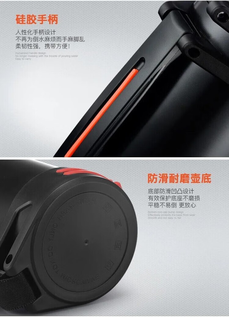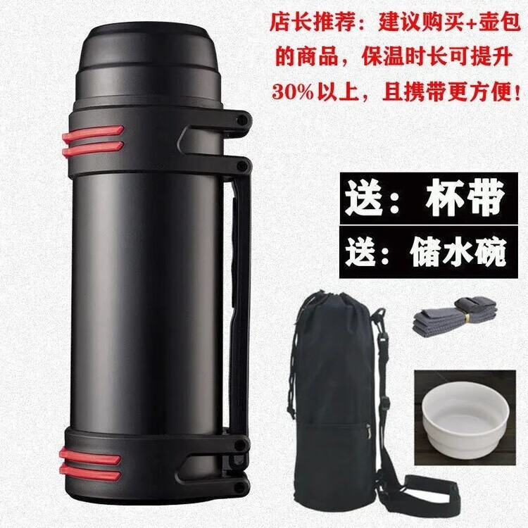 DEATKN304不锈钢保温壶户外保温杯大容量男水壶热水瓶车载旅行壶 黑色 送背带储水碗+壶包【加厚内胆】 1ml 1200毫升(2斤水)