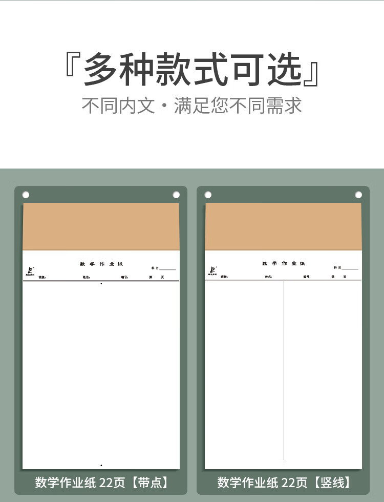 多利博士3本16k22张数学作业纸(中竖线)草稿纸数学稿纸标准加厚小学生初中高中练习纸笔记本【爆款热卖】