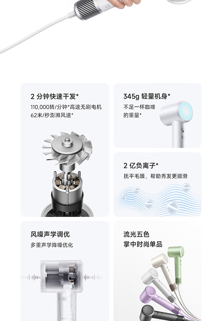 米家高速吹风机H501小米官方旗舰店负离子护发吹风筒 国家补贴家用电吹风送女友生日礼物推荐 森野绿