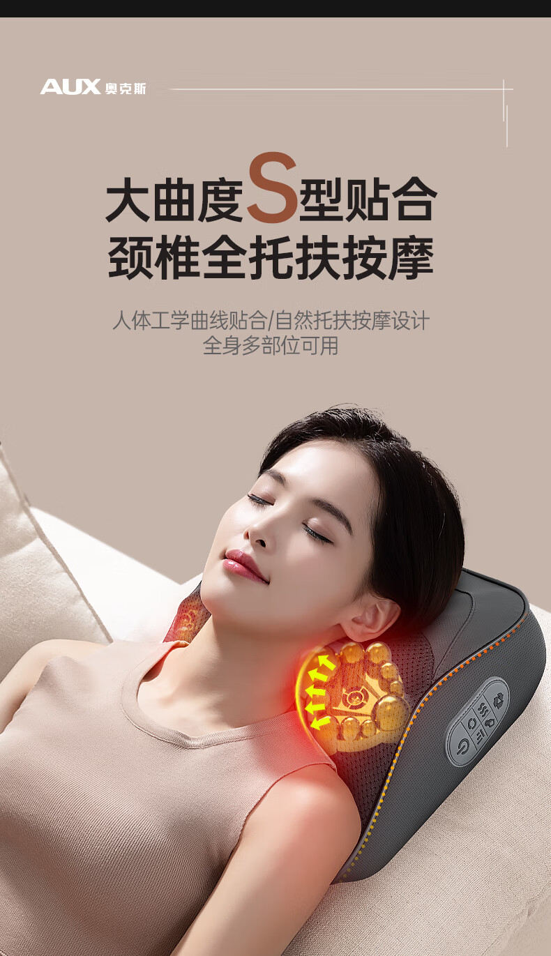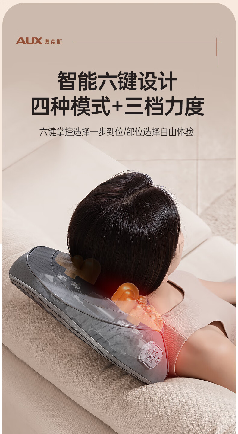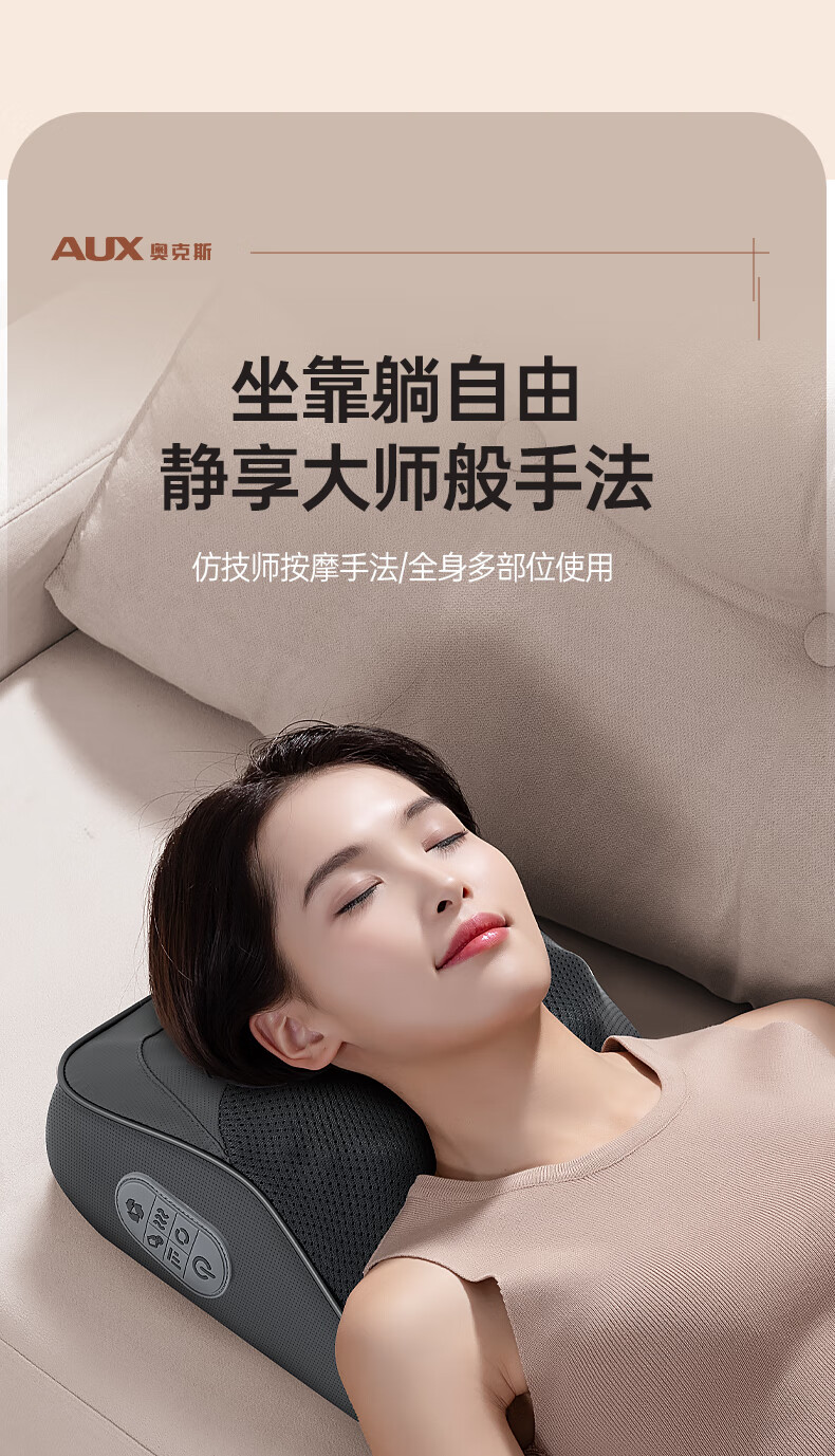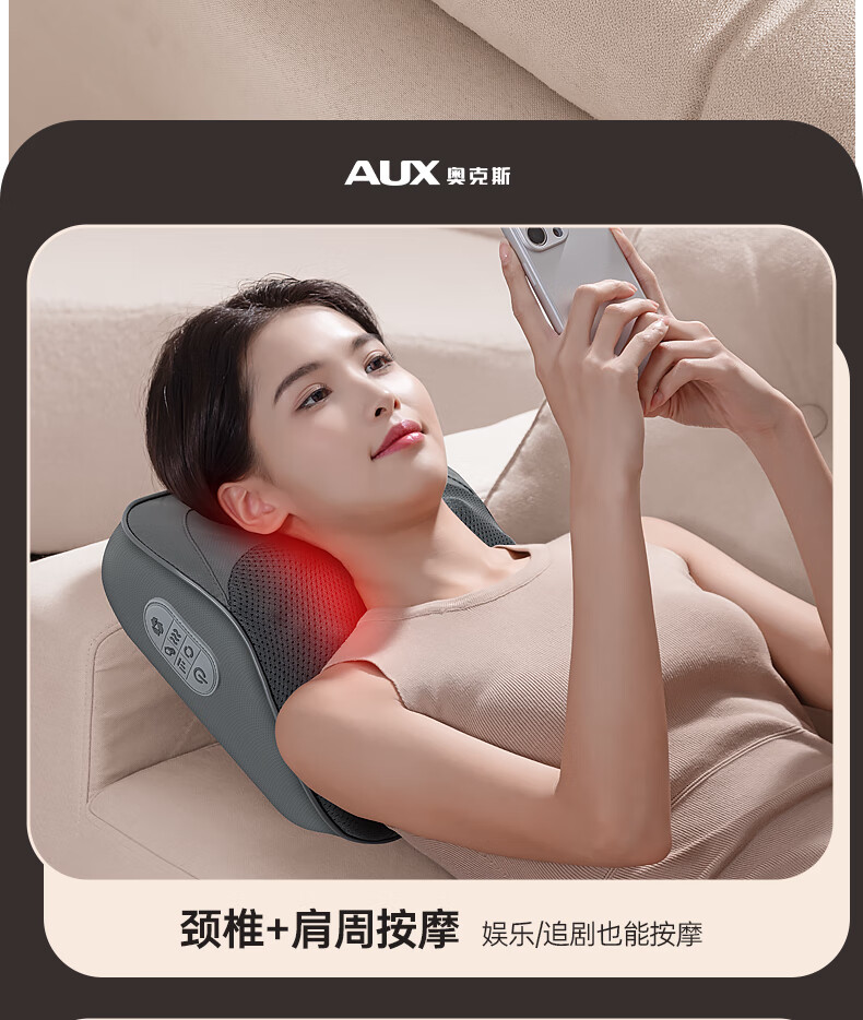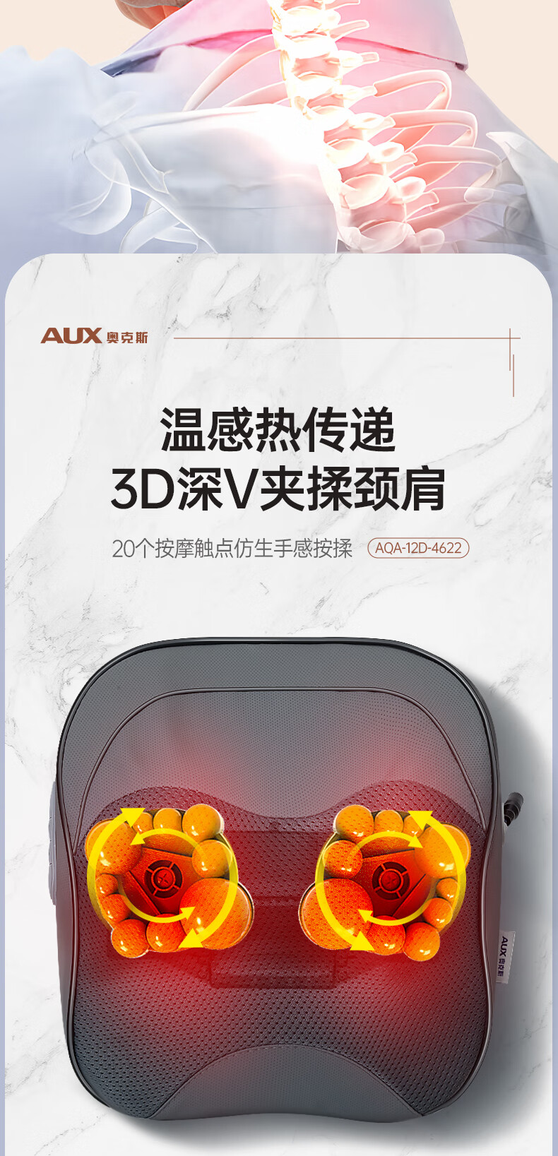 奥克斯颈椎按摩器腰部按摩仪按摩枕头颈部肩颈腰背部按摩器靠垫脖子腿全身仪器年会送妈妈生日礼物女男 顶配灰色【全身使用】送爸妈长辈男女朋友+3D按摩
