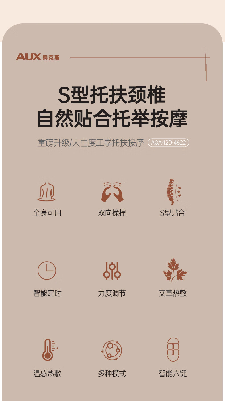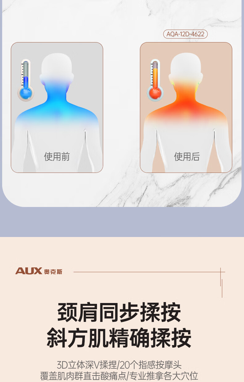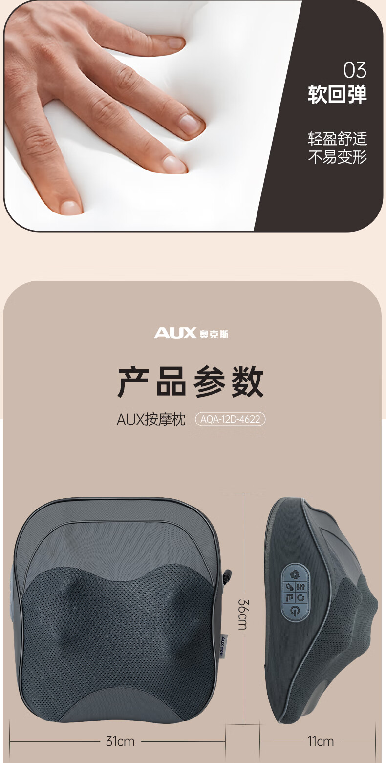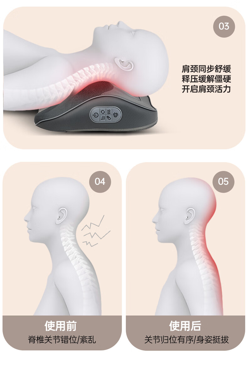 奥克斯颈椎按摩器腰部按摩仪按摩枕头颈部肩颈腰背部按摩器靠垫脖子腿全身仪器年会送妈妈生日礼物女男 顶配灰色【全身使用】送爸妈长辈男女朋友+3D按摩