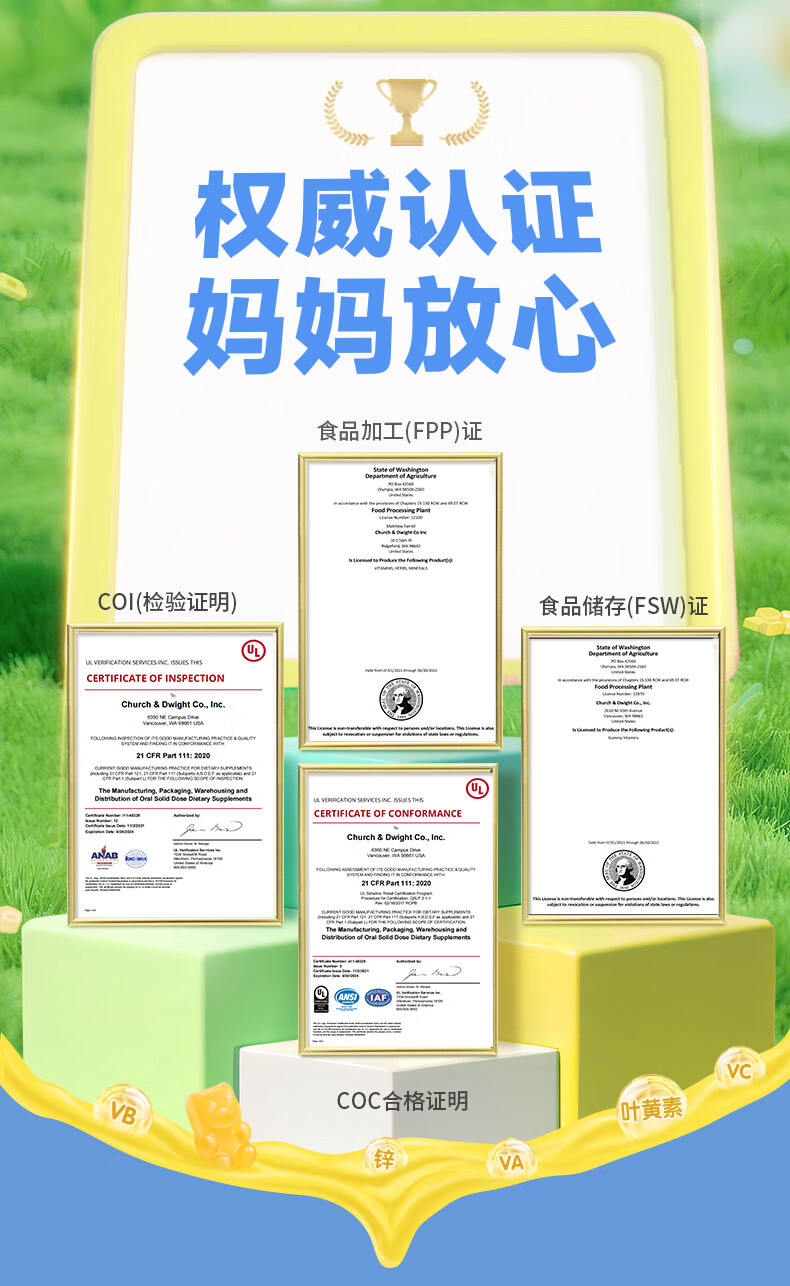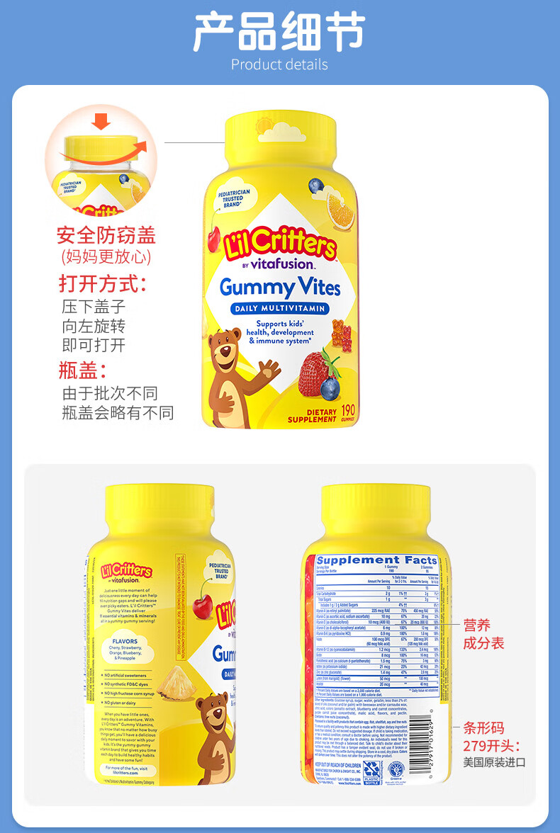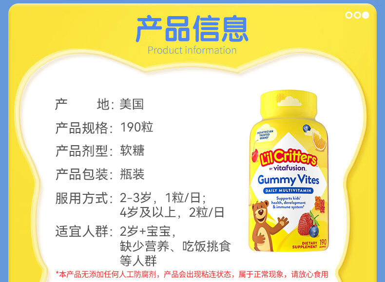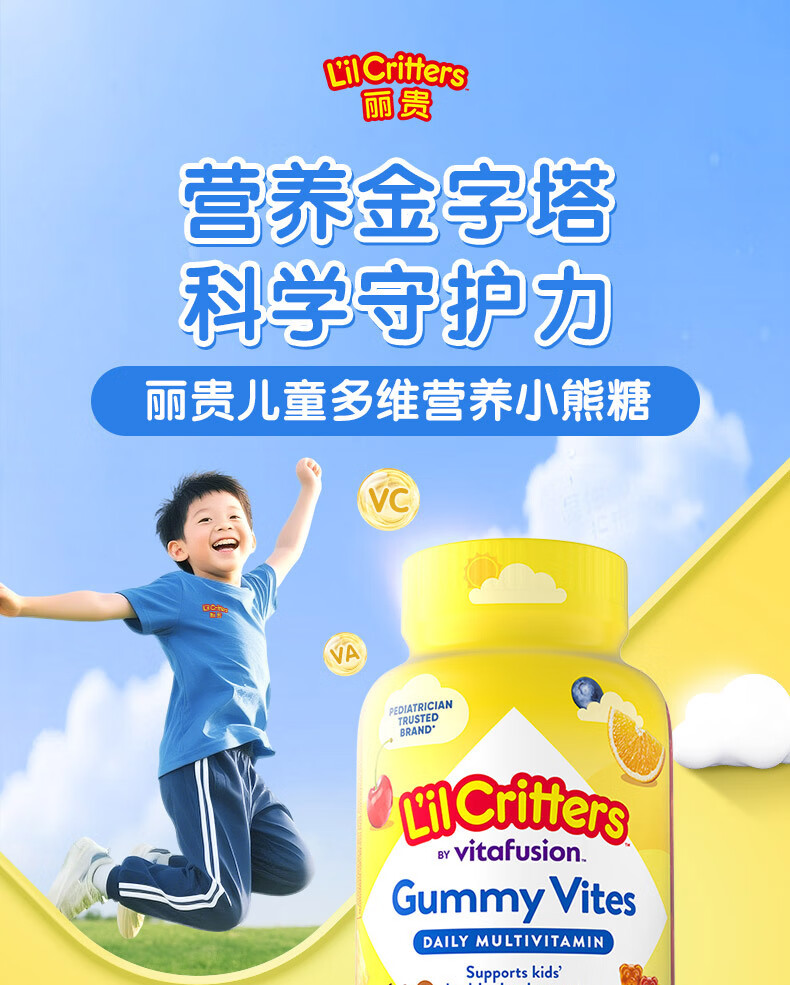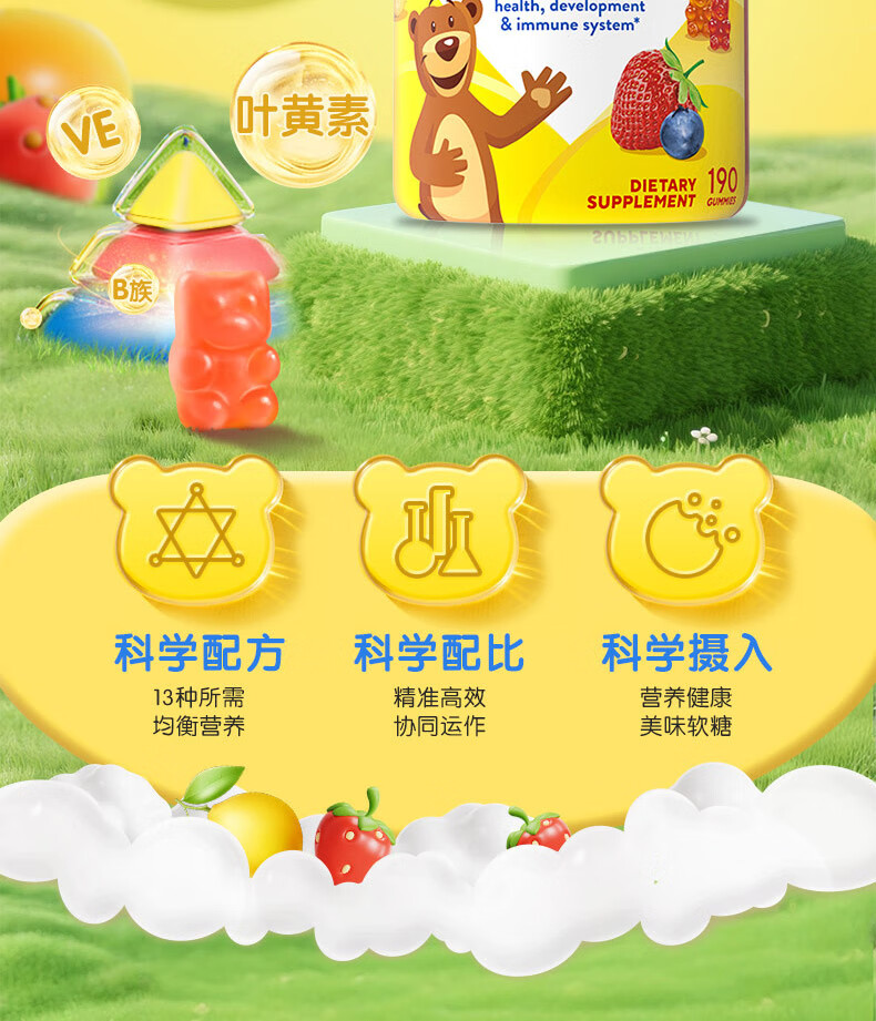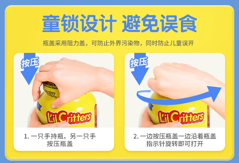 L'il critters小熊糖美国进口复合维生素叶黄素儿童宝宝补锌营养软糖 190粒*2瓶