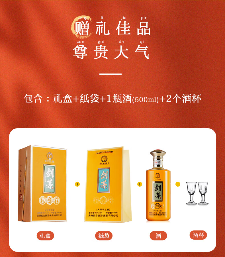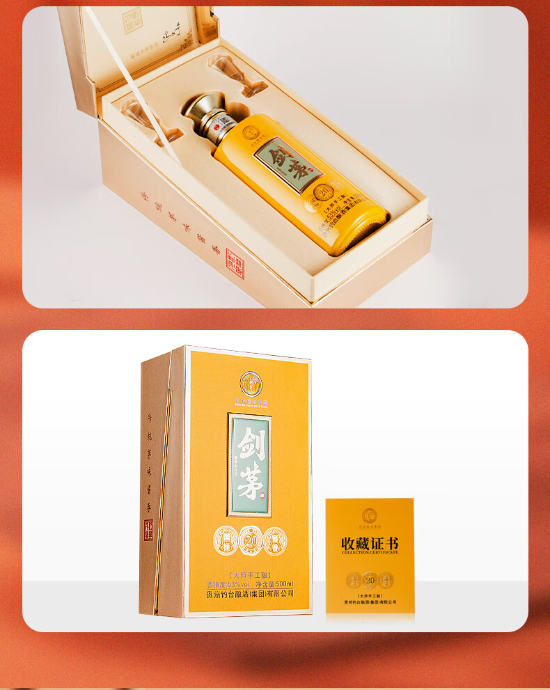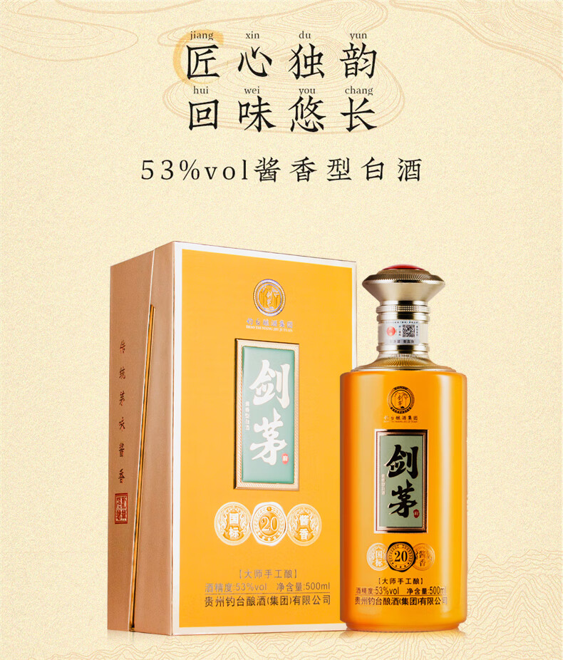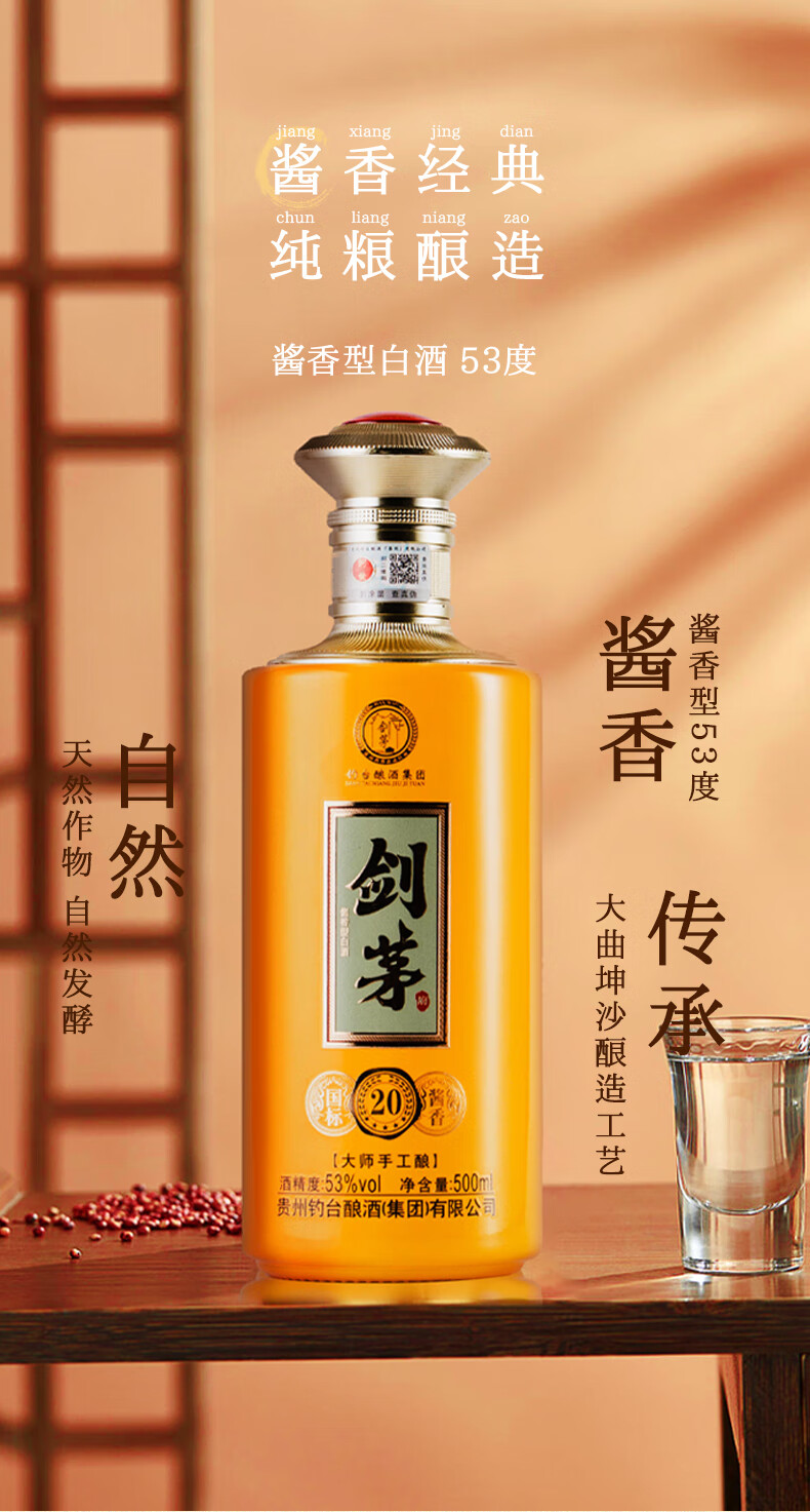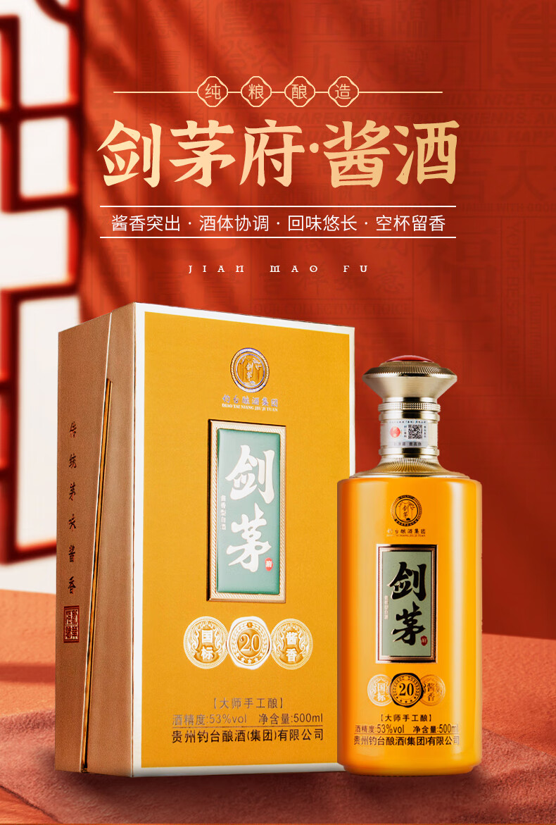 剑茅府国标酱香20 钓台集团出品酿酒 酱香型白酒 53%vol 500mL 1瓶 礼盒装