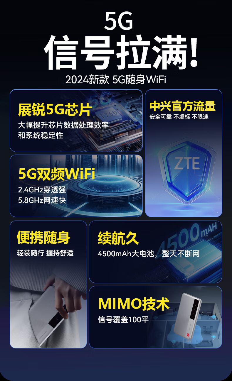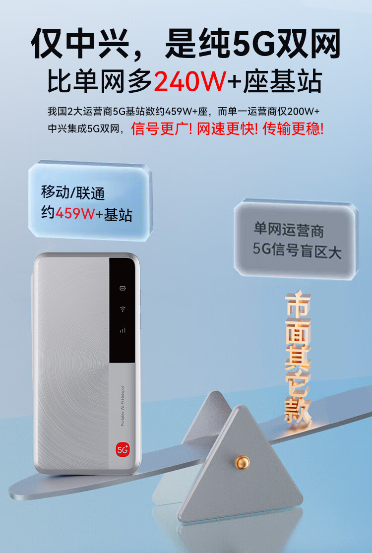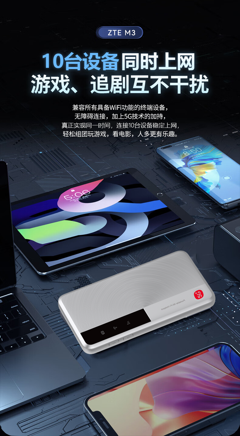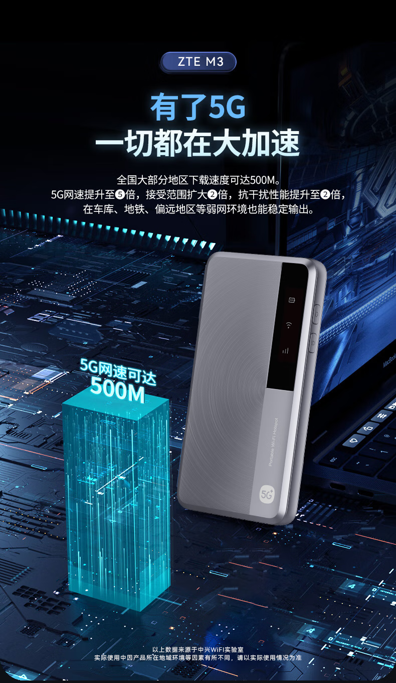 中兴流量大师5G 2025款新品M3随身wifi双网通免插卡移动无线上网卡车载笔记本电脑热点无限流量便携式 M3 逸光银【 全程5G不限速 双网切换 】顶配版 5G系列,中兴官方流量 | 网速高达500M