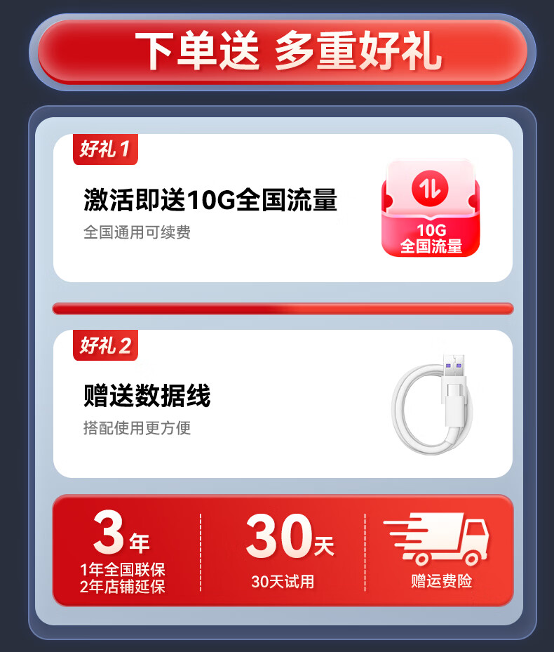 智选2025款免插卡移动随身WlFl5g无限流量全国通用穿墙无线网 WiFi6【荣耀版】提速9999%