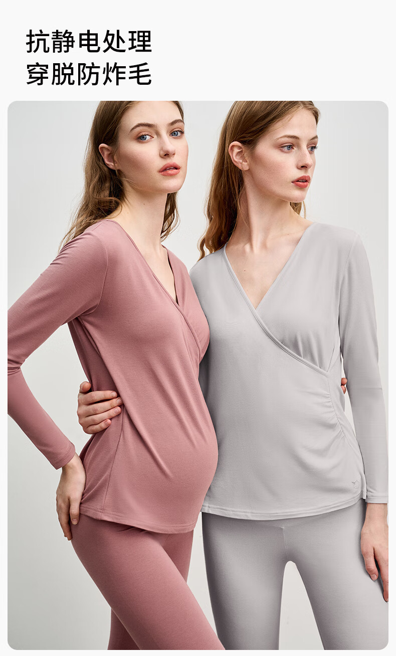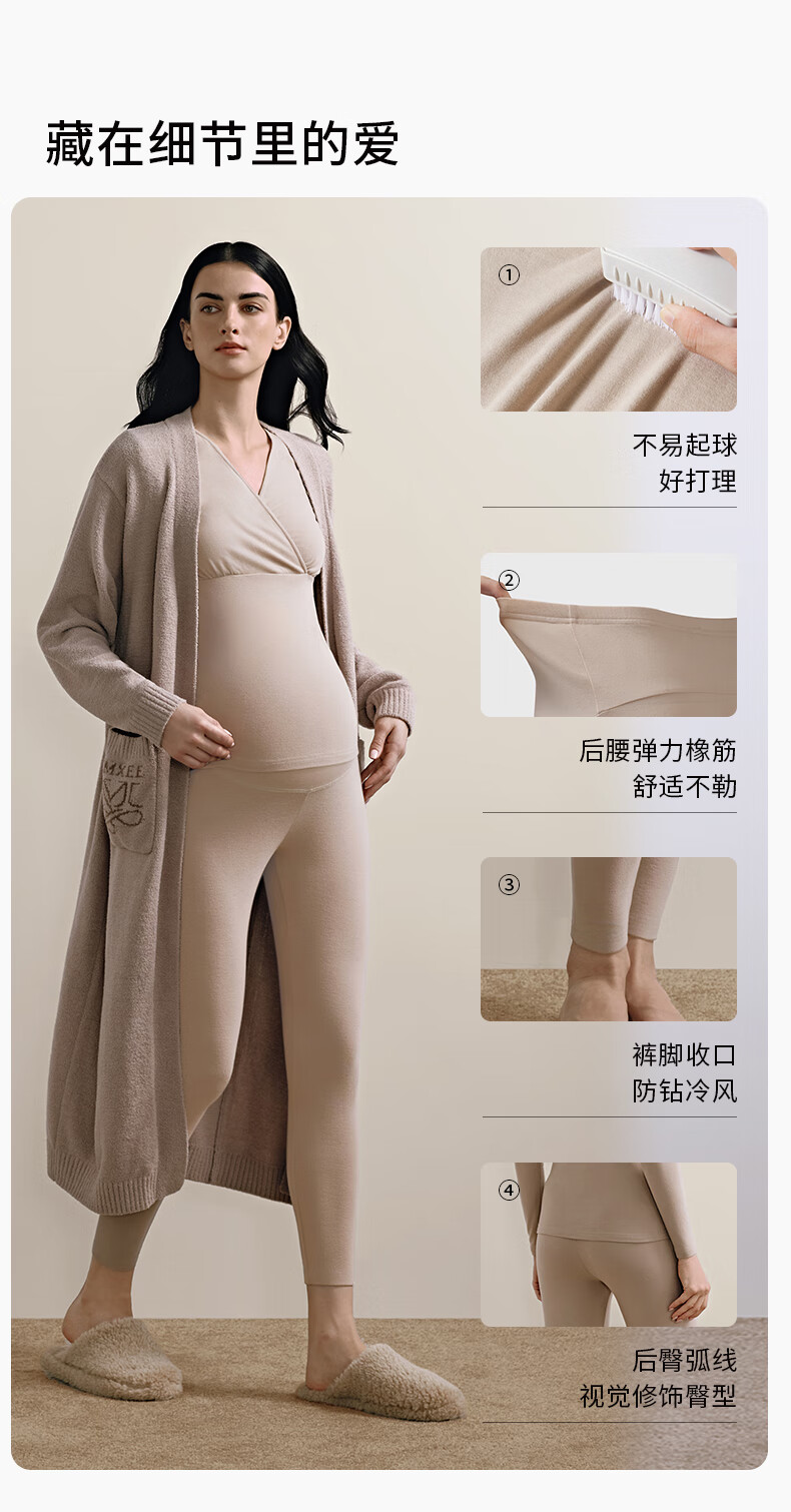 嫚熙(EMXEE)超皮孕妇秋衣秋裤套装秋冬哺乳月子服保暖内衣 燕麦灰【中暖-发热纱】 XL