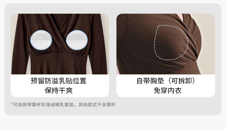 嫚熙(EMXEE)秋冬季小熊半边绒孕妇睡衣哺乳产妇加绒月子服产后家居服套装 经典熊-粉色【小羊绒】 XL