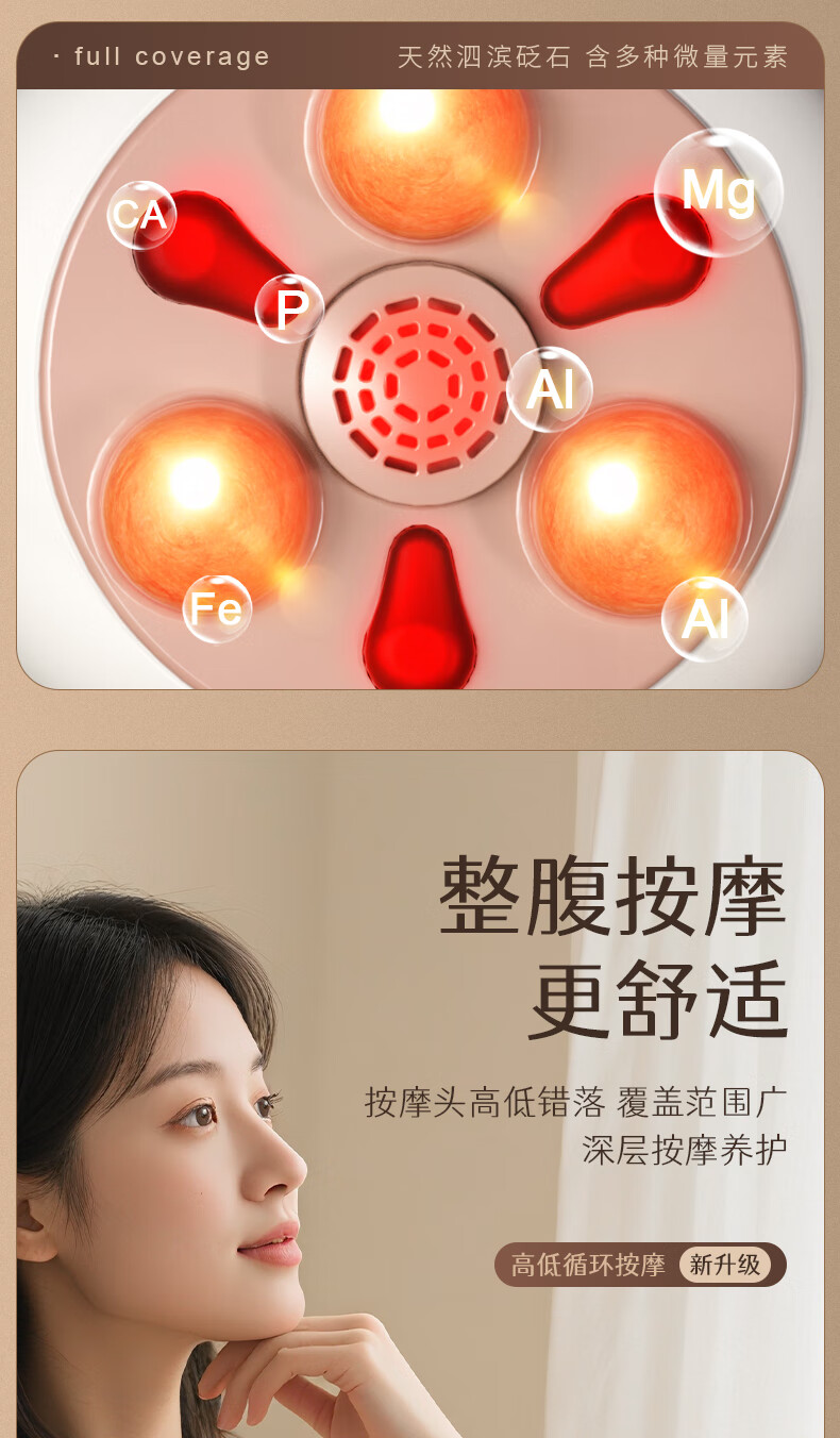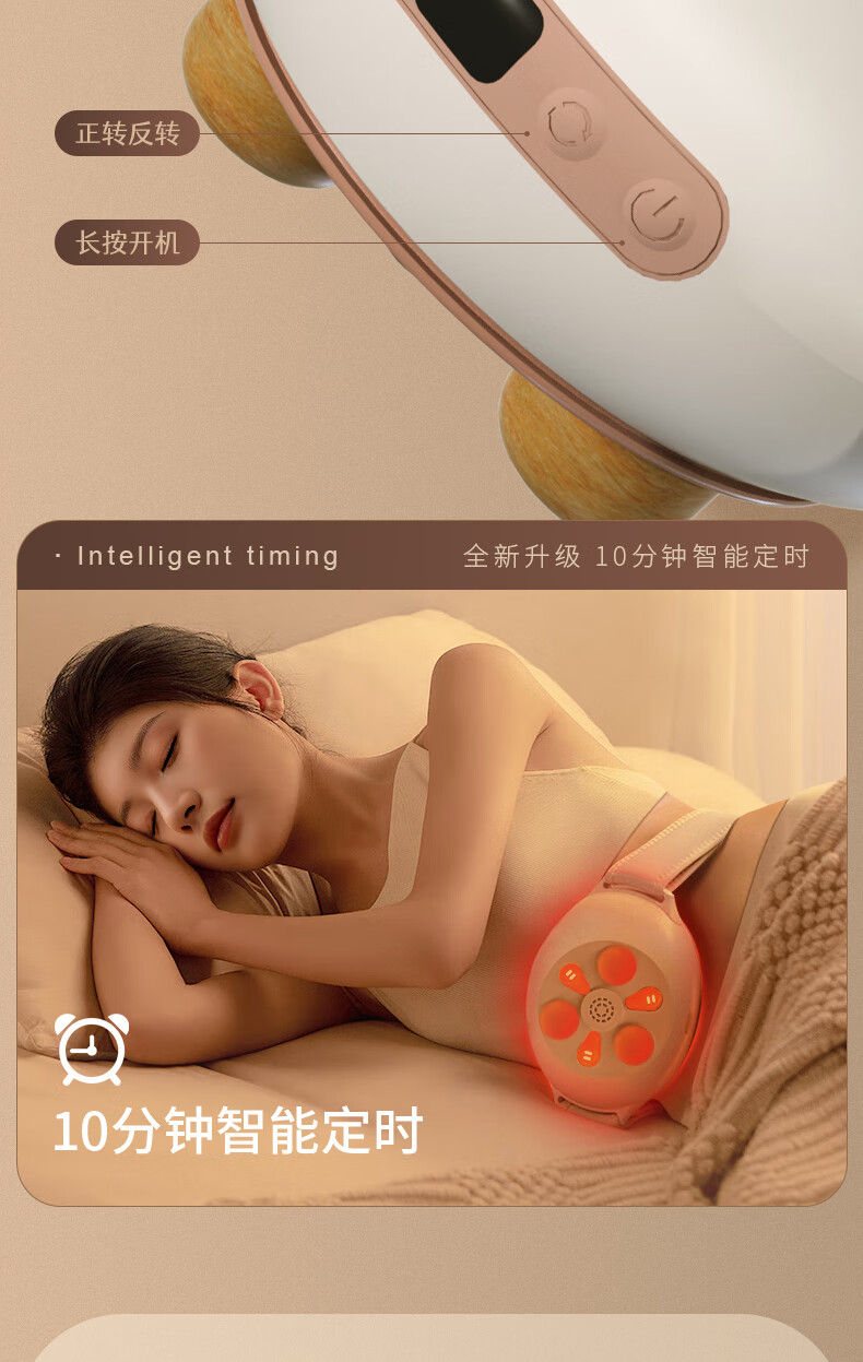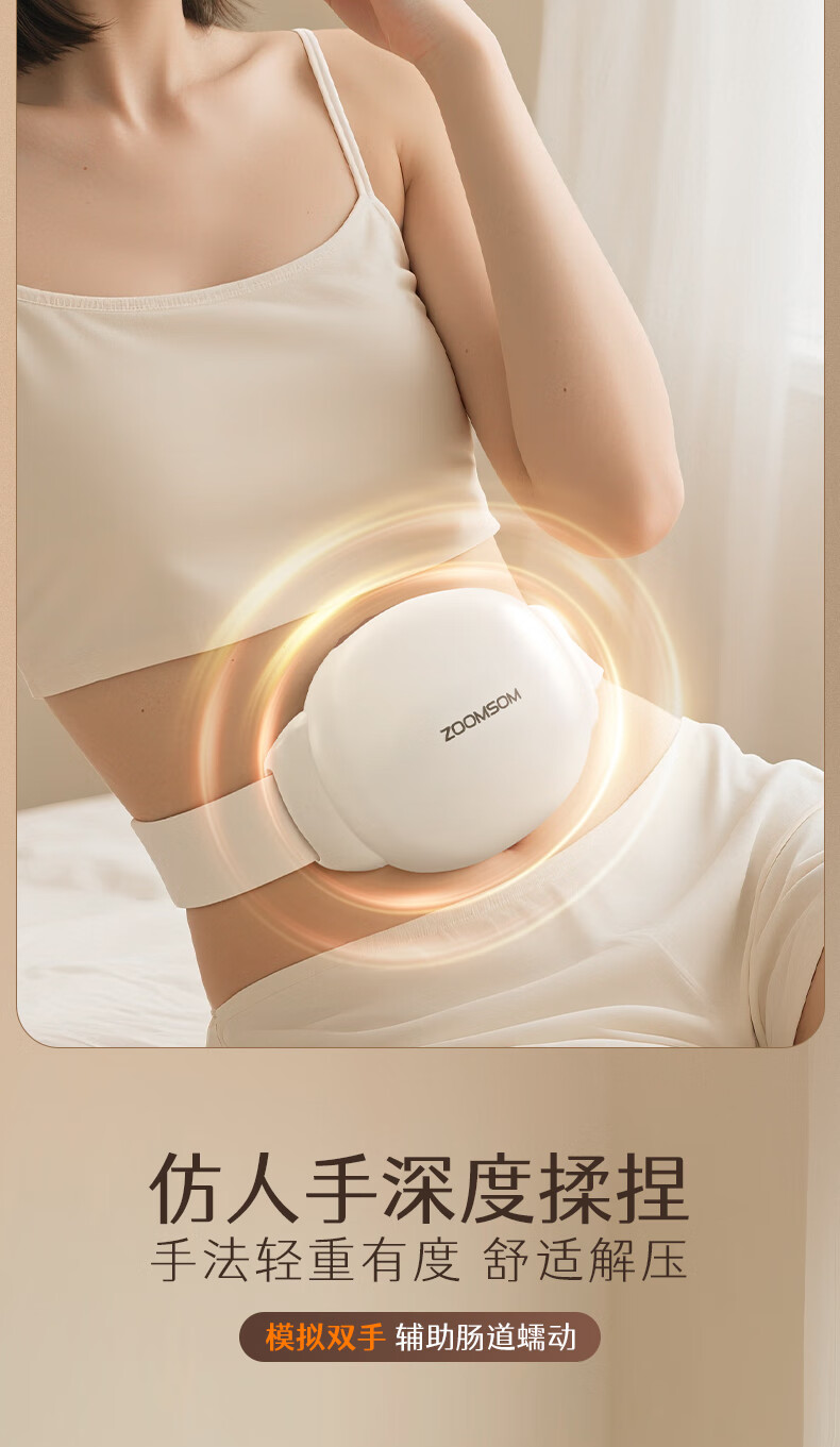 松胜砭石揉腹仪腹部按摩器全自动热敷暖宫腰带按摩促消化家用肚子按摩仪送女生女士母亲节生日礼物 象牙白-顶配【艾草热敷+红光热敷+大直径转盘】
