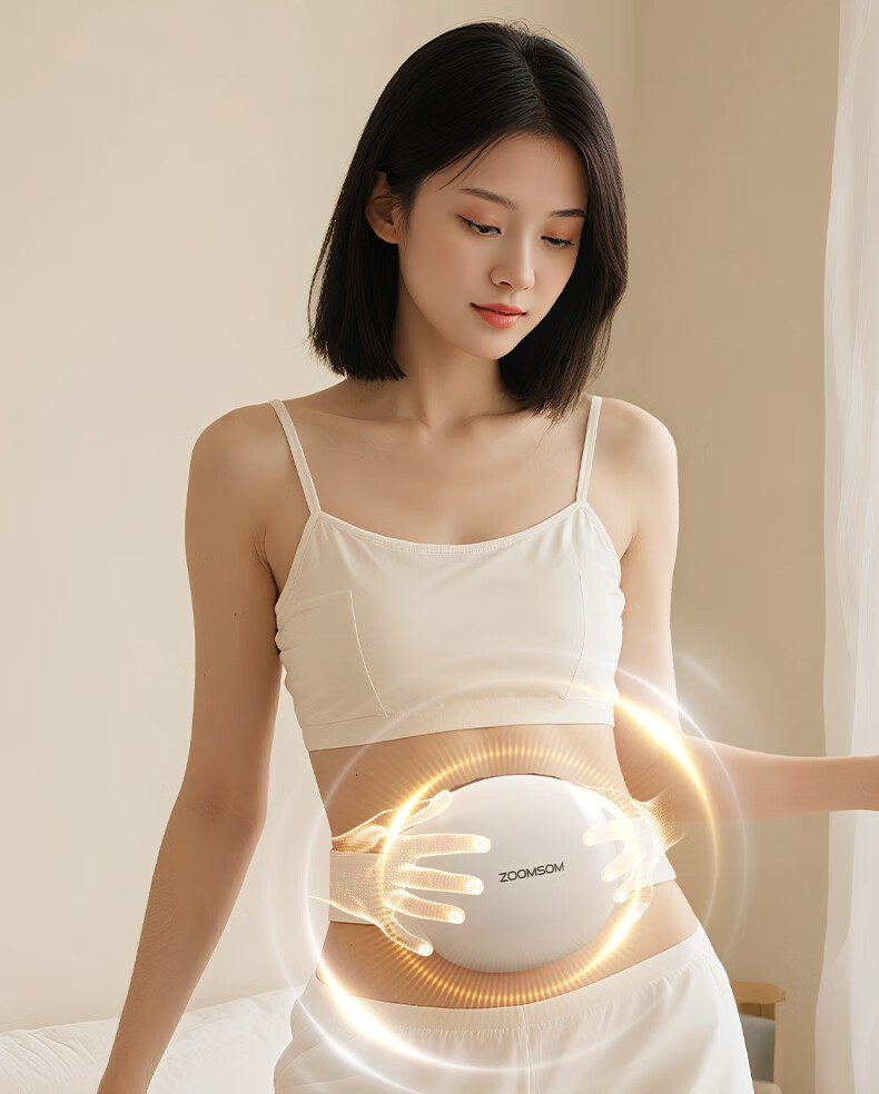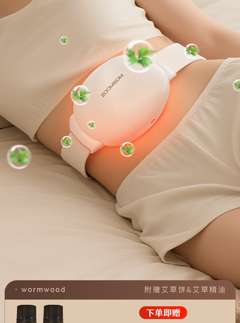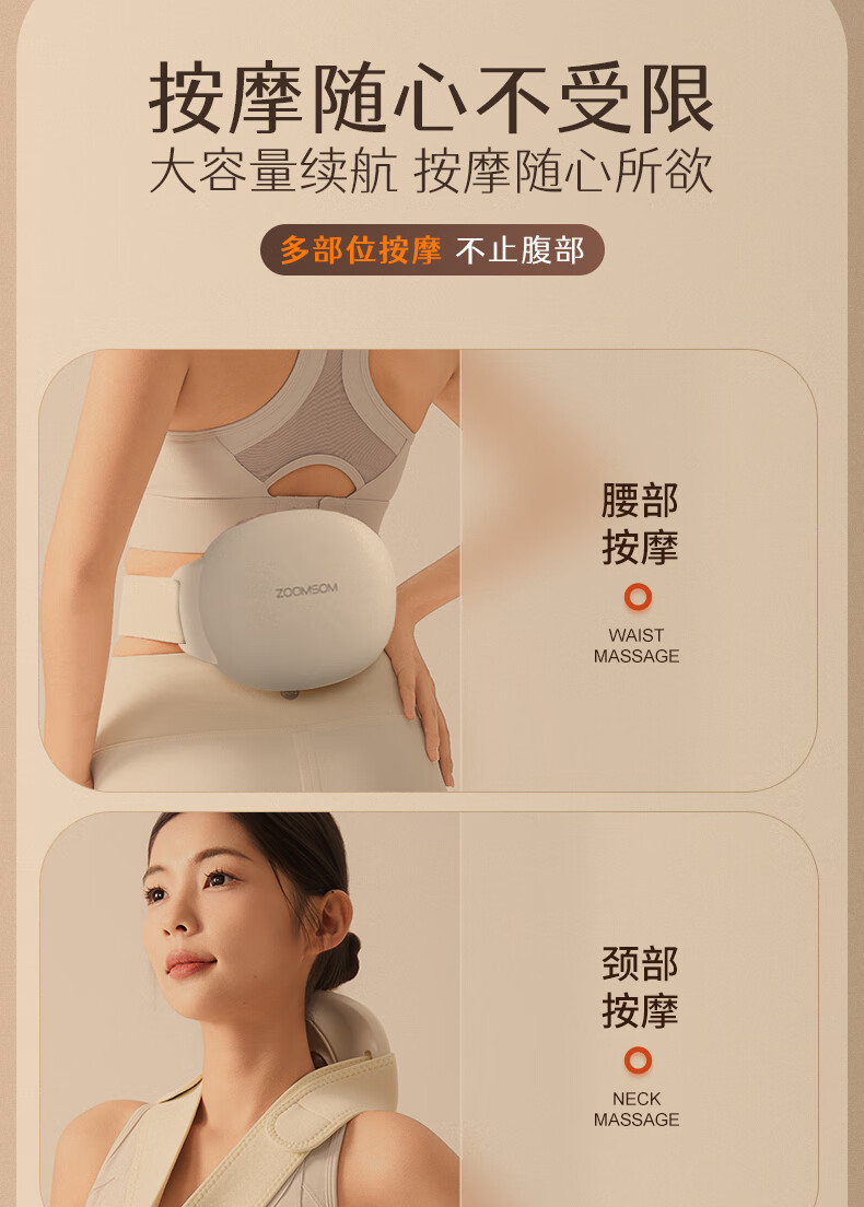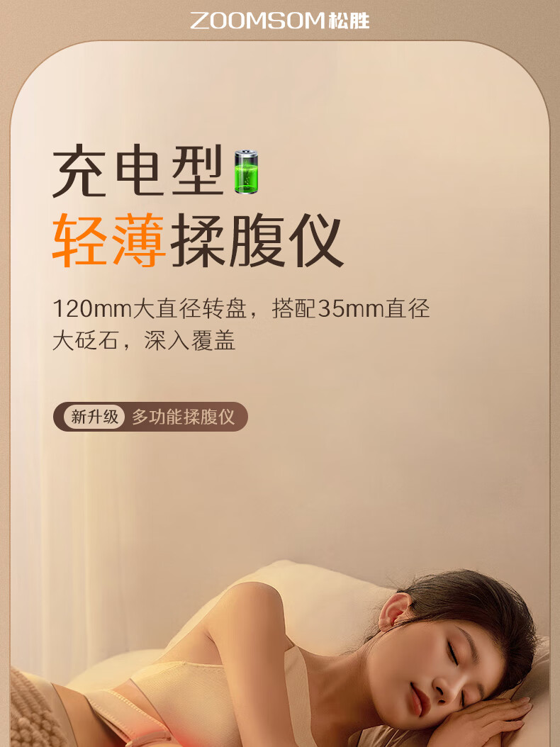 松胜砭石揉腹仪腹部按摩器全自动热敷暖宫腰带按摩促消化家用肚子按摩仪送女生女士母亲节生日礼物 象牙白-顶配【艾草热敷+红光热敷+大直径转盘】