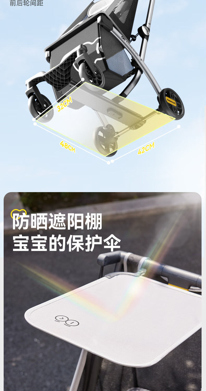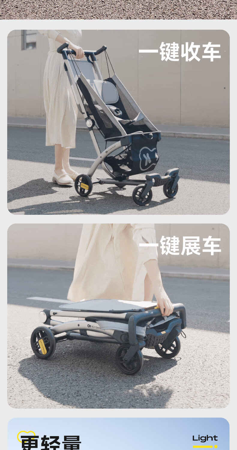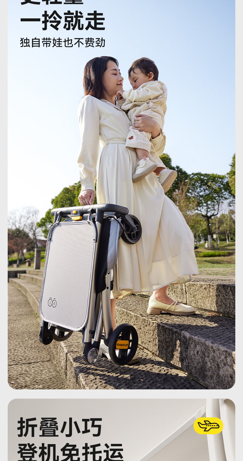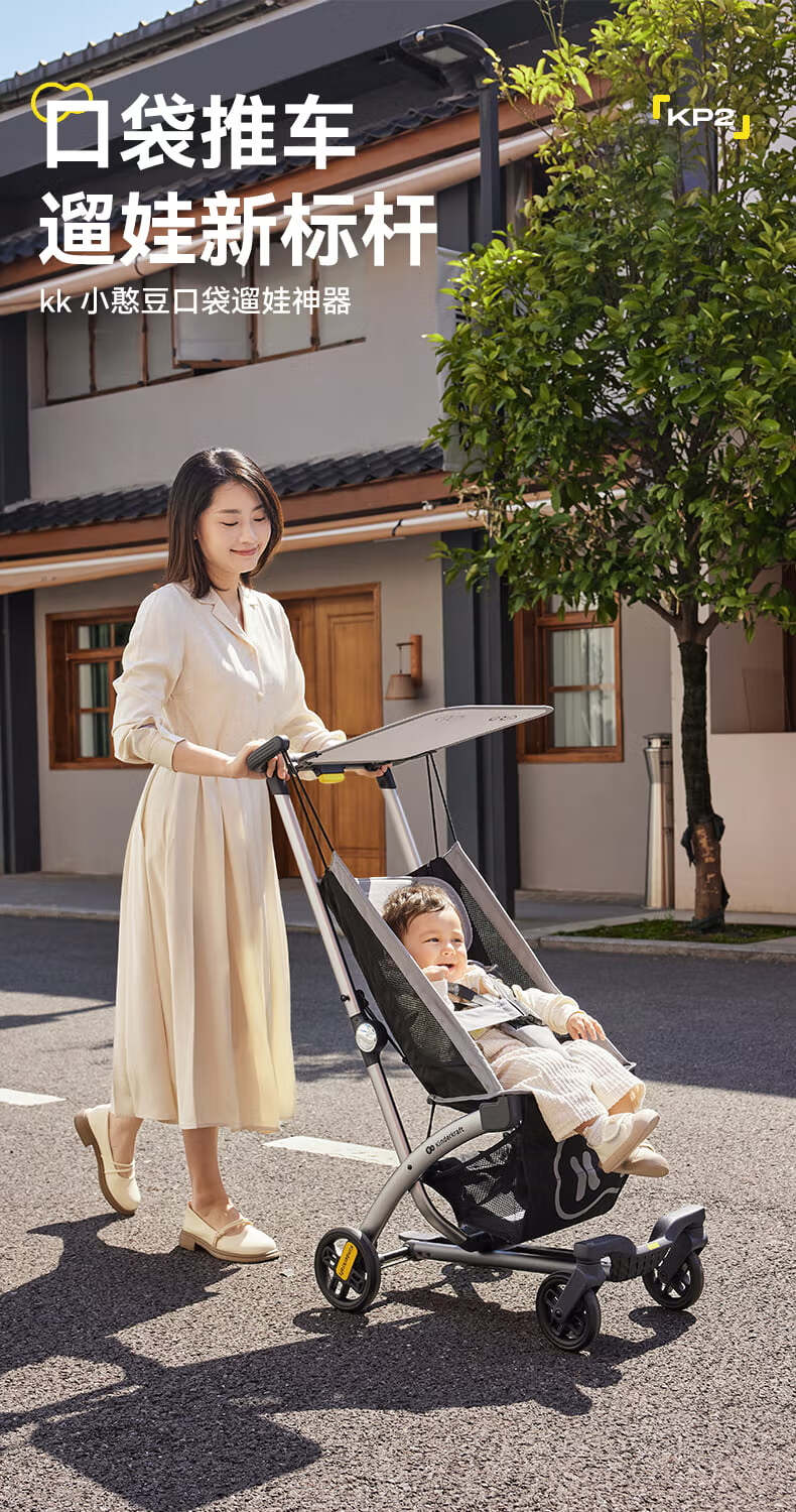 KinderKraftKK口袋推车小憨豆遛娃神器婴儿车轻便推车折叠小巧遛娃车 灰色