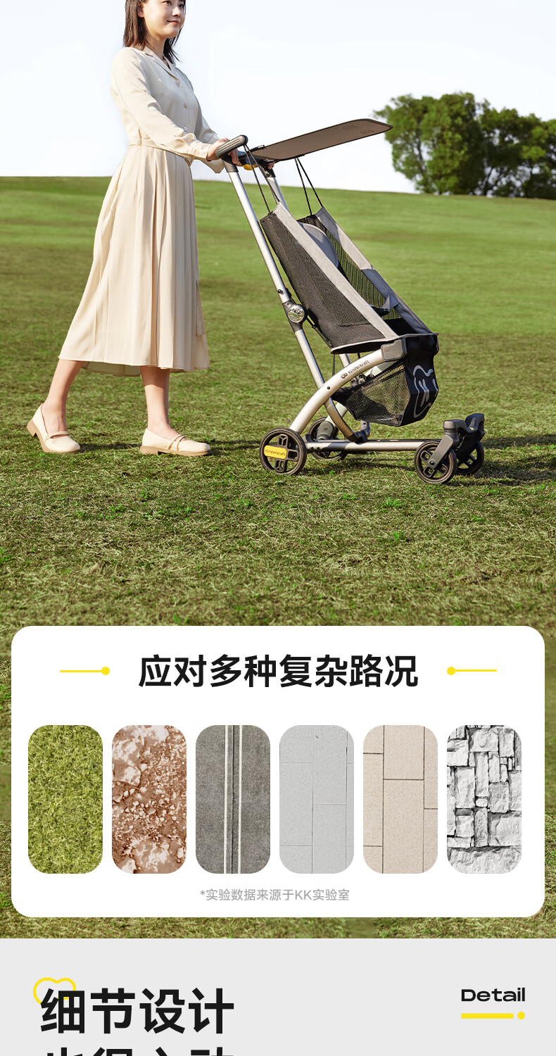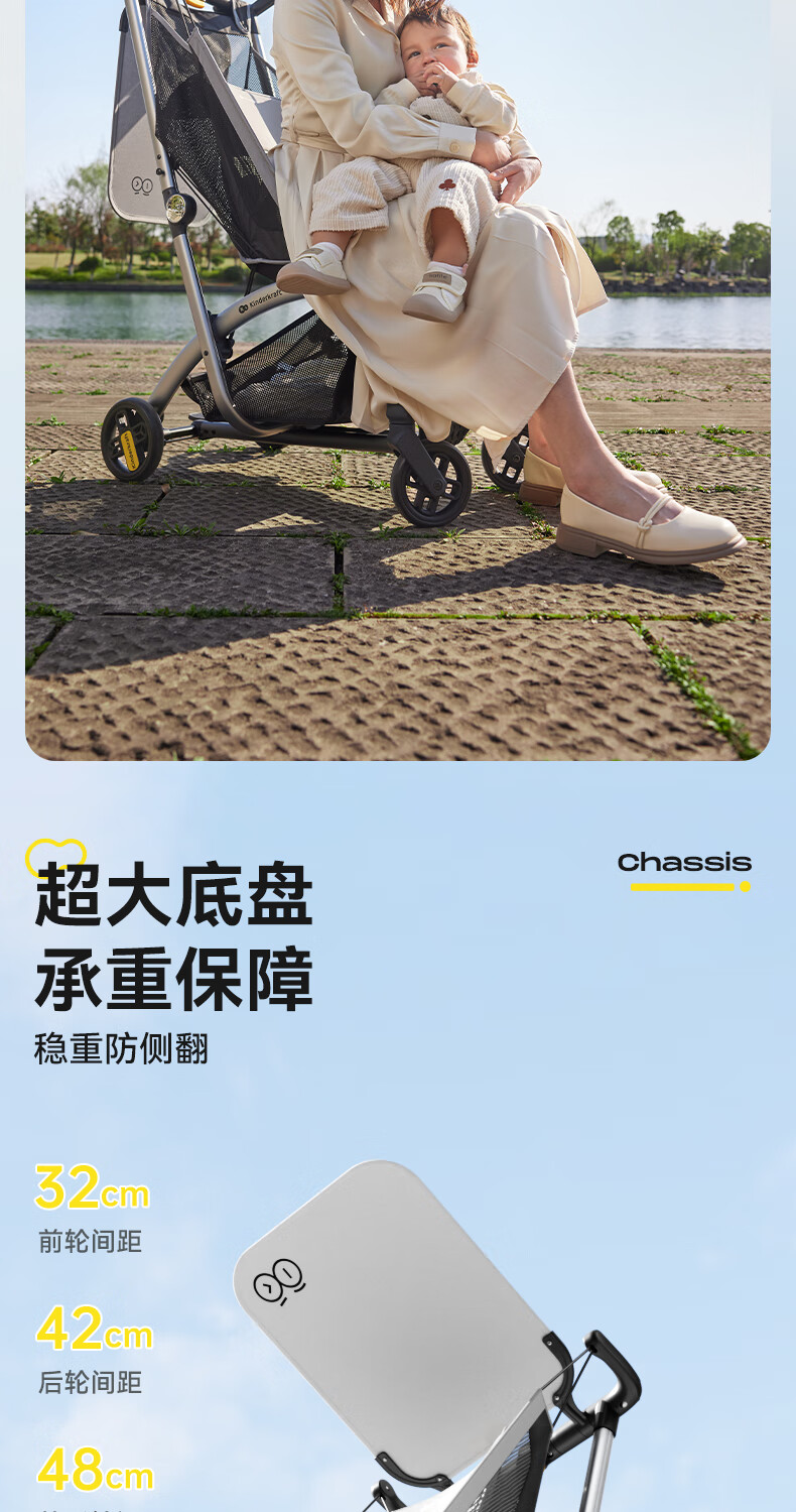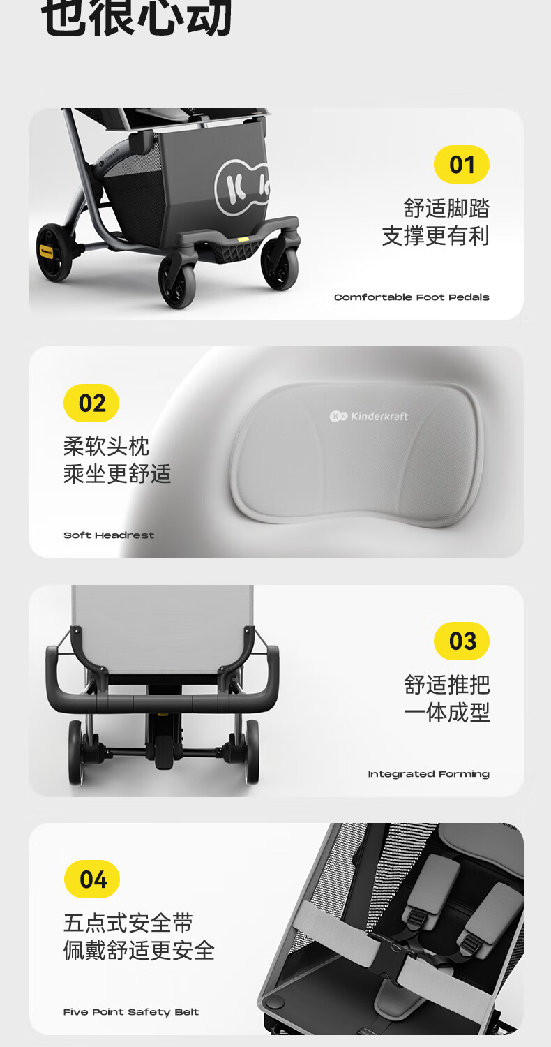 KinderKraftKK口袋推车小憨豆遛娃神器婴儿车轻便推车折叠小巧遛娃车 灰色