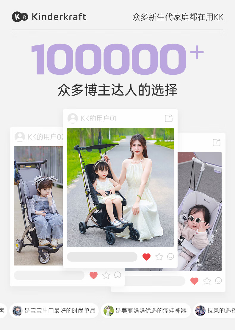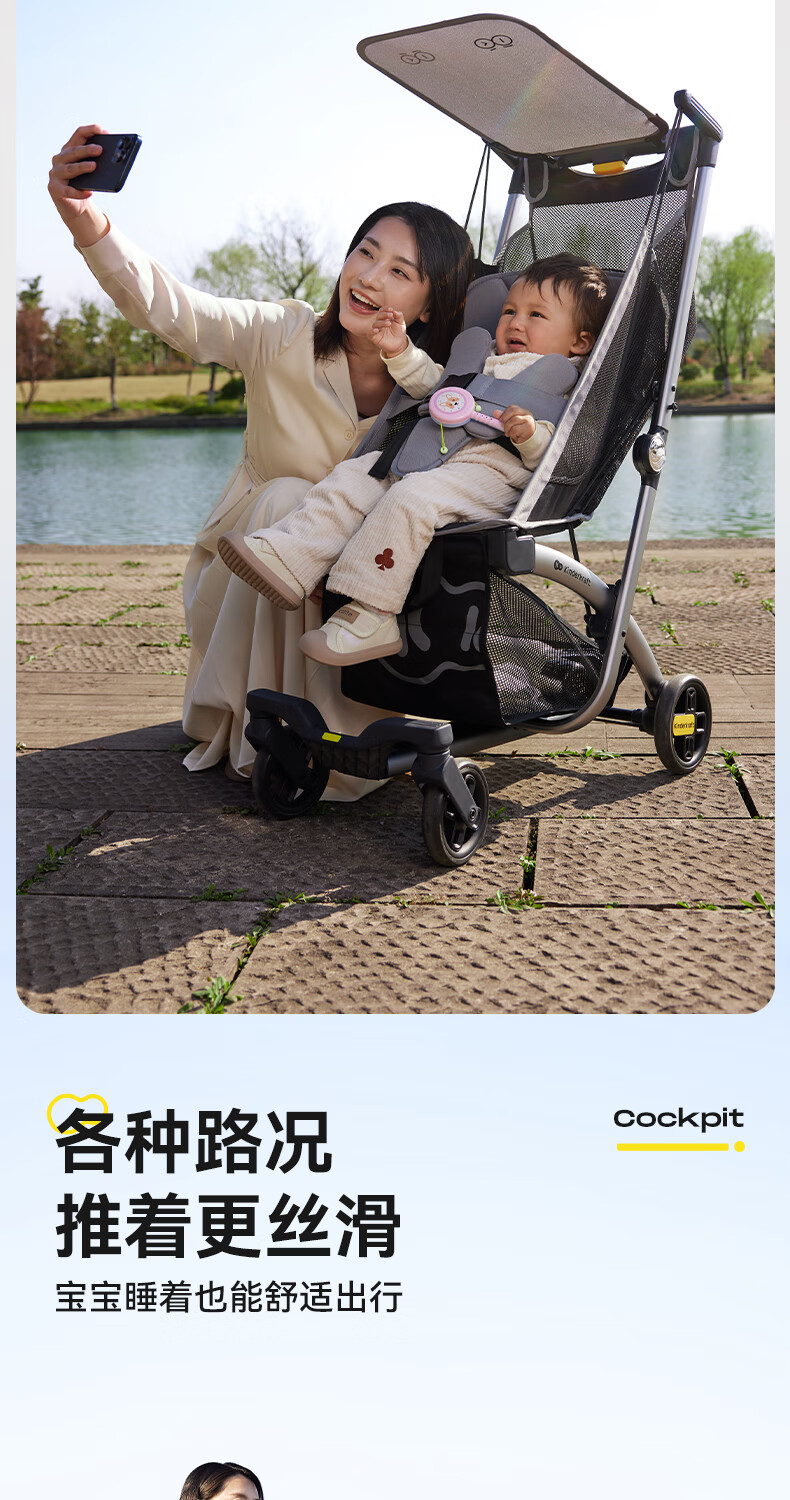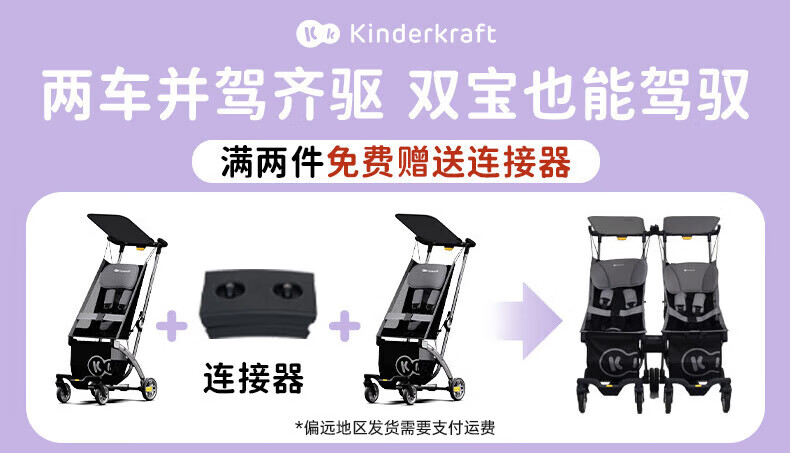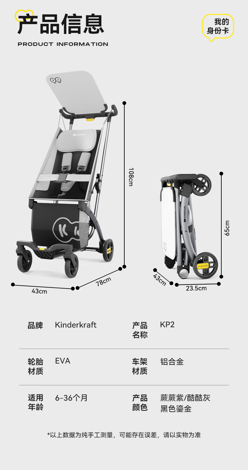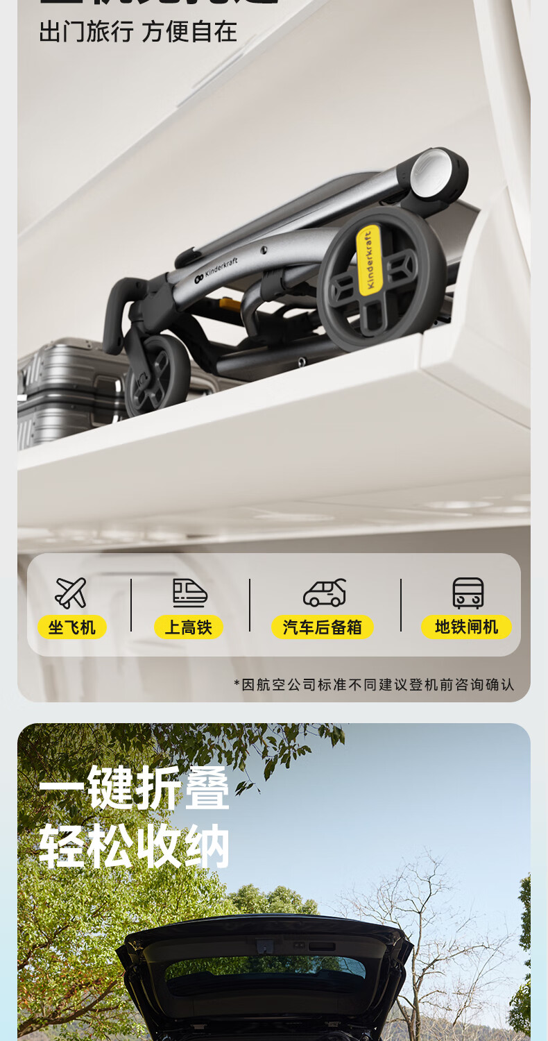KinderKraftKK口袋推车小憨豆遛娃神器婴儿车轻便推车折叠小巧遛娃车 灰色