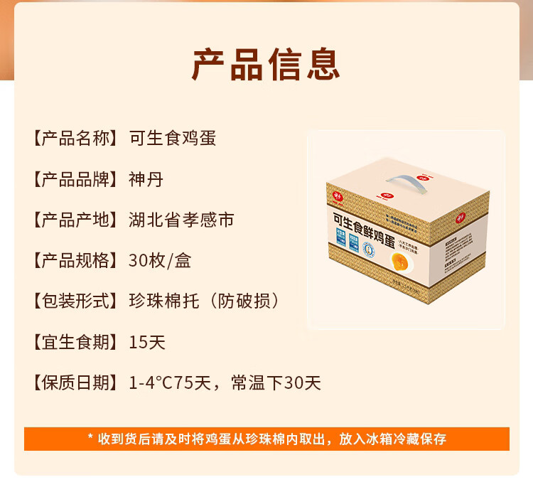 神丹可生食鲜鸡蛋礼盒 无抗鸡蛋谷物饲养 源头直发 30枚 3斤