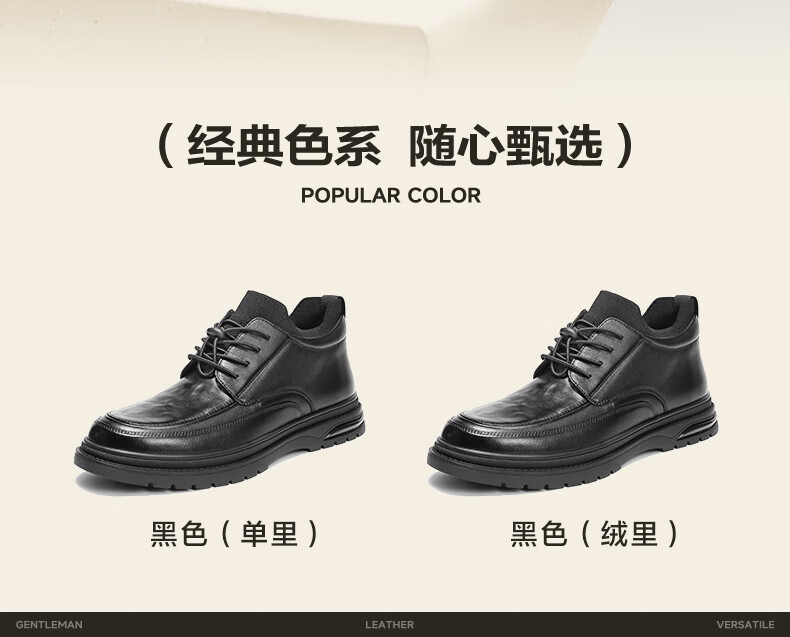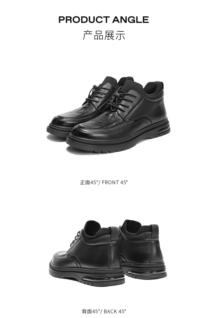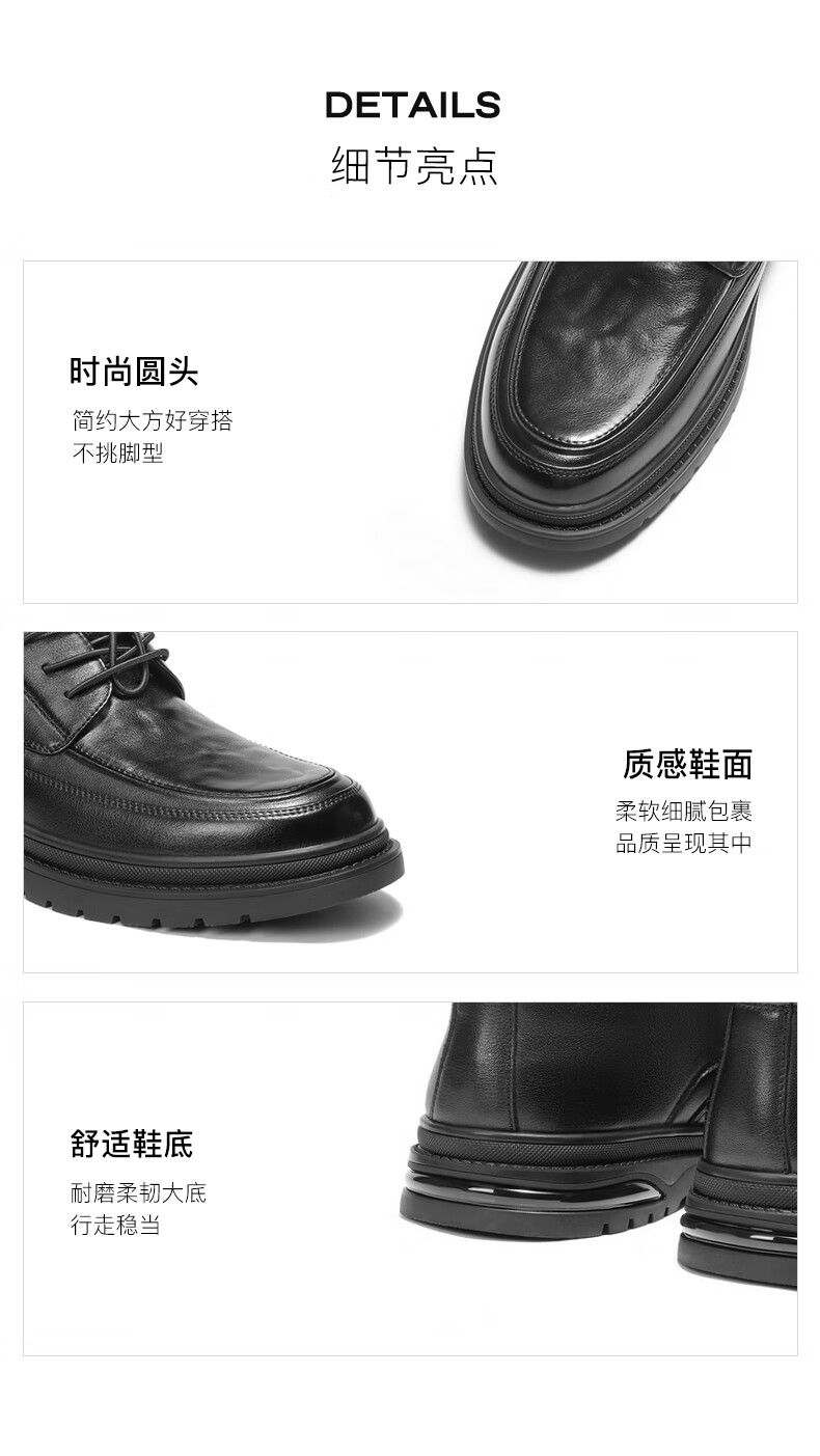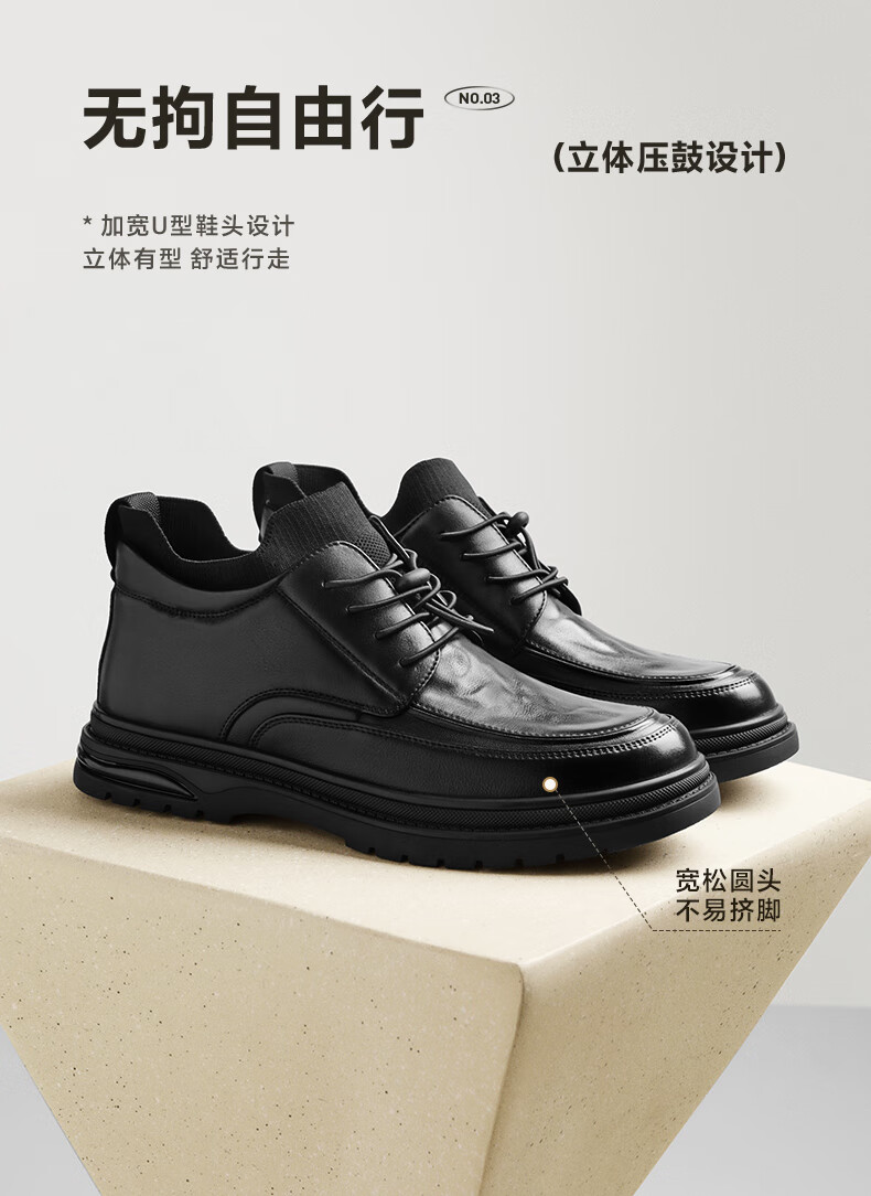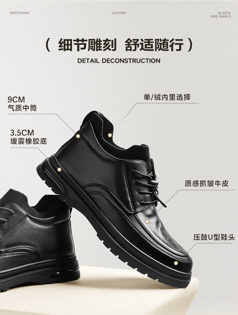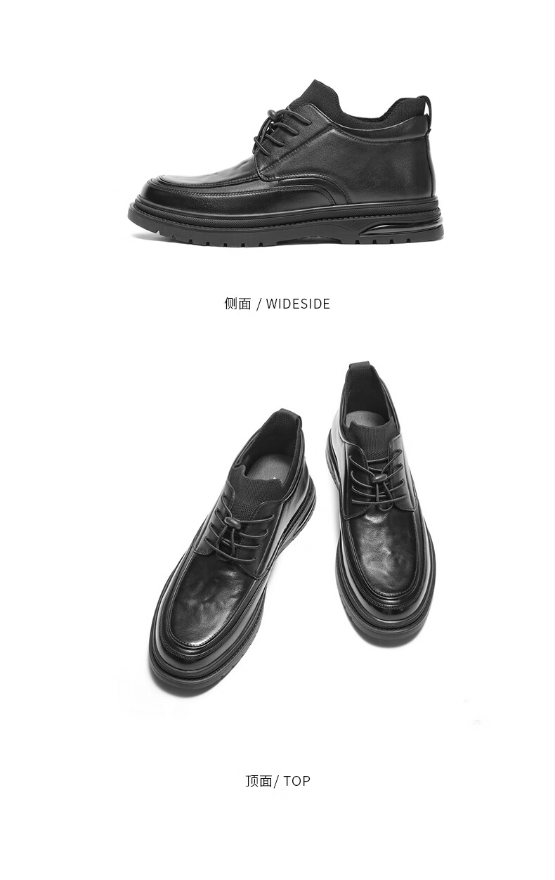 百丽高帮休闲皮鞋男2025冬牛皮厚底商务短靴加绒A2199DD5 黑绒里 40
