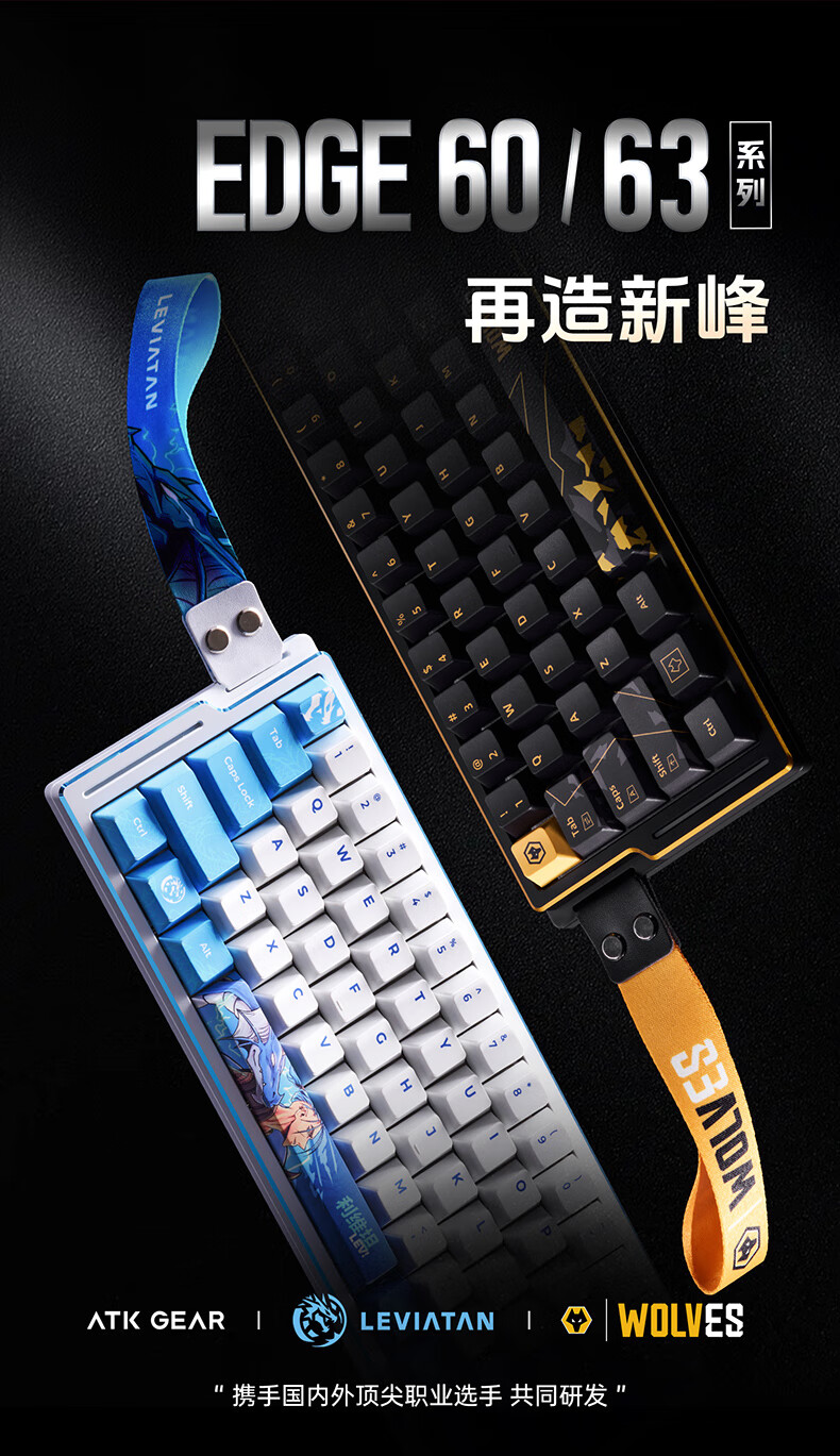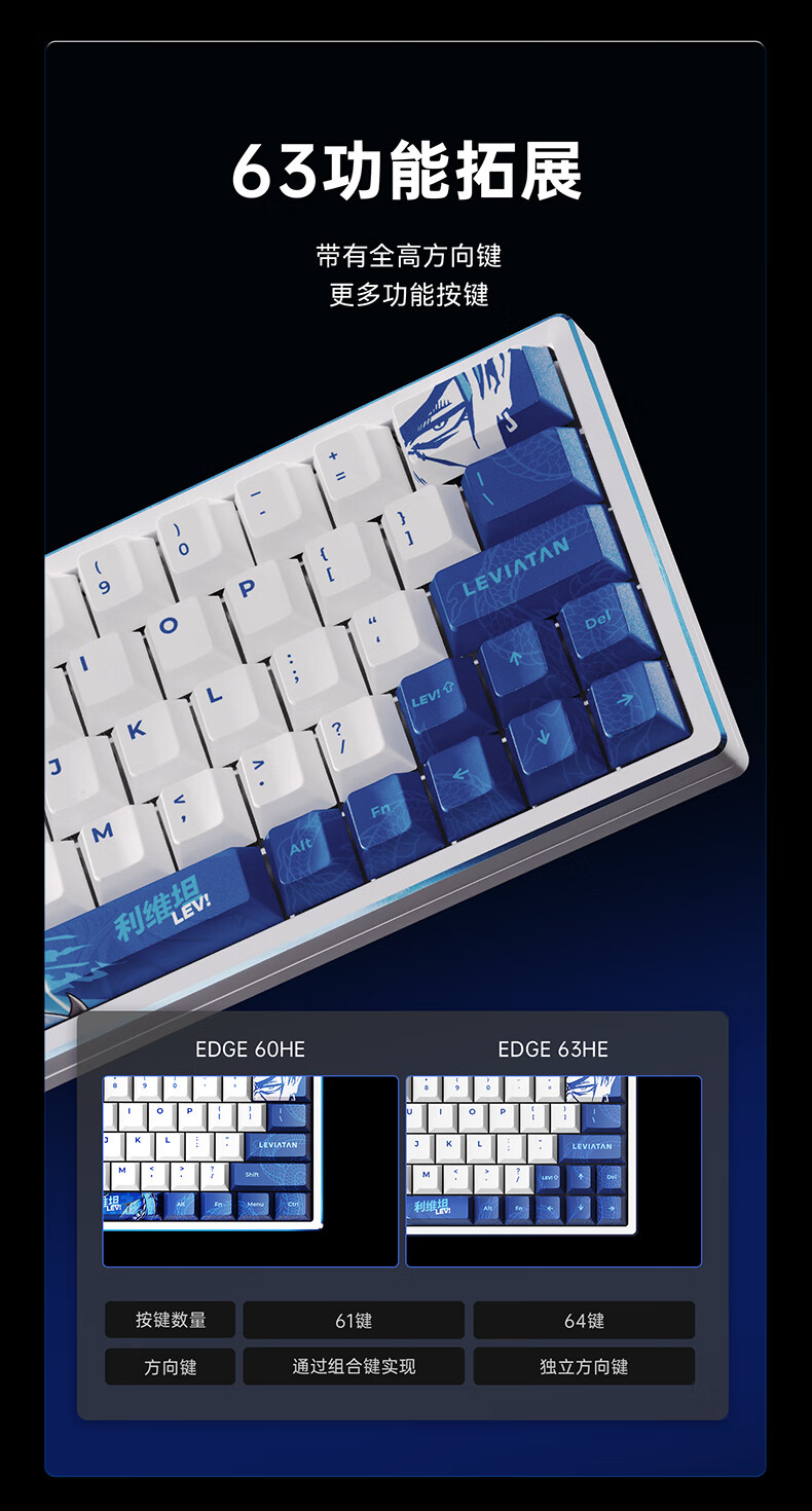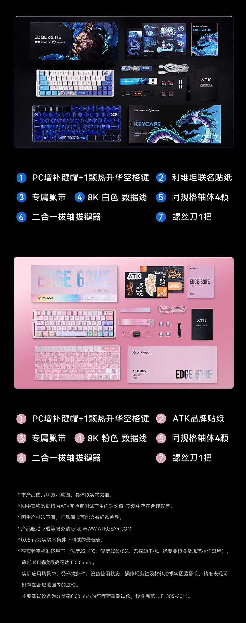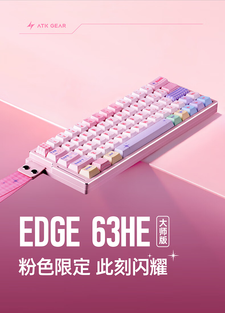 ATK LEV EDGE63 HE利维坦联名款电竞磁轴键盘无畏契约 64键游戏机械键盘大师版TTC白蛇万磁王轴粉色
