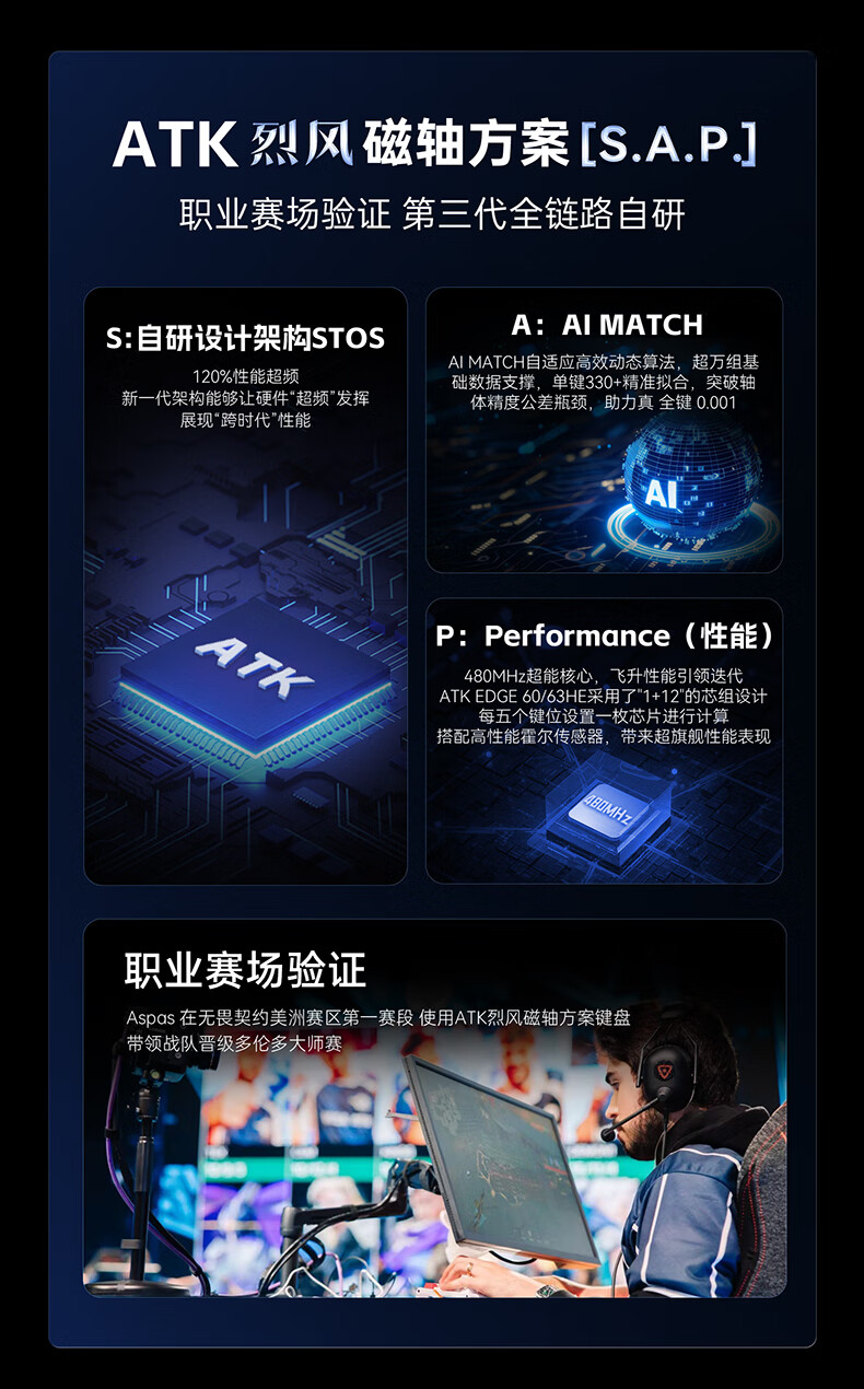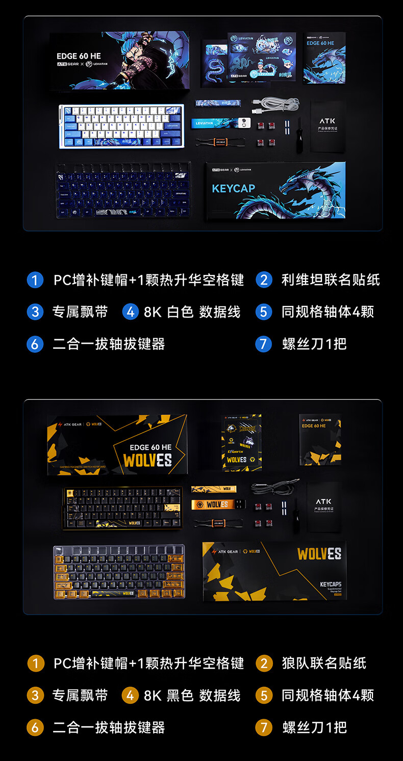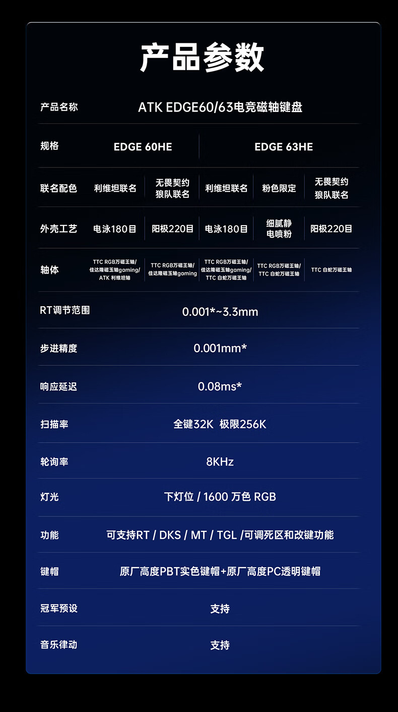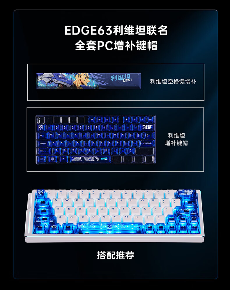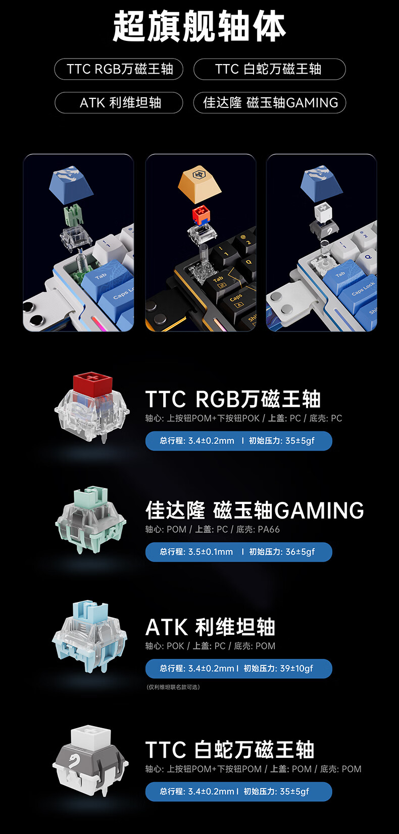 ATK LEV EDGE63 HE利维坦联名款电竞磁轴键盘无畏契约 64键游戏机械键盘大师版TTC白蛇万磁王轴粉色