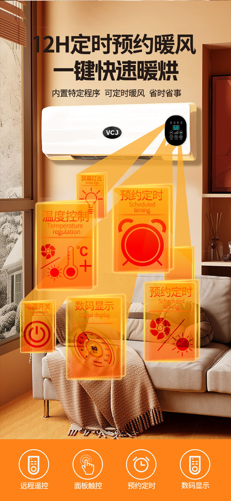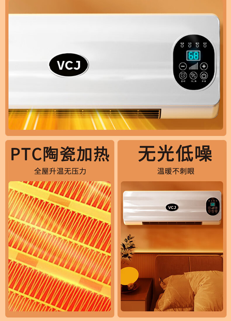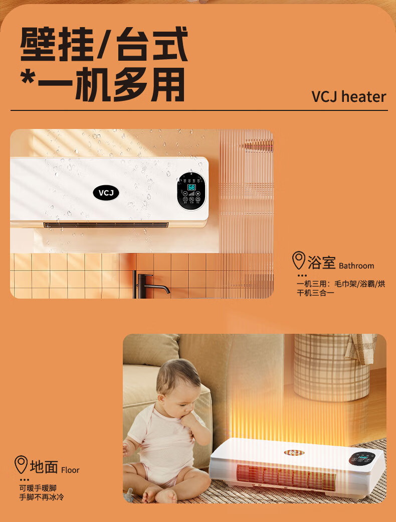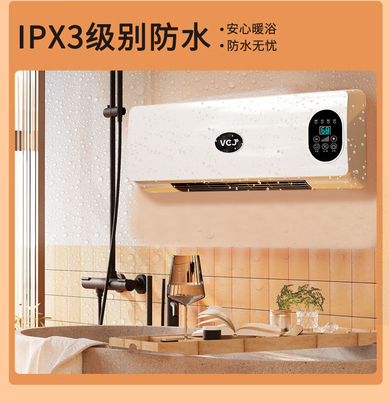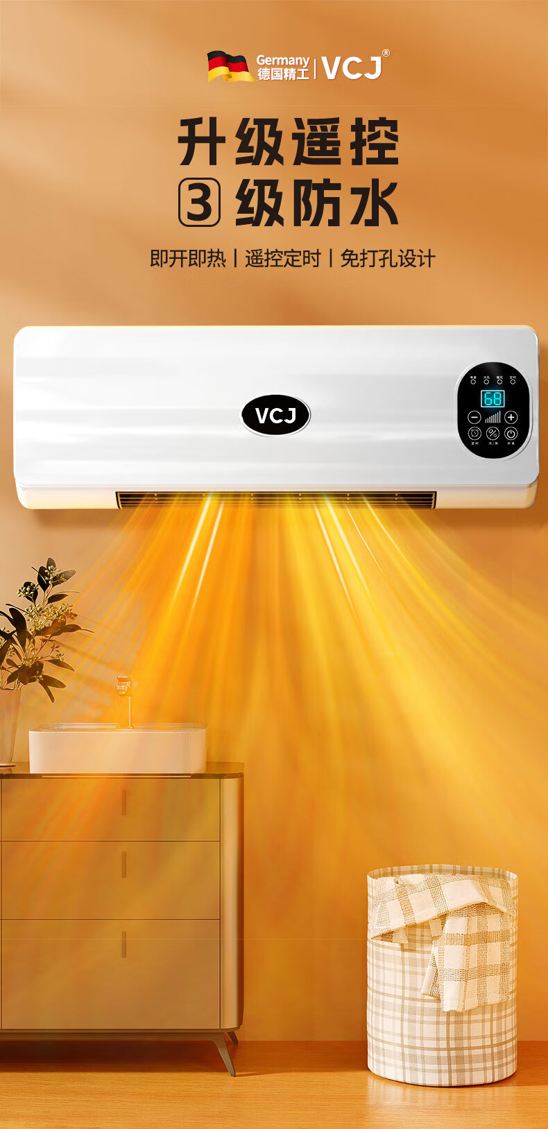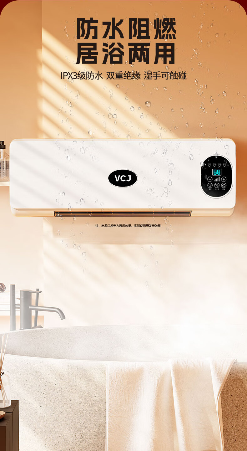 VCJ暖风机免打孔壁挂取暖器遥控家用IPX3级防水浴霸冷暖两用电暖器电暖气热风机低噪节能 【机械款】即开即热*过热保护*免打孔安装