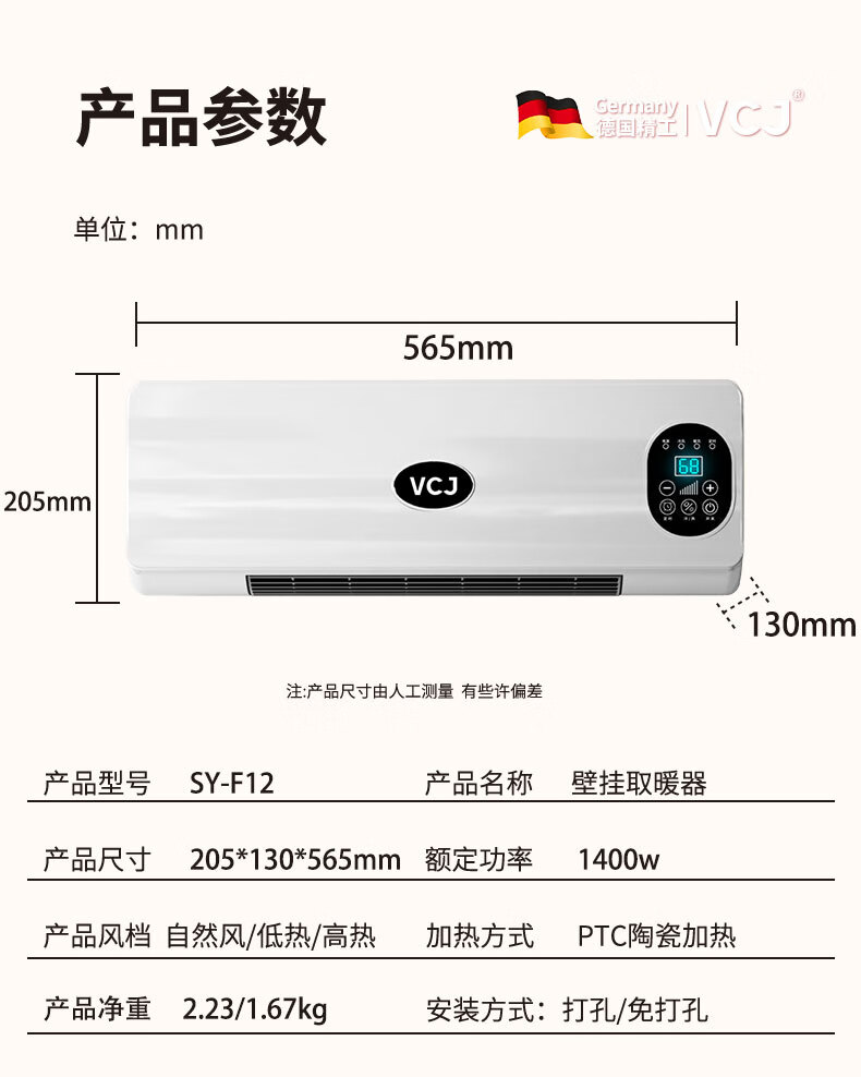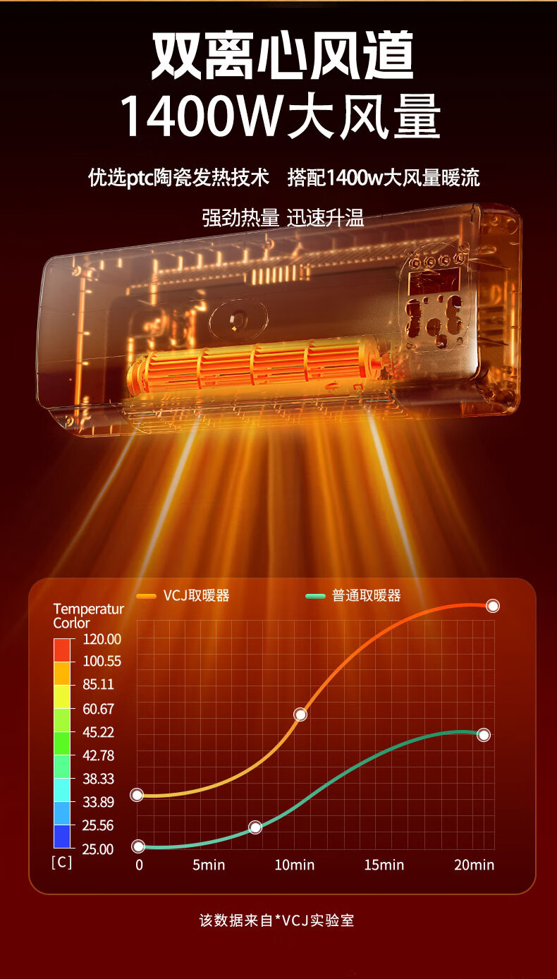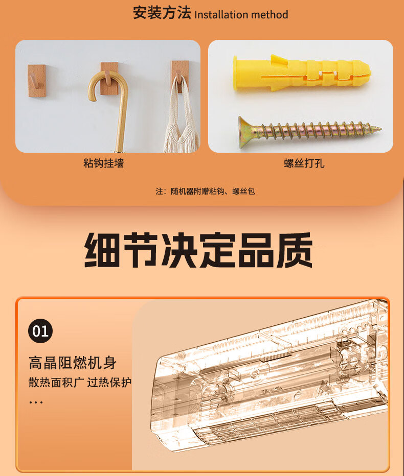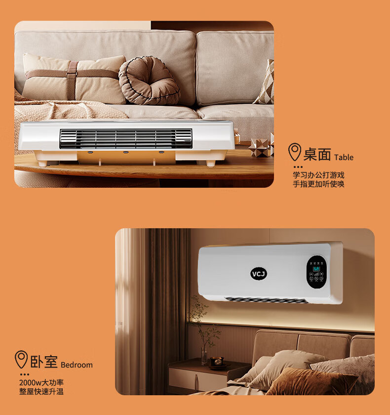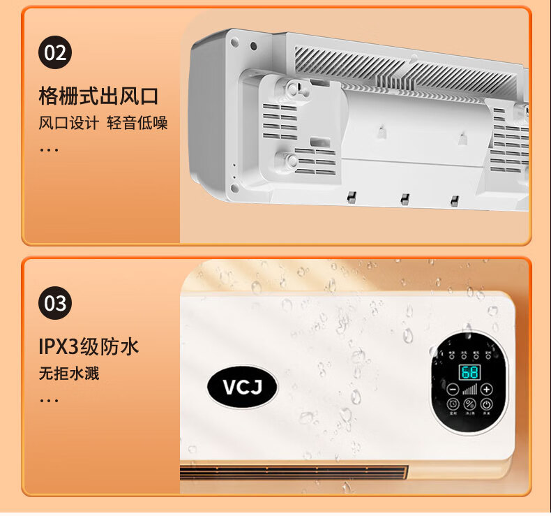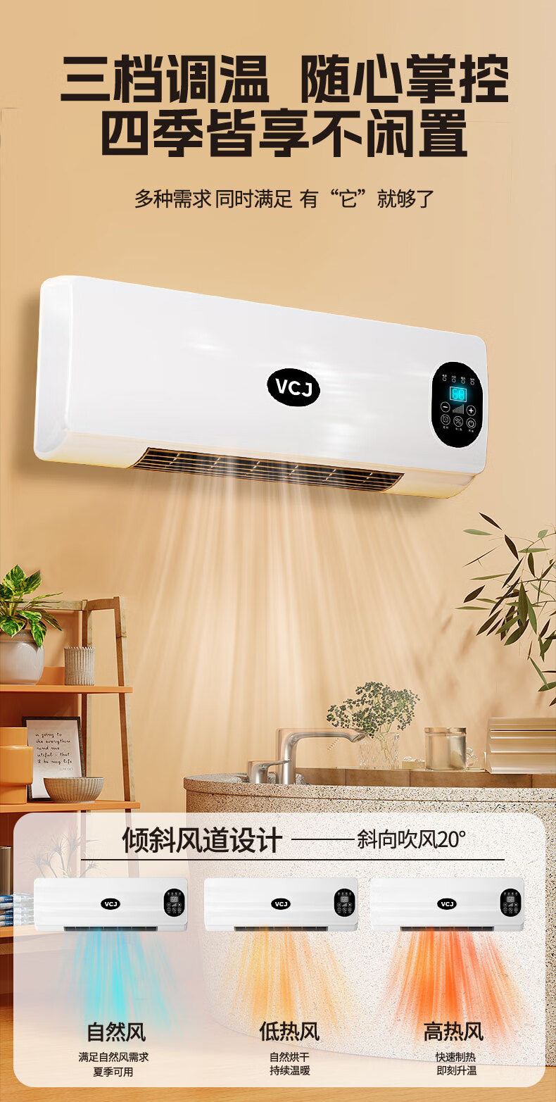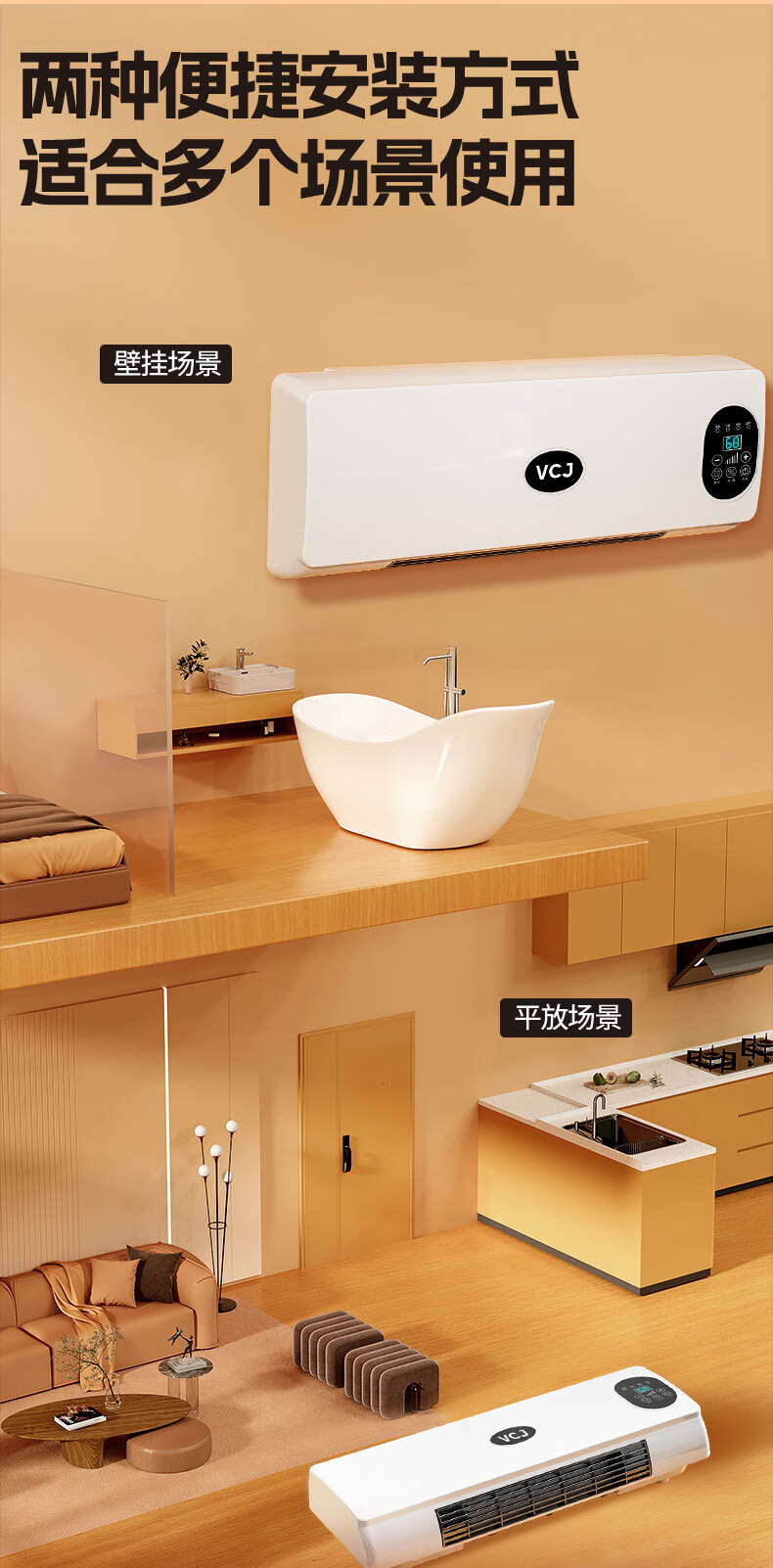 VCJ暖风机免打孔壁挂取暖器遥控家用IPX3级防水浴霸冷暖两用电暖器电暖气热风机低噪节能 【机械款】即开即热*过热保护*免打孔安装