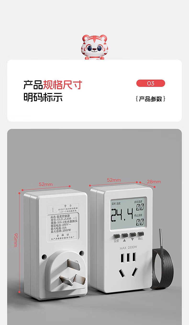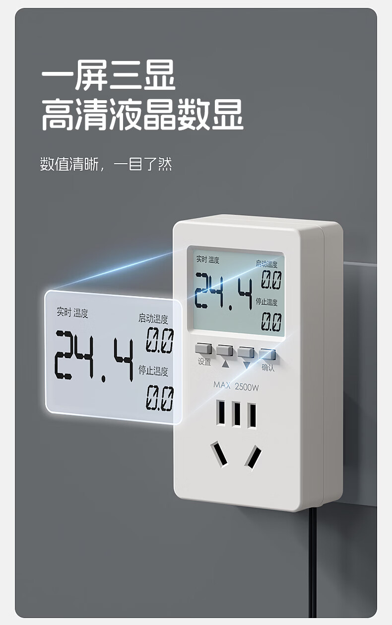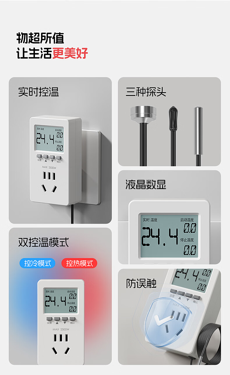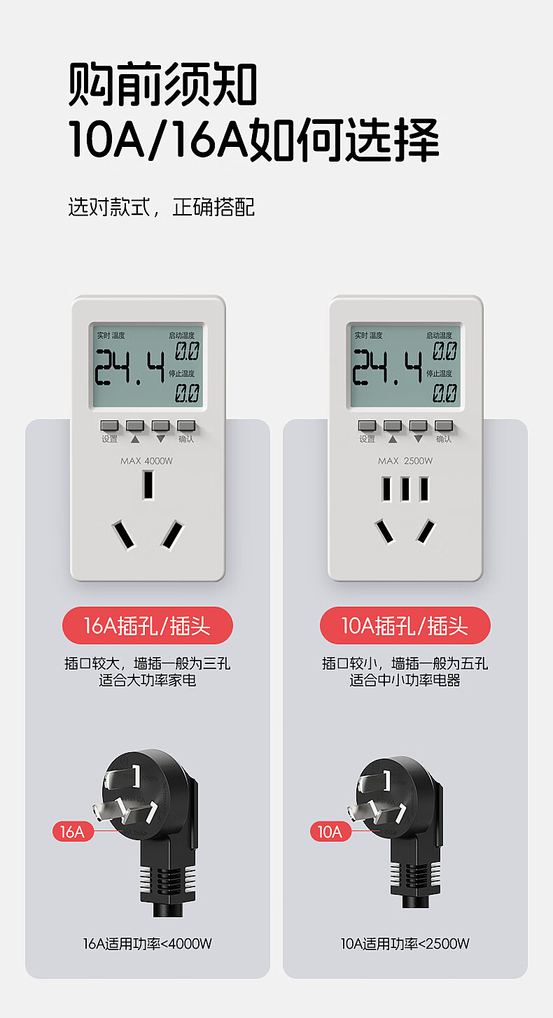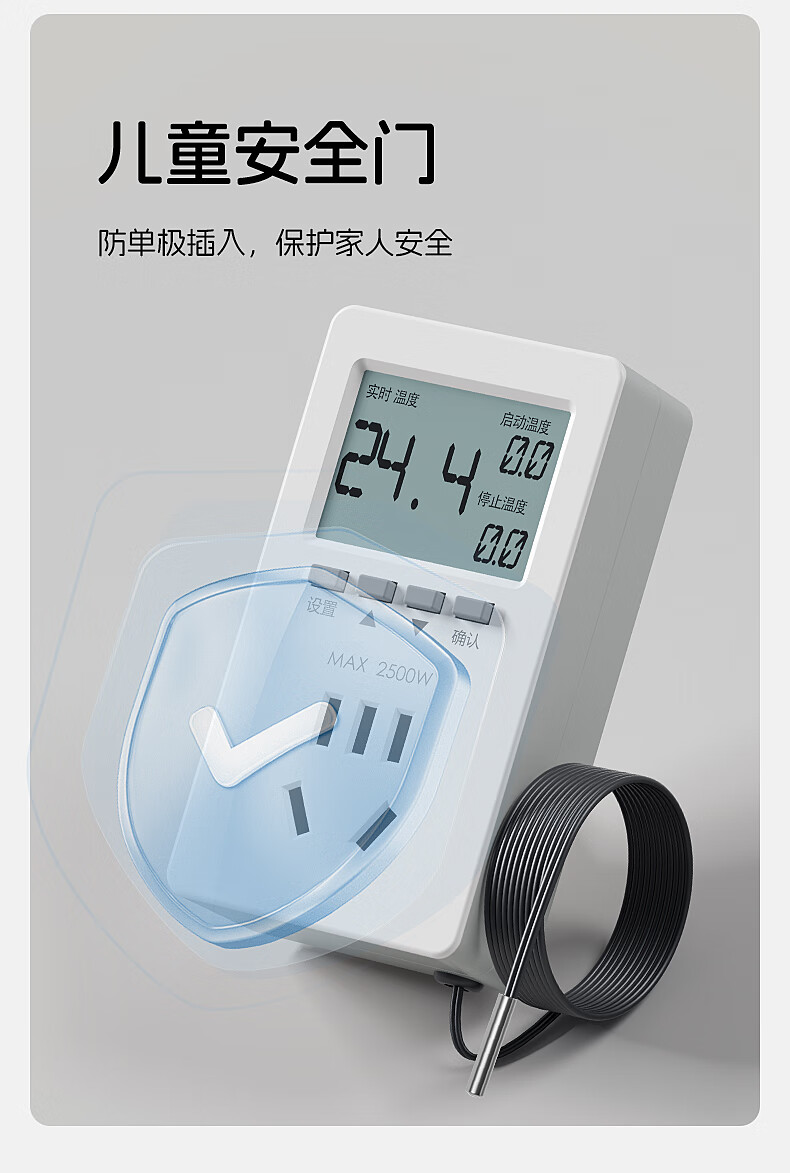 国际电工智能温控器插座自动控温数显电子控温仪开关可调温度定时控制器 温度定时器【10A五孔/气温探头】